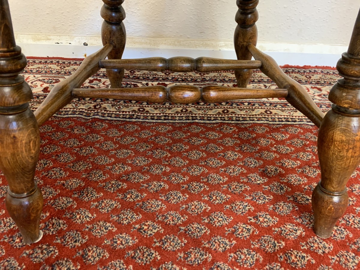 The chair dates circa 1880. The shaped top rail is supported on turned up rights with a generous sized seat. Standing on four substantial turned legs which are united by double stretcher supports. Please note that we are also lsting three other smokers bow chairs.(as pictured)