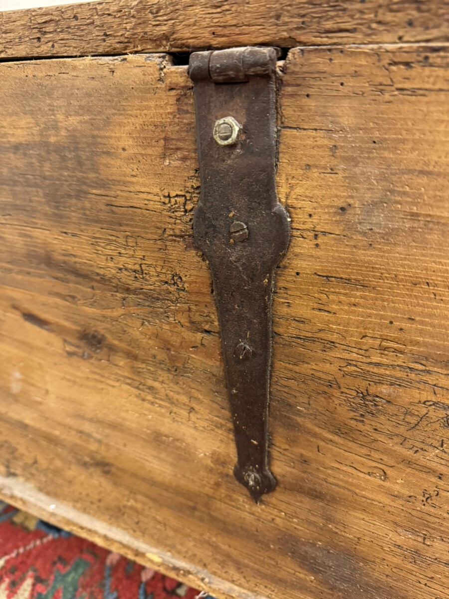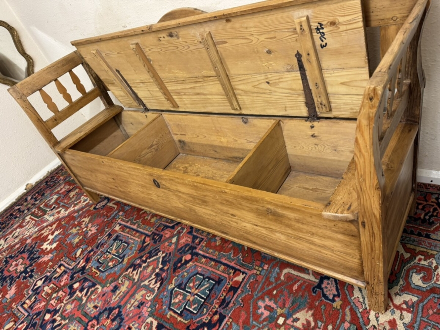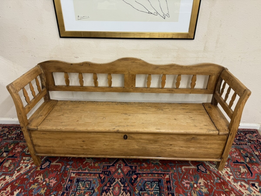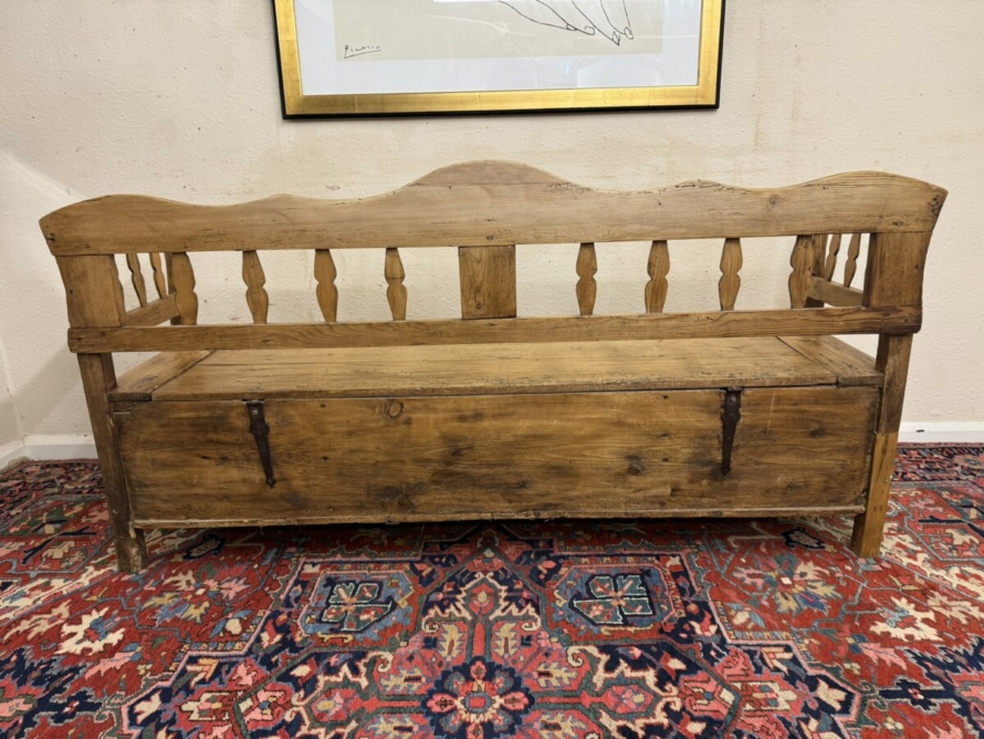 Signs of wear and tear throughout add to the charm of the settle, it is very sturdy.