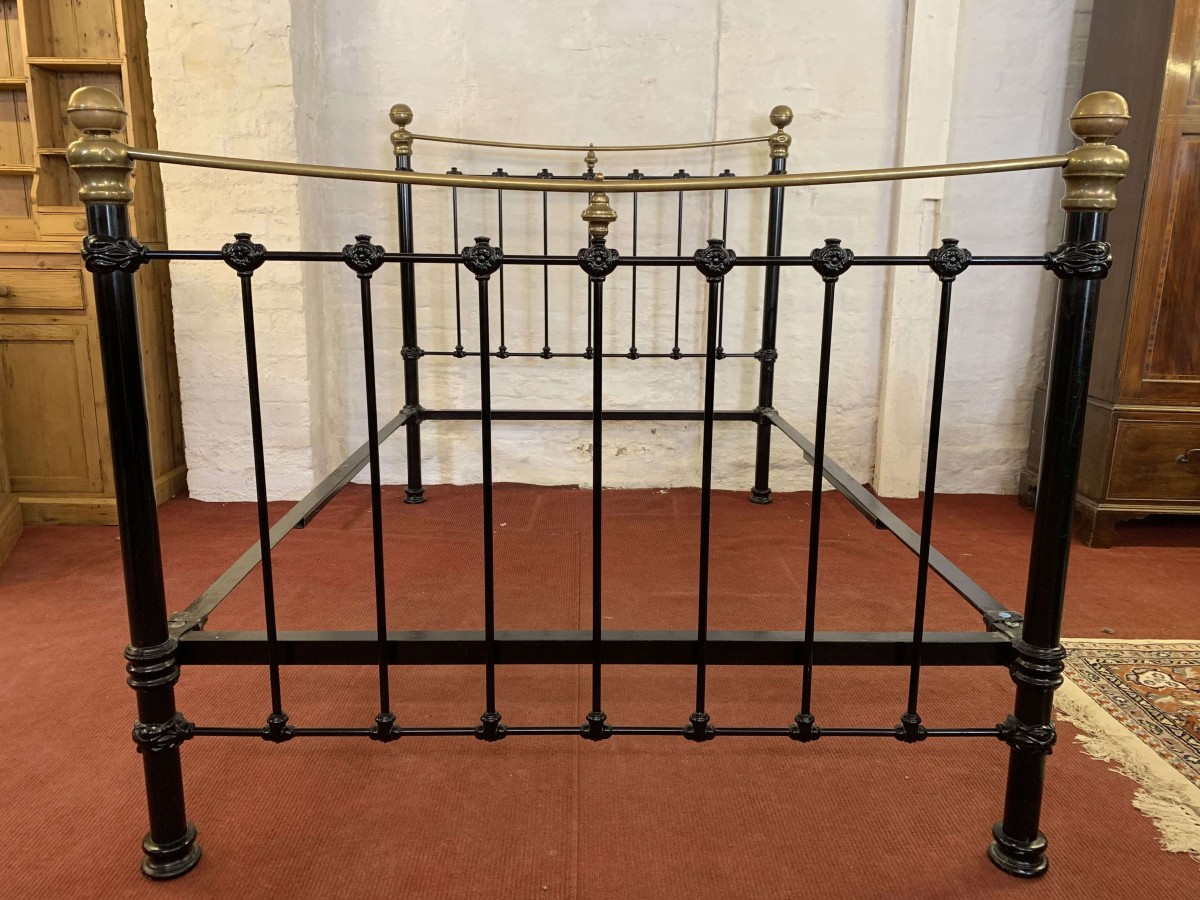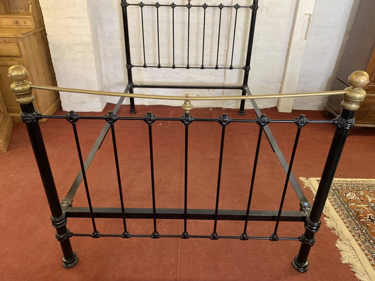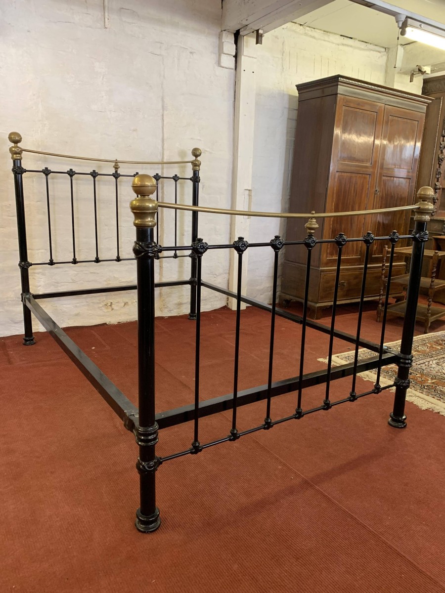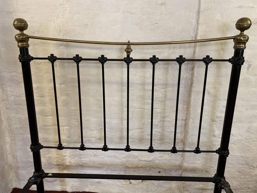The head and foot board are connected by a pair of bed irons