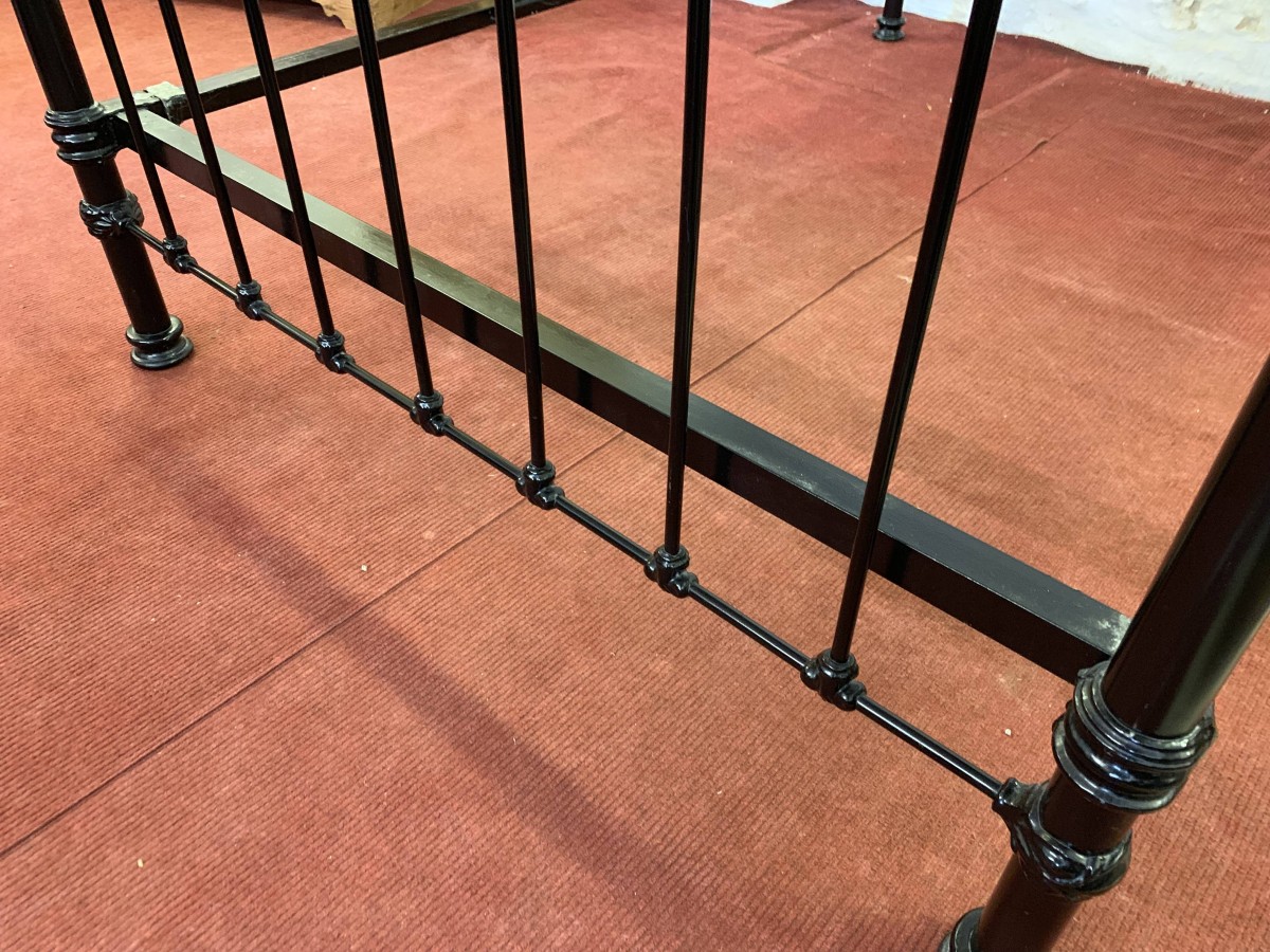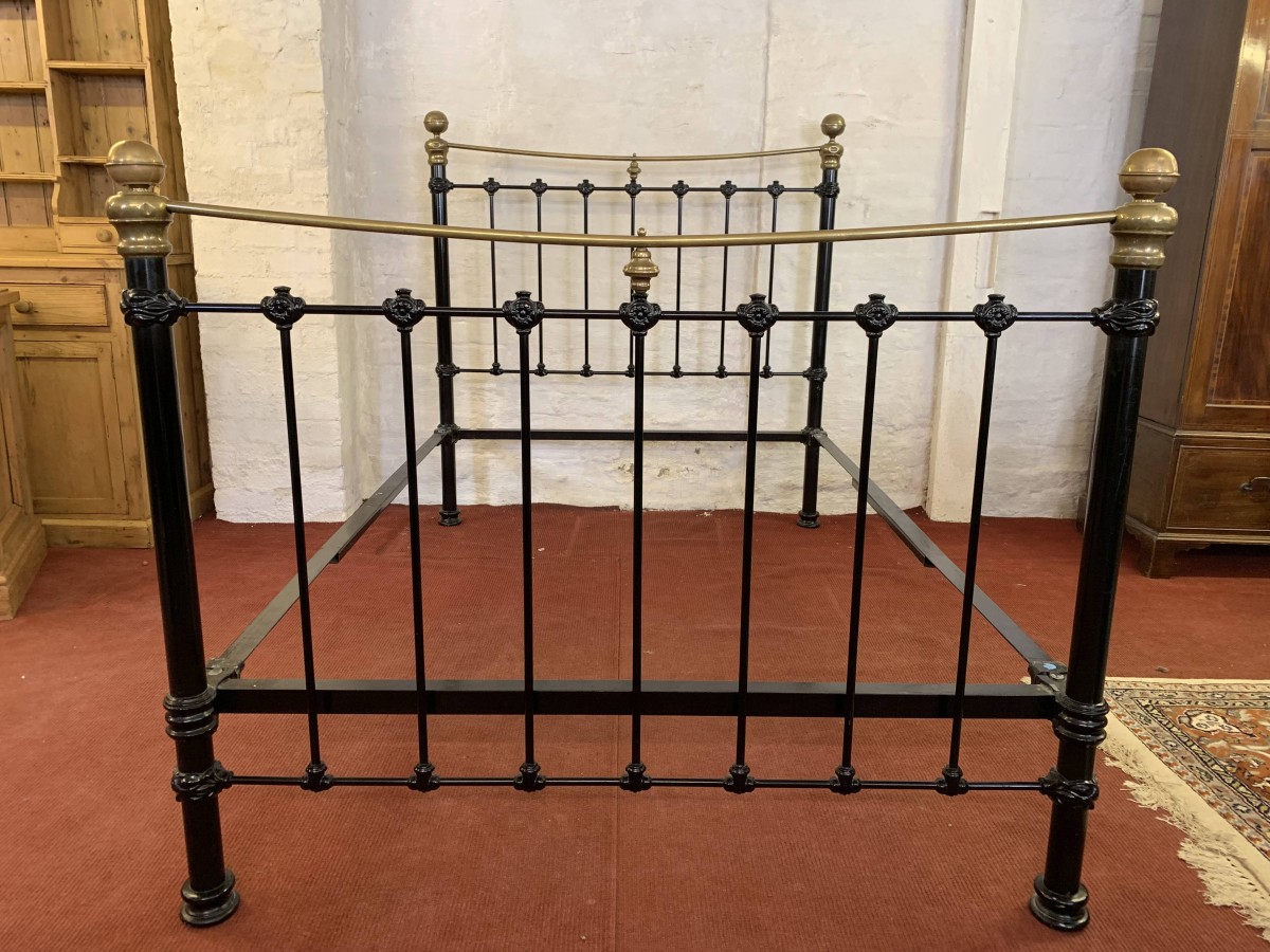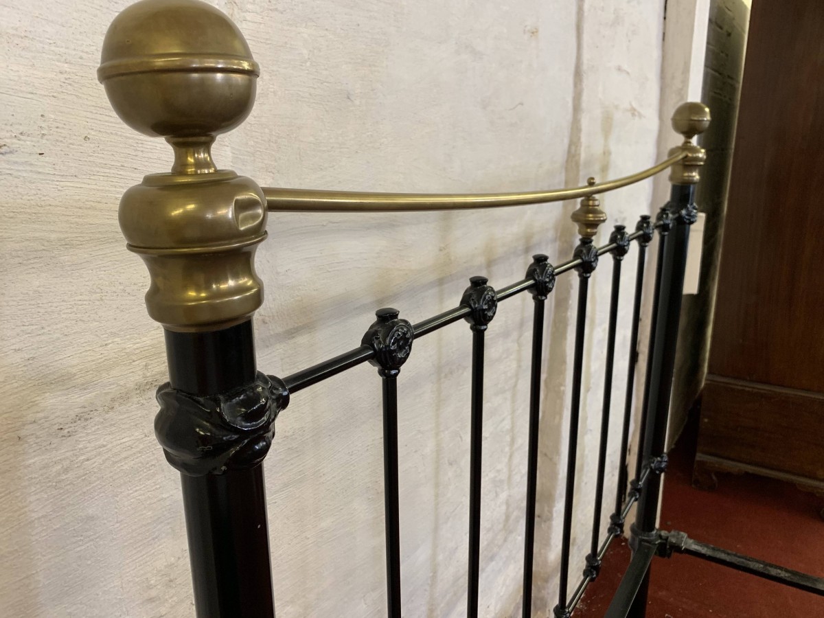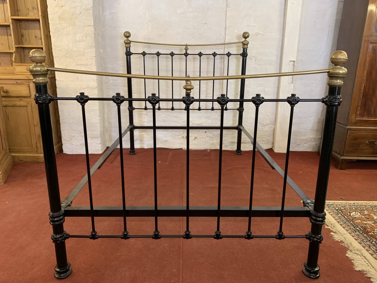 The head and foot board are connected by a pair of bed irons