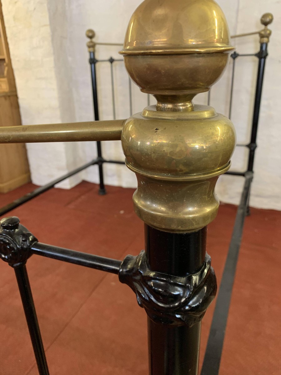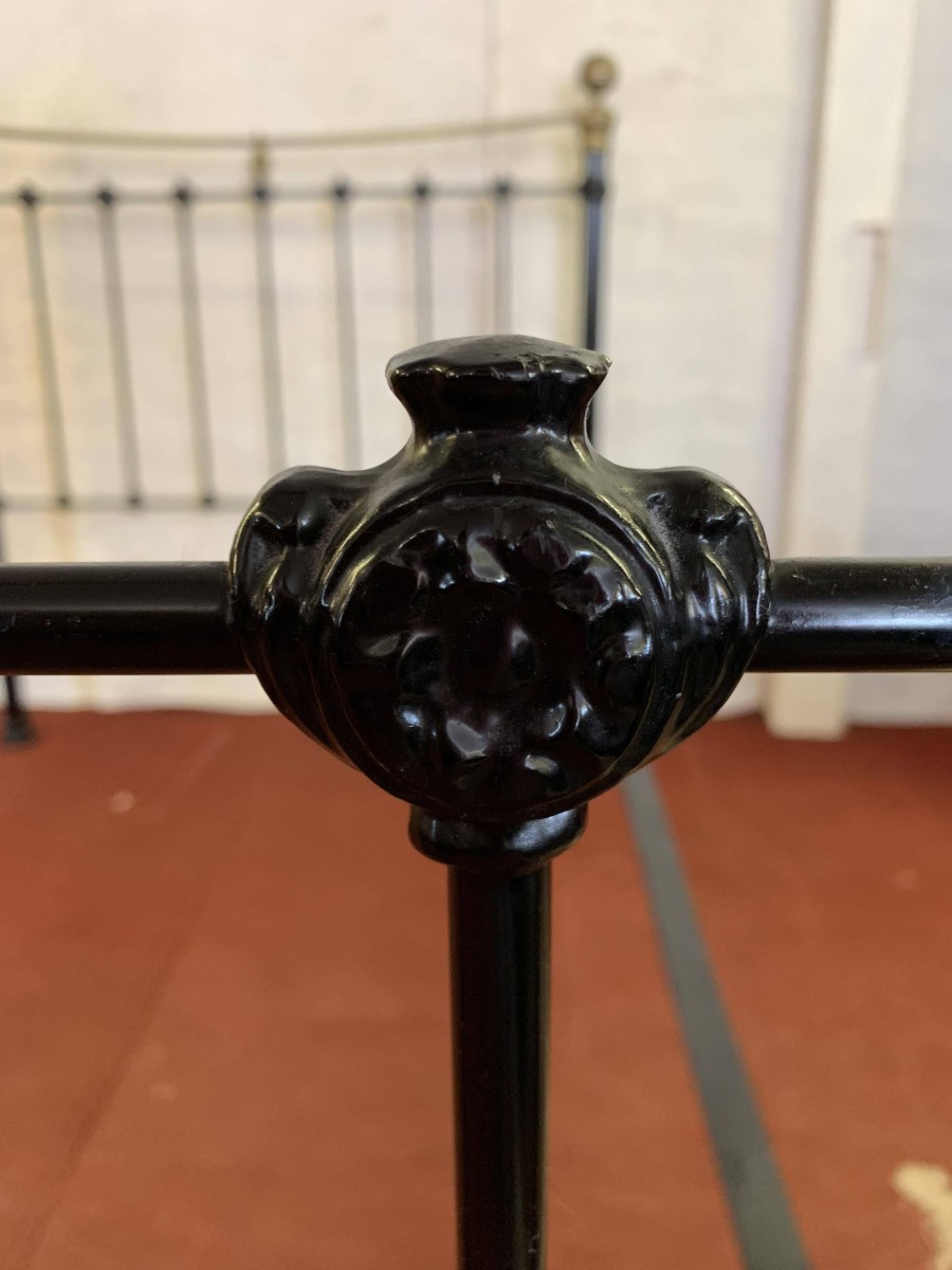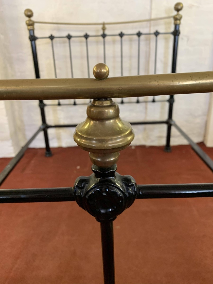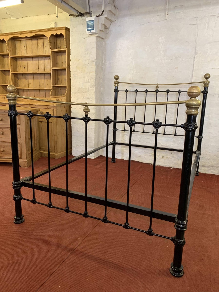 The head and foot board are connected by a pair of bed irons