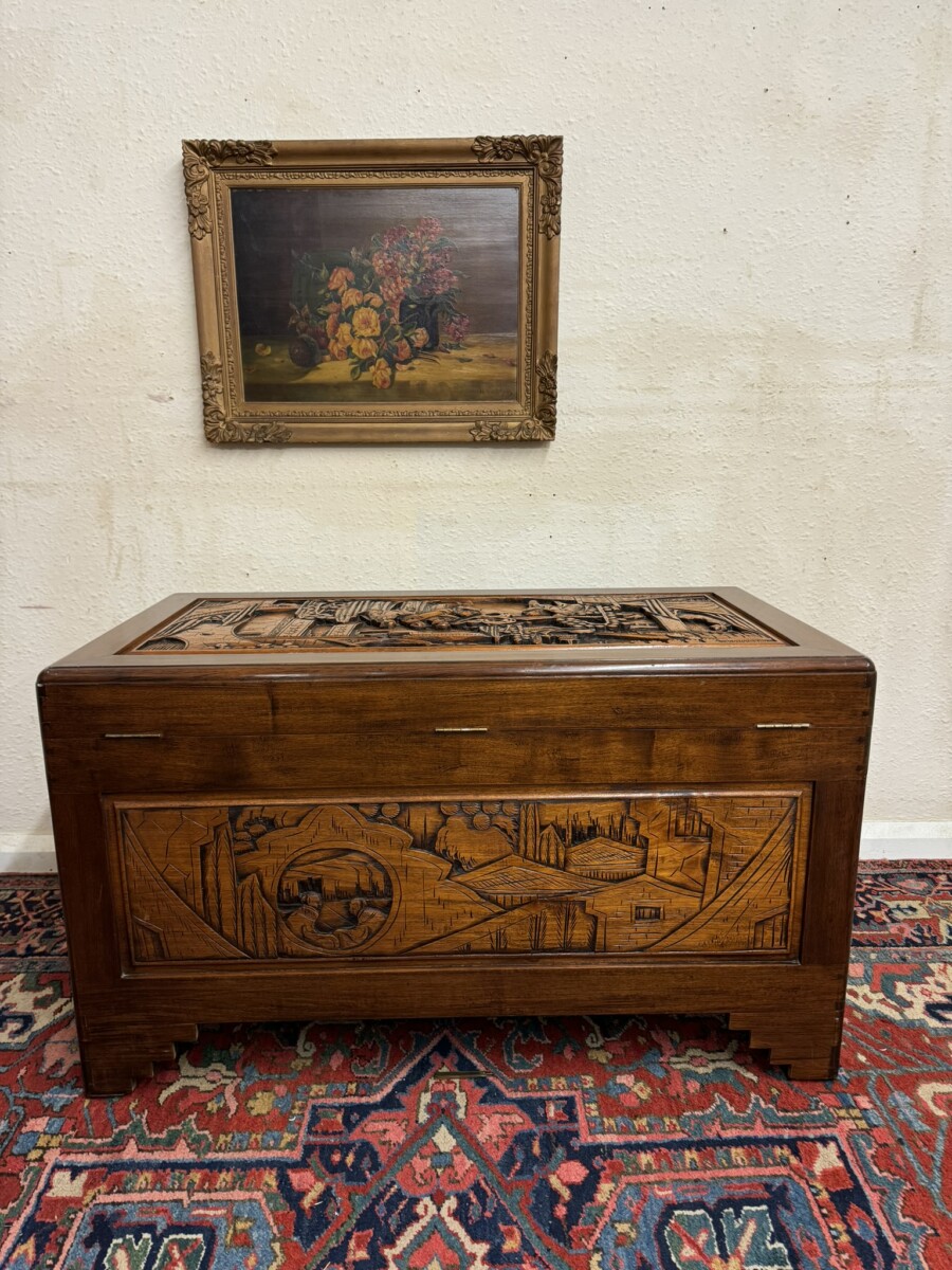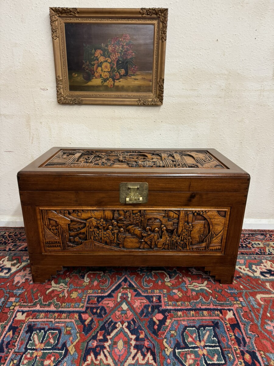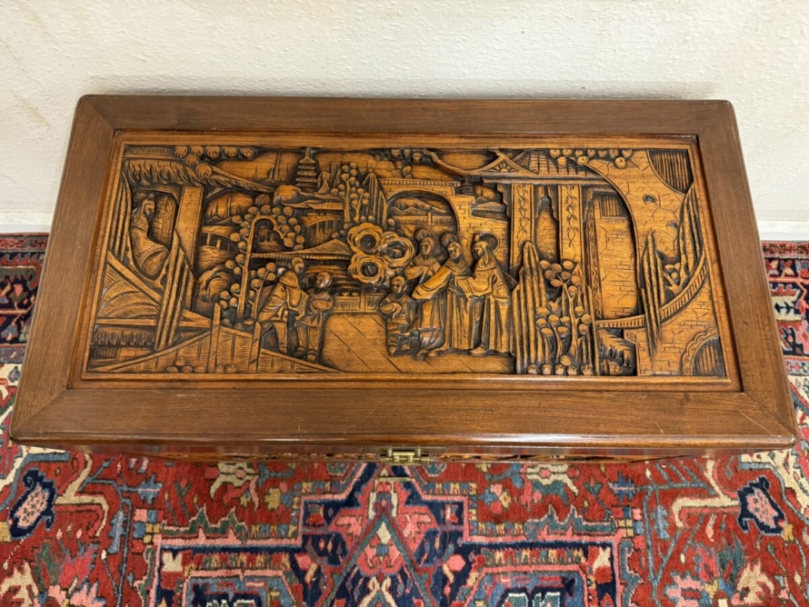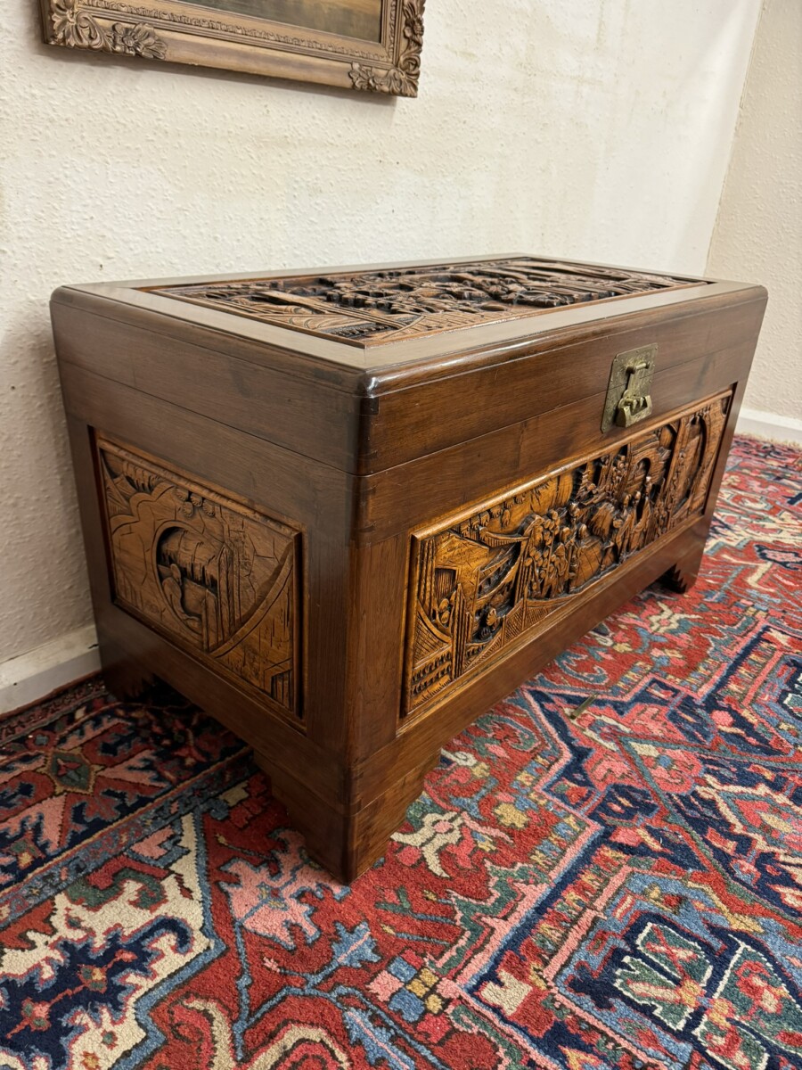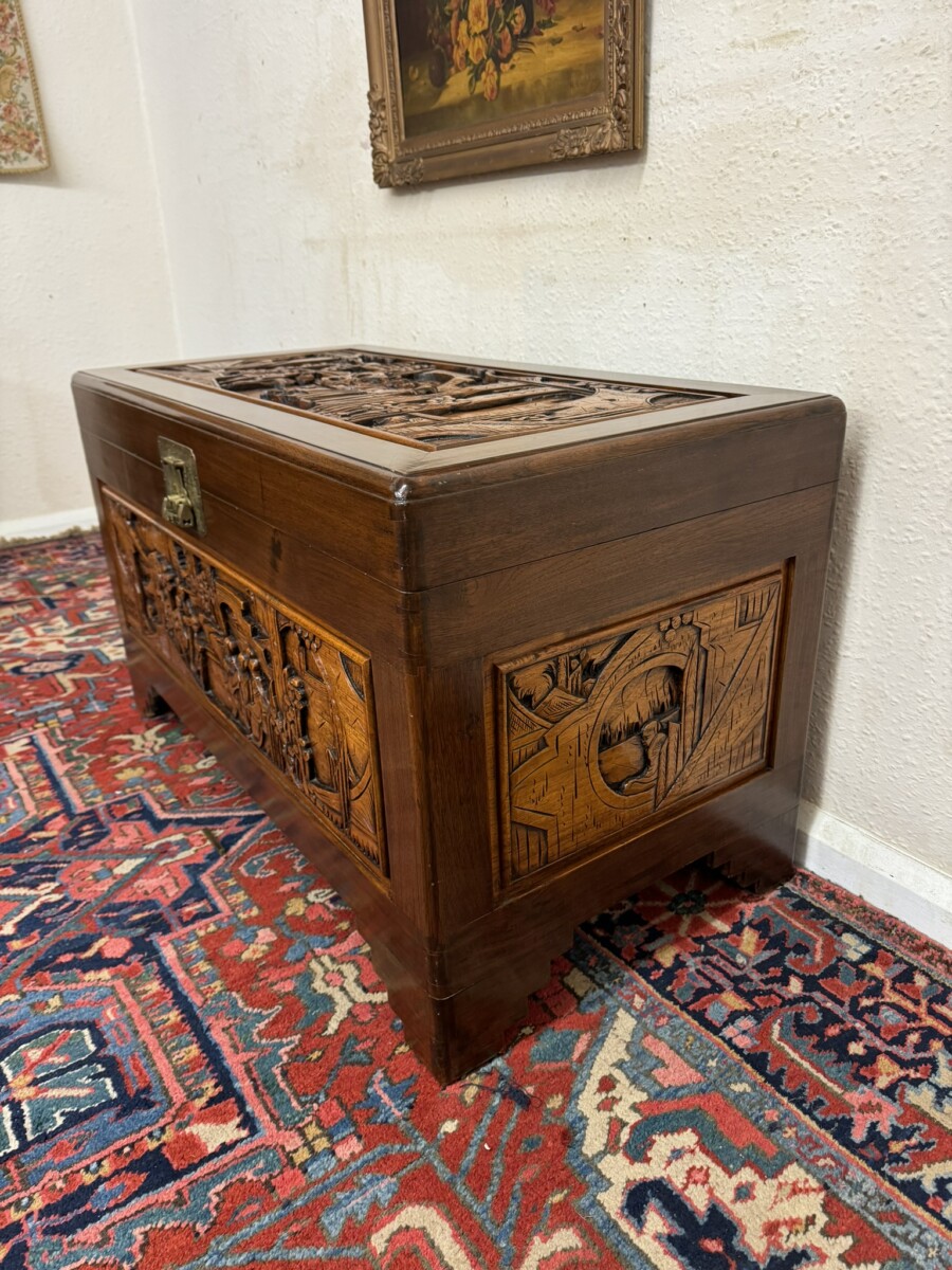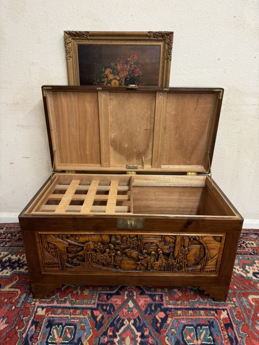 - FANTASTIC CARVED MAHOGANY CAMPHOR WOOD STORAGE TRUNK/CHEST