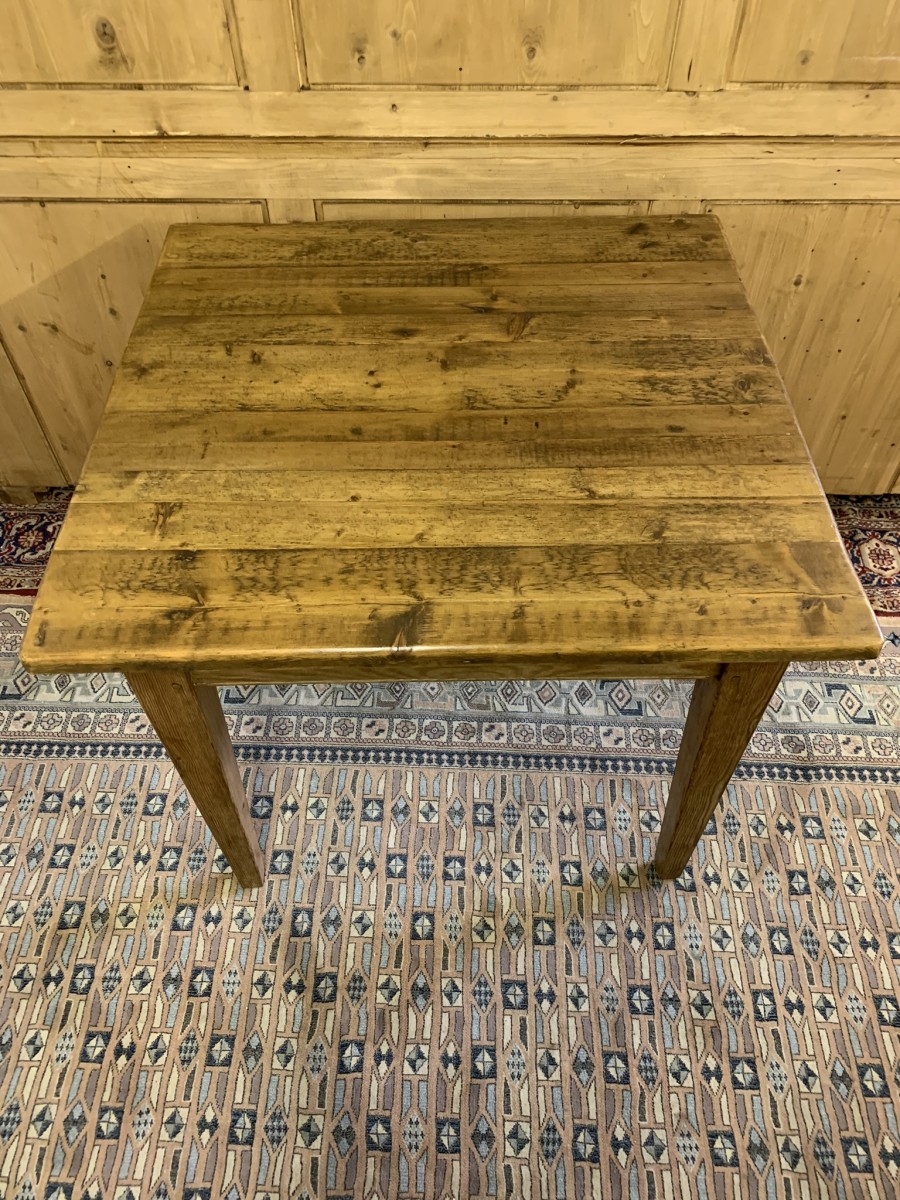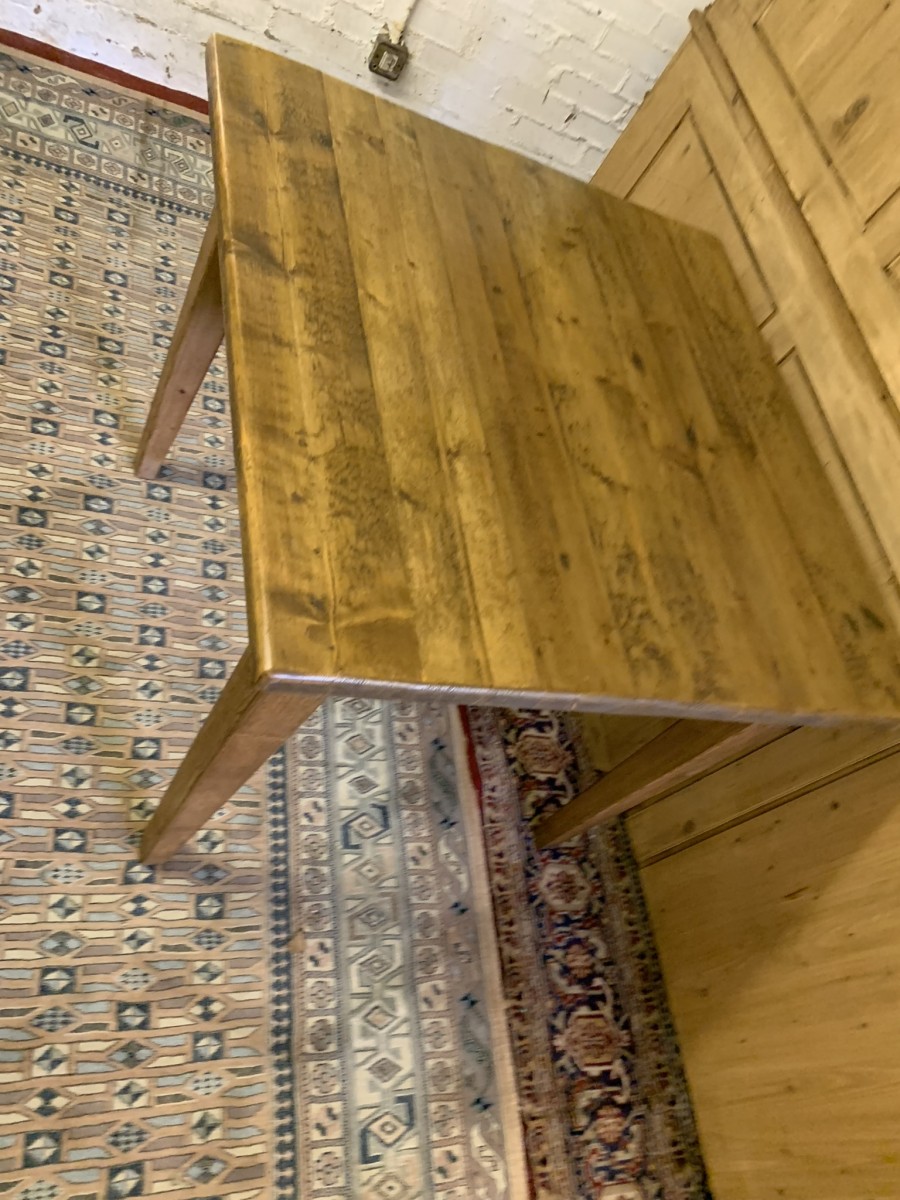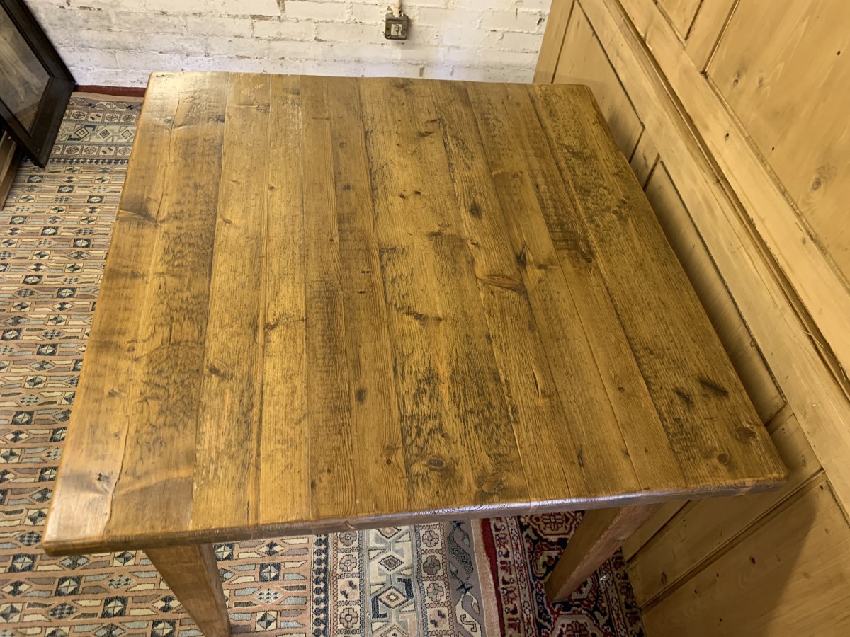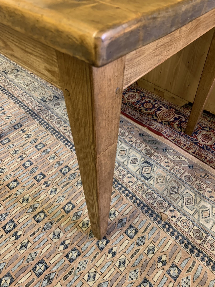 This fabulous table has a planked top and sits on four peg jointed tapered legs.