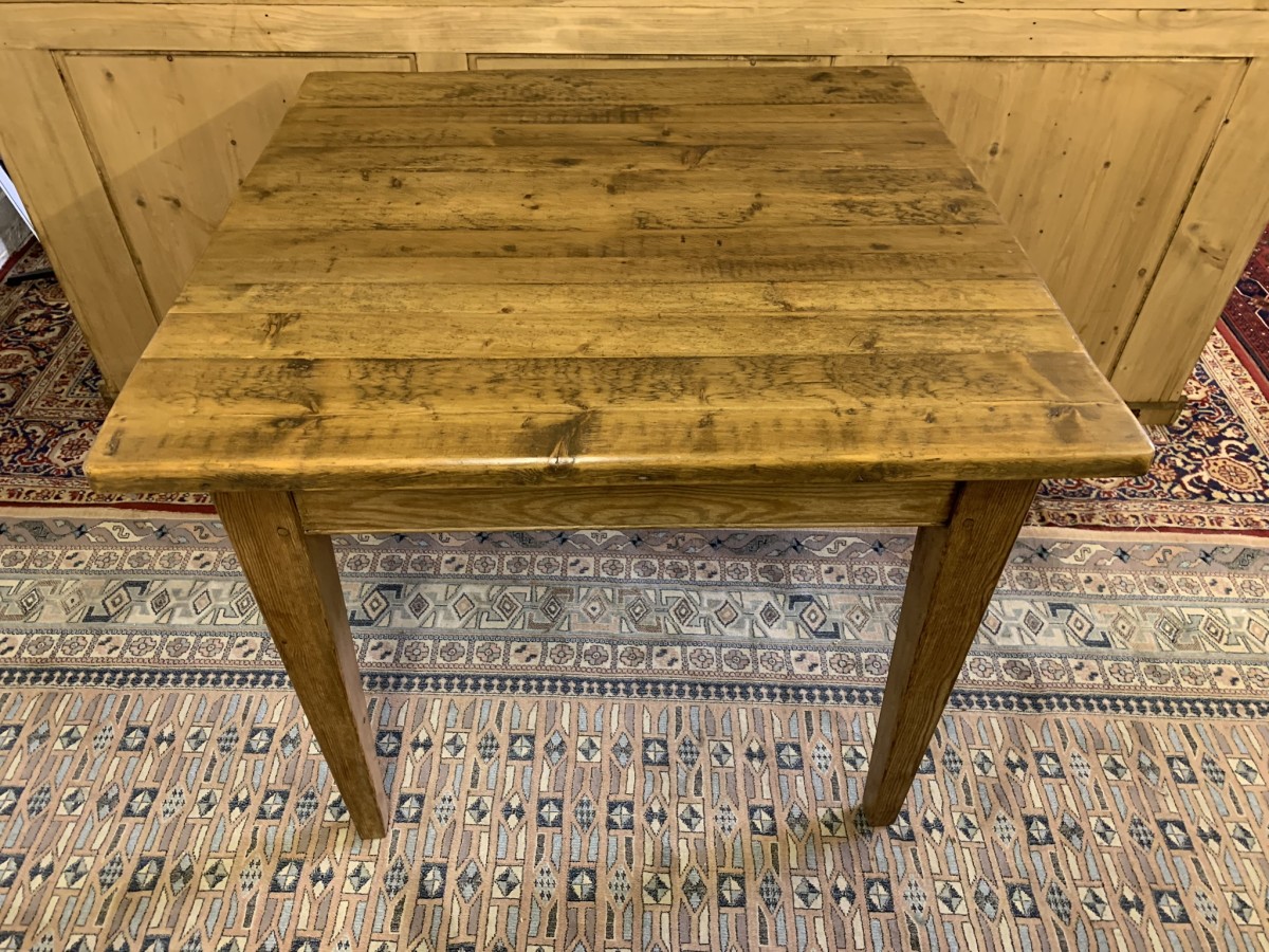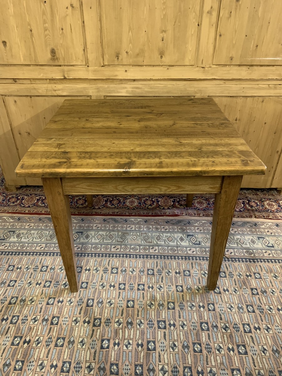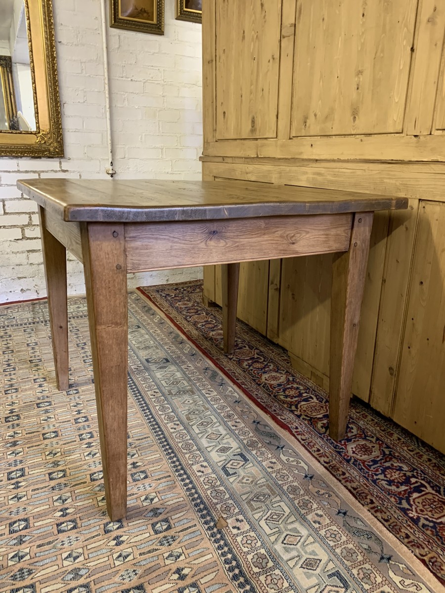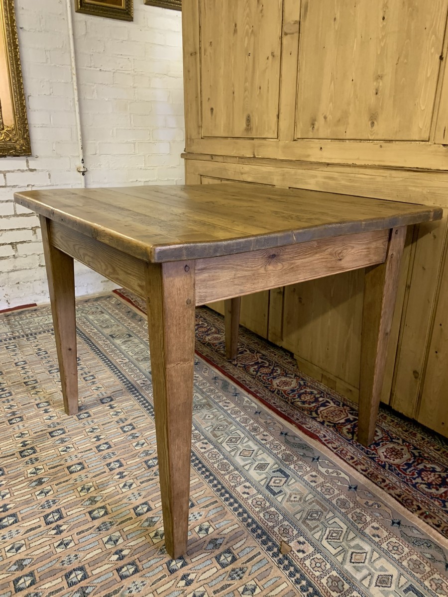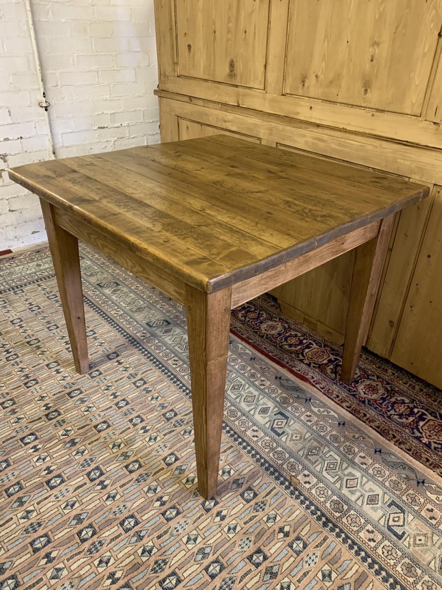 This fabulous table has a planked top and sits on four peg jointed tapered legs.