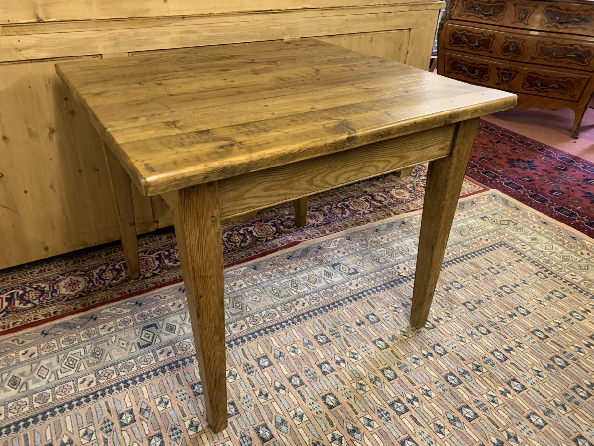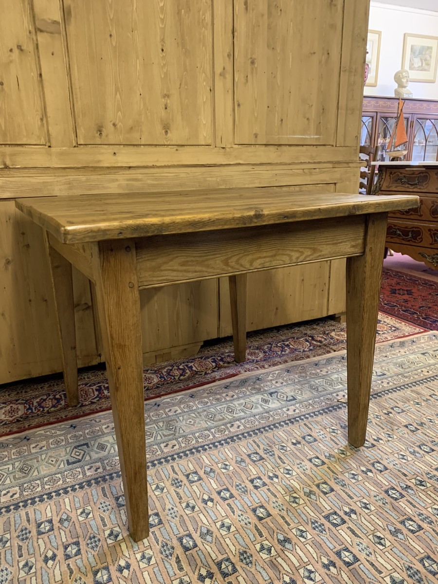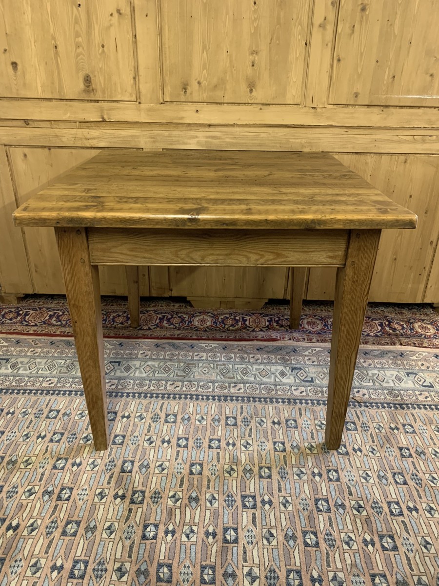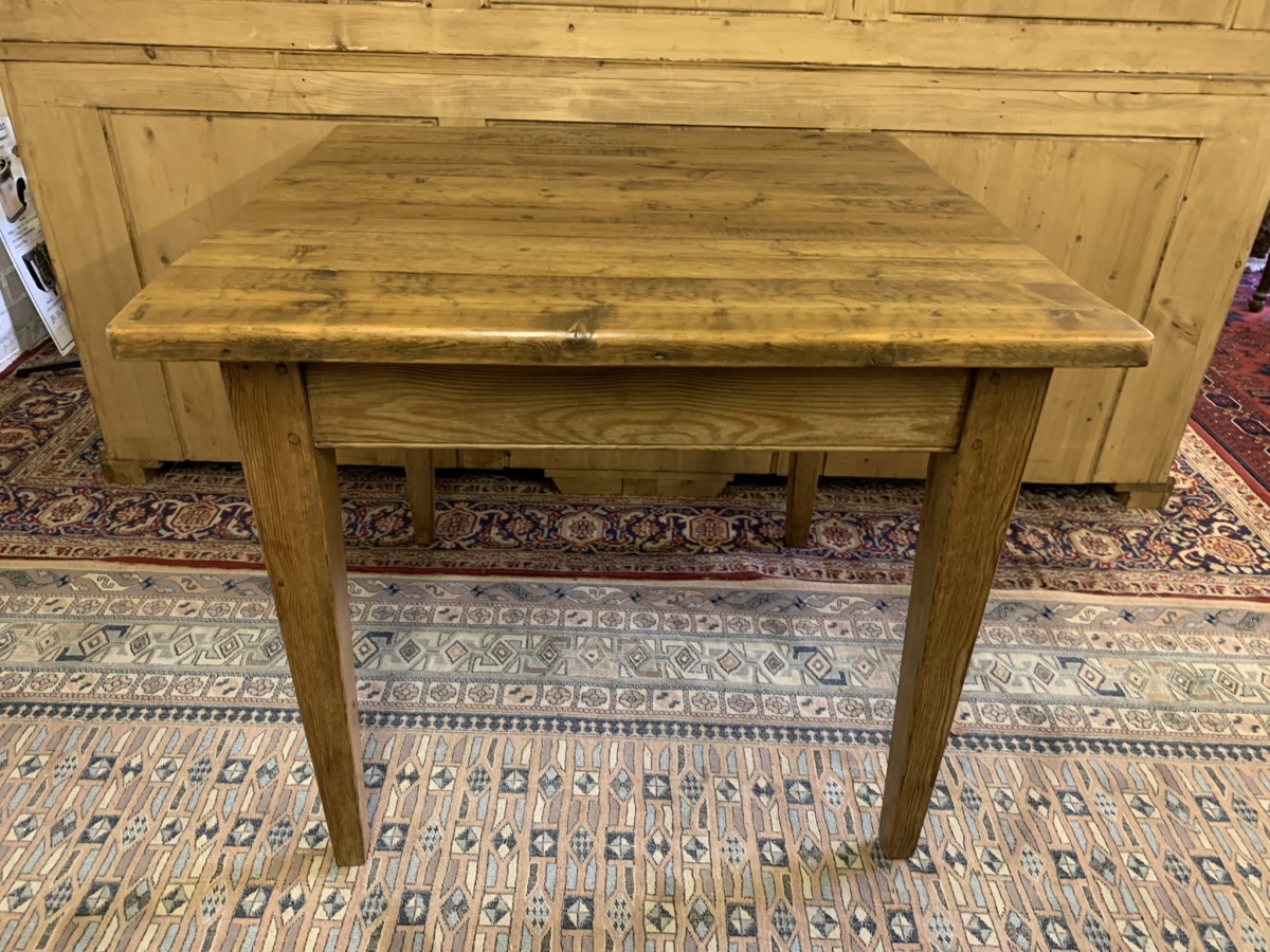 This fabulous table has a planked top and sits on four peg jointed tapered legs.