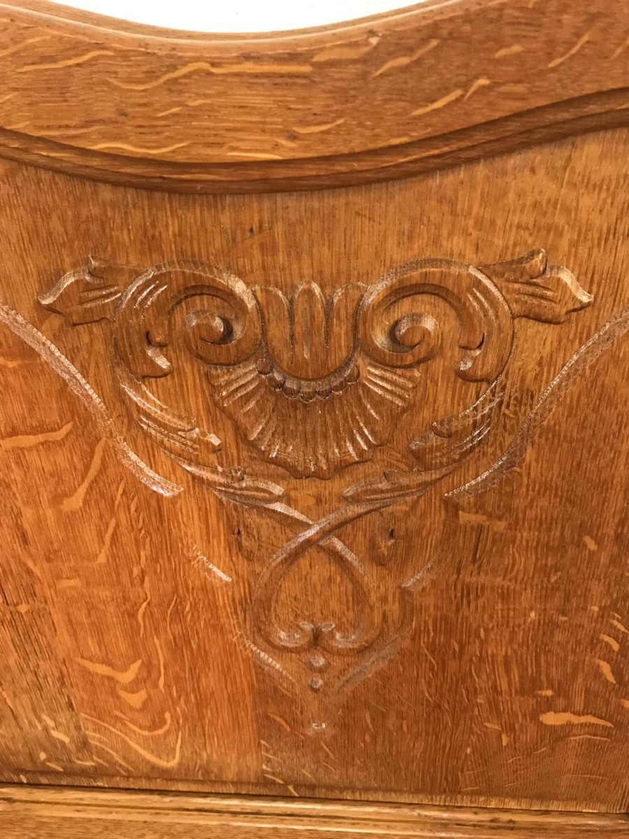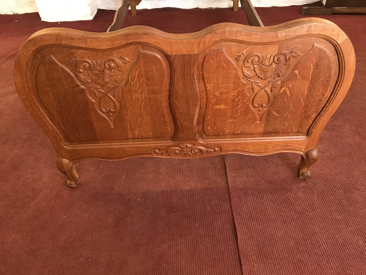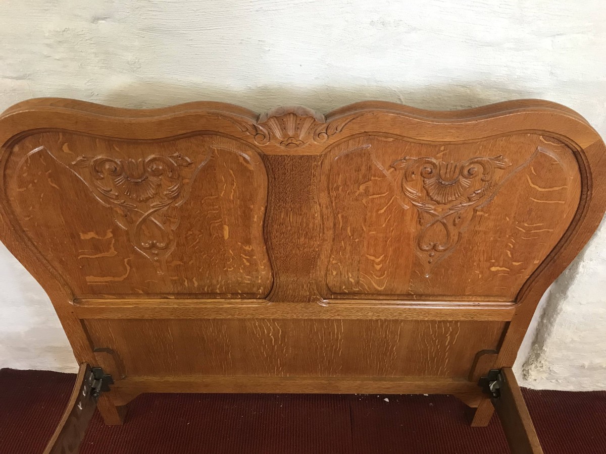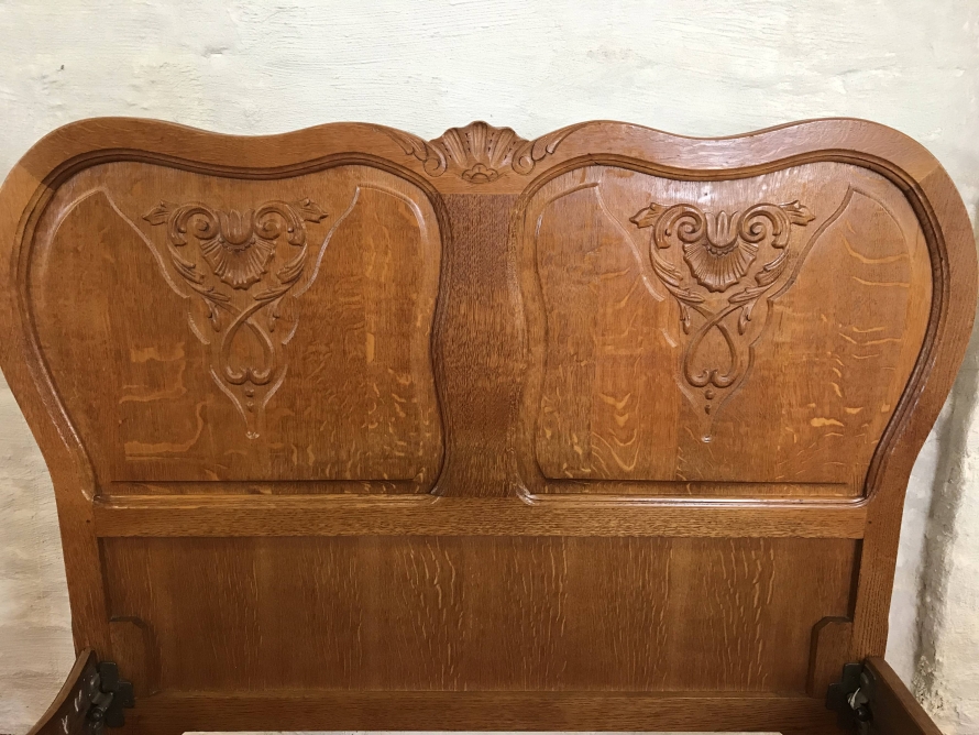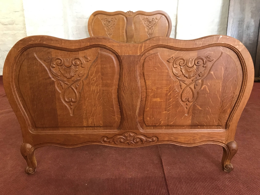 Fantastic French Golden Oak Carved Single Bed.