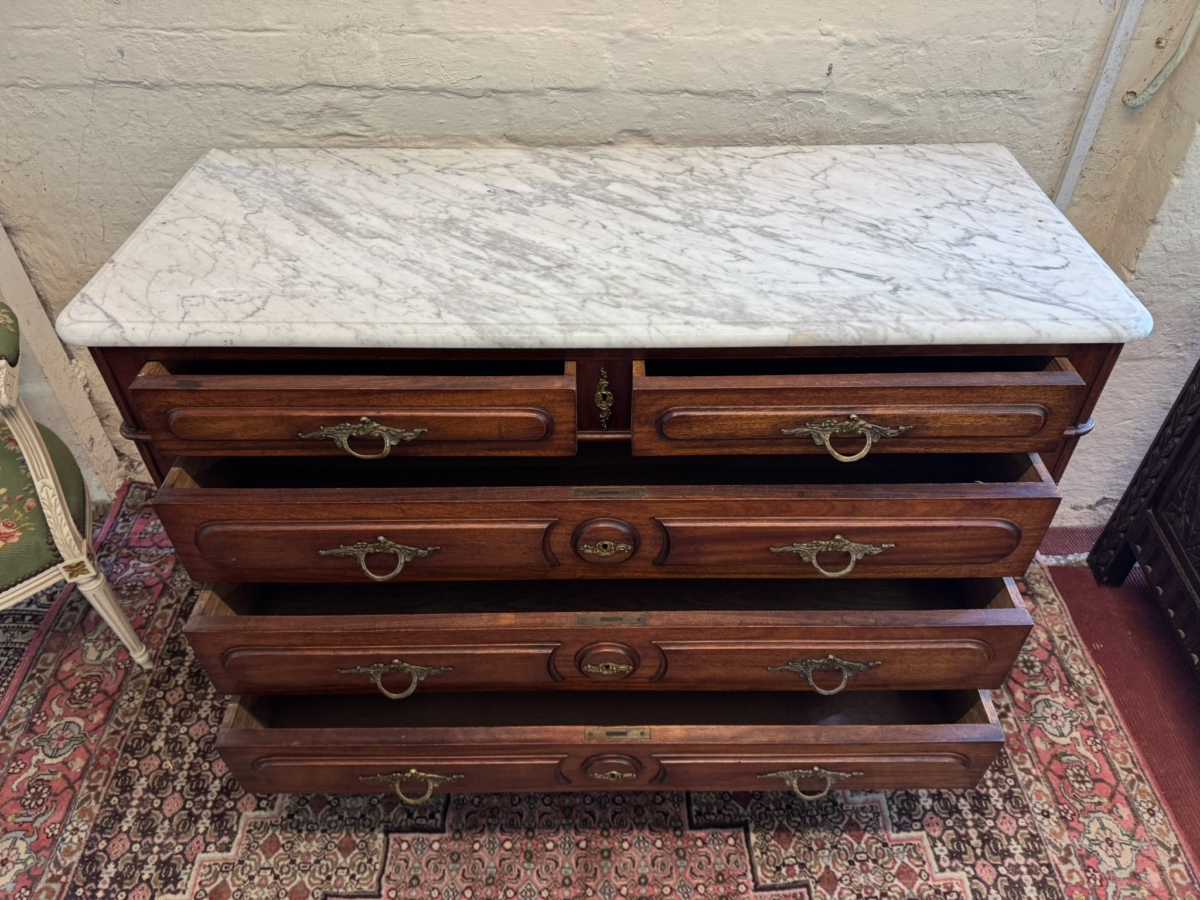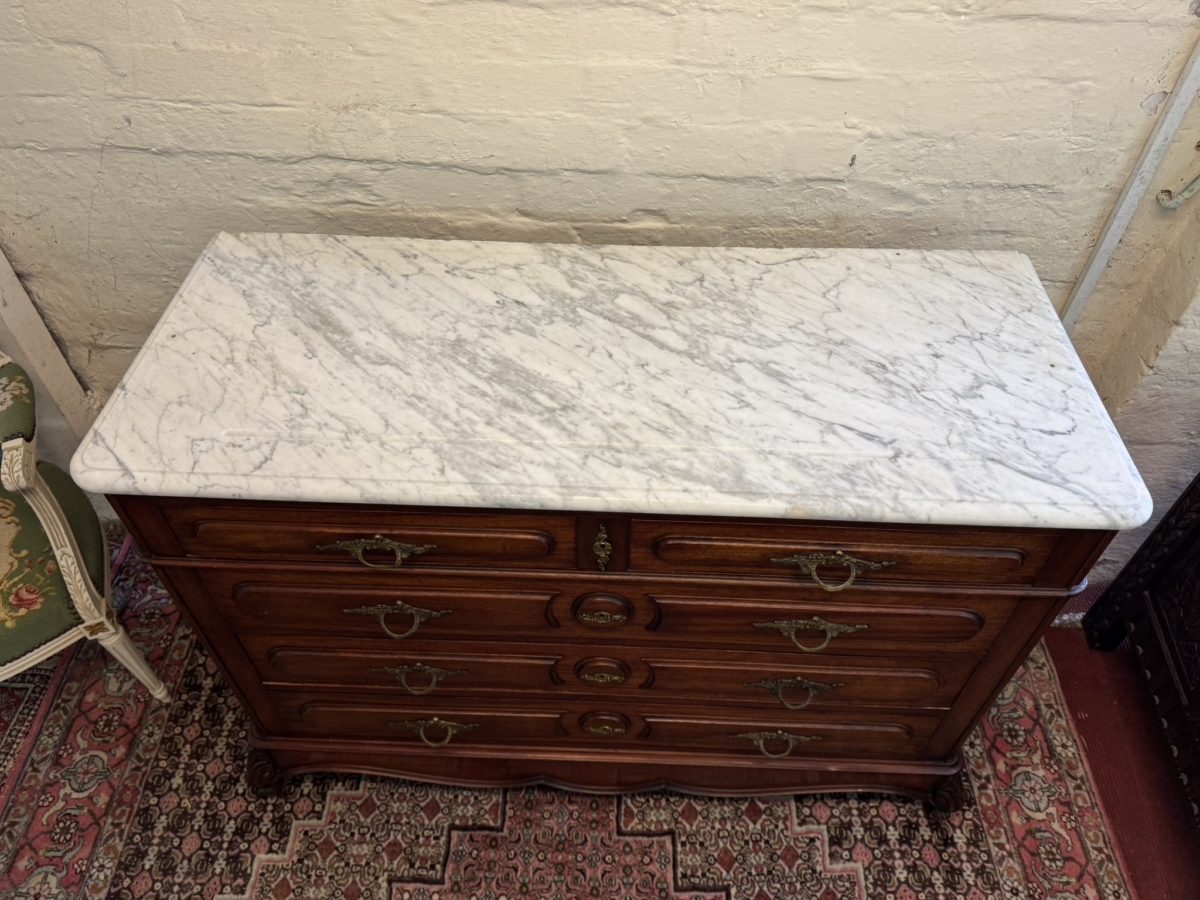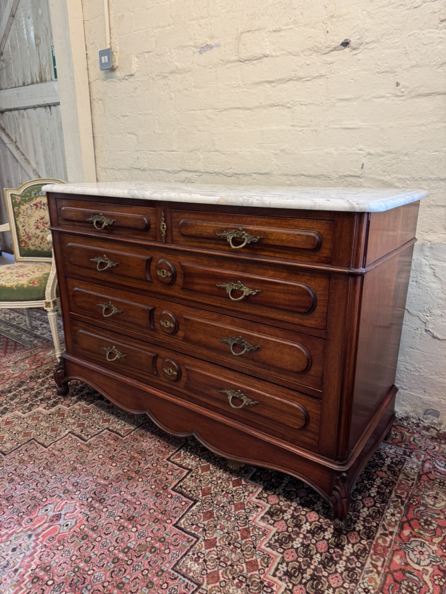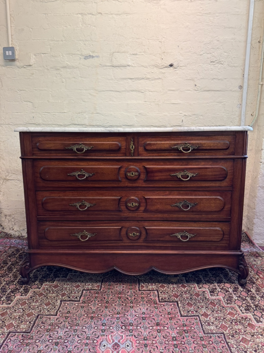 - FANTASTIC FRENCH MAHOGANY MARBLE TOP COMMODE/CHEST OF DRAWERS CIRCA 1890