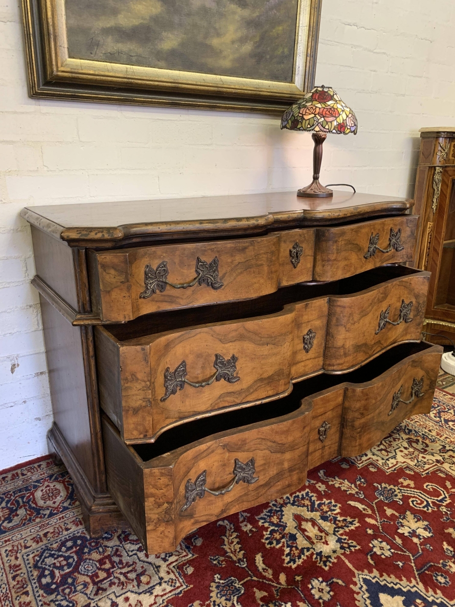 Fantastic French Shaped Walnut Three Drawer Commode/chest Of Drawers – Now Sold