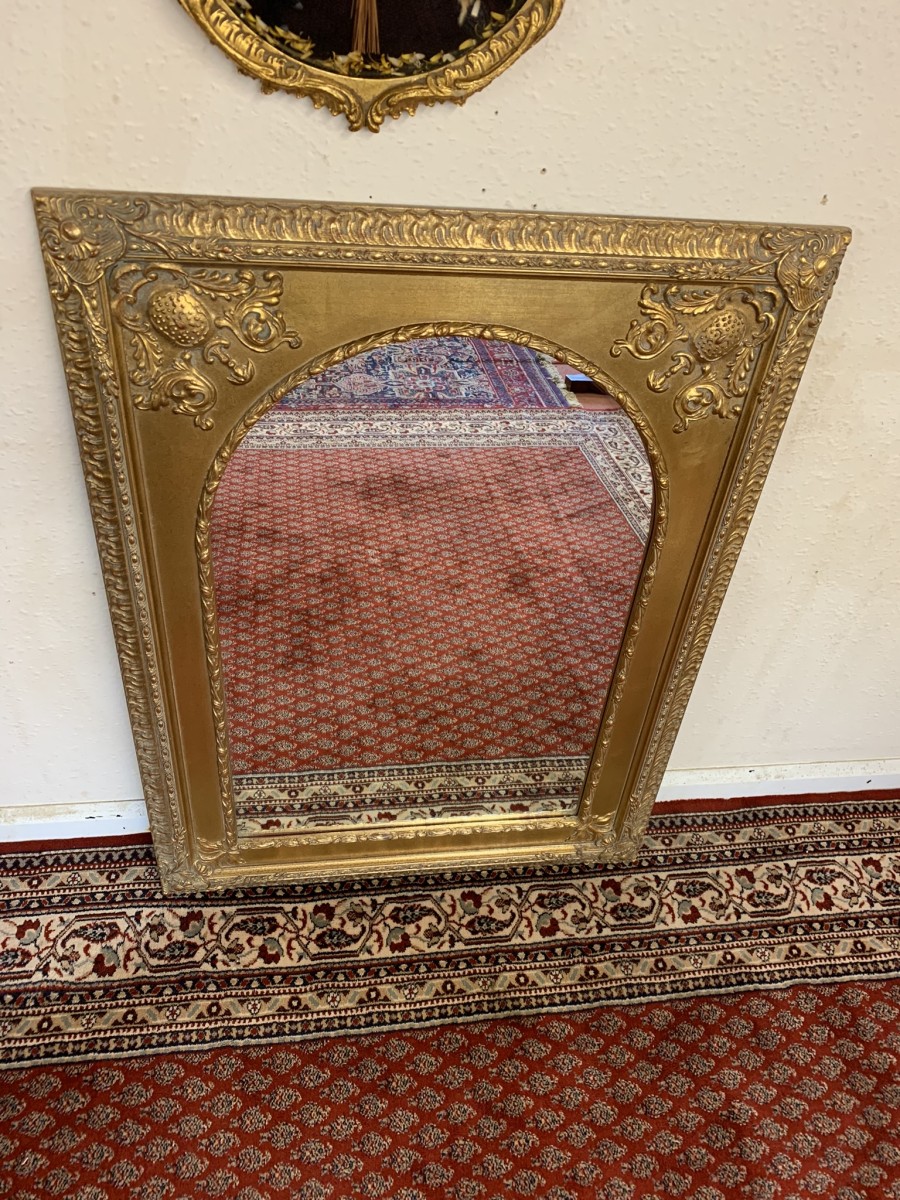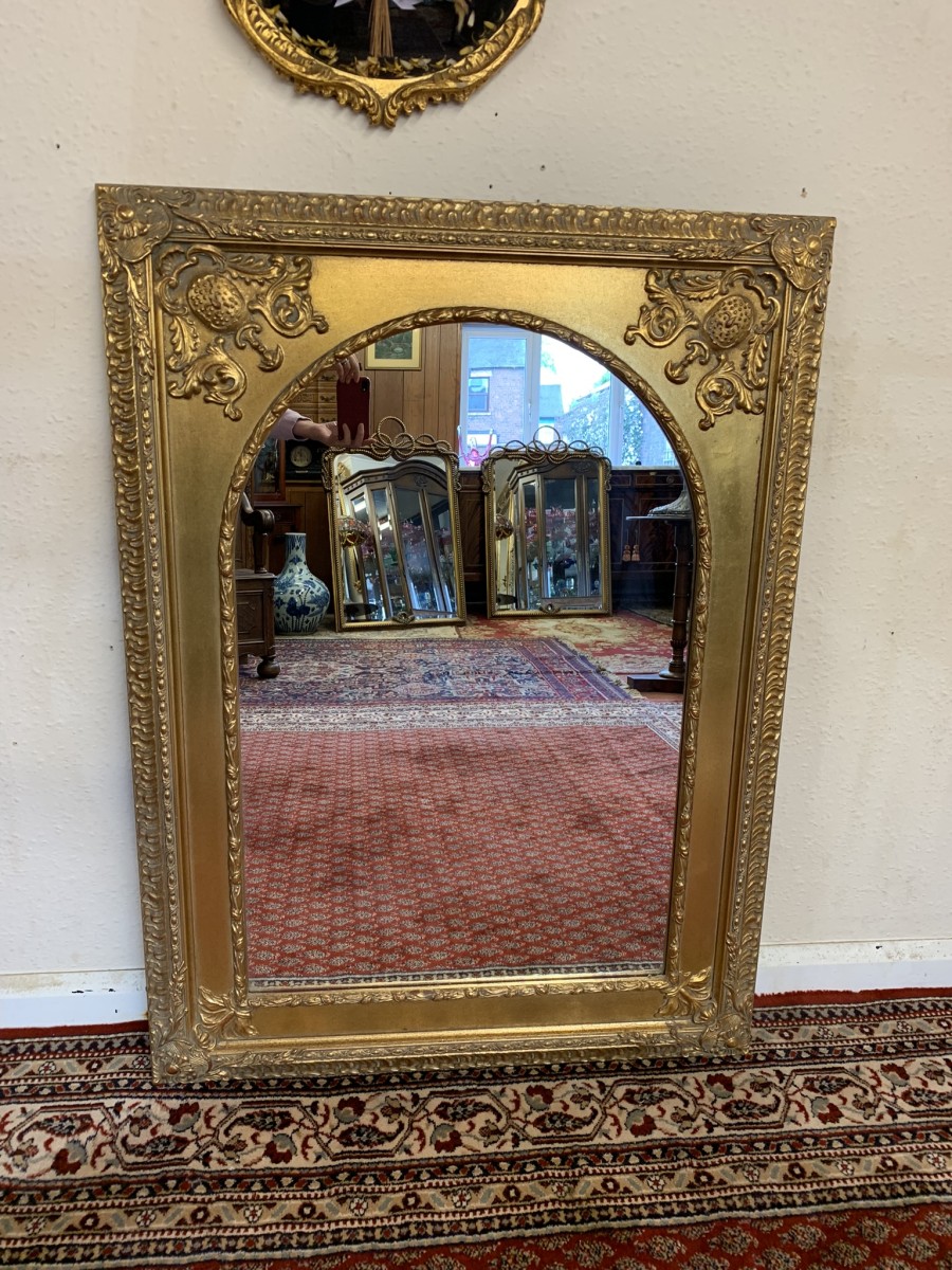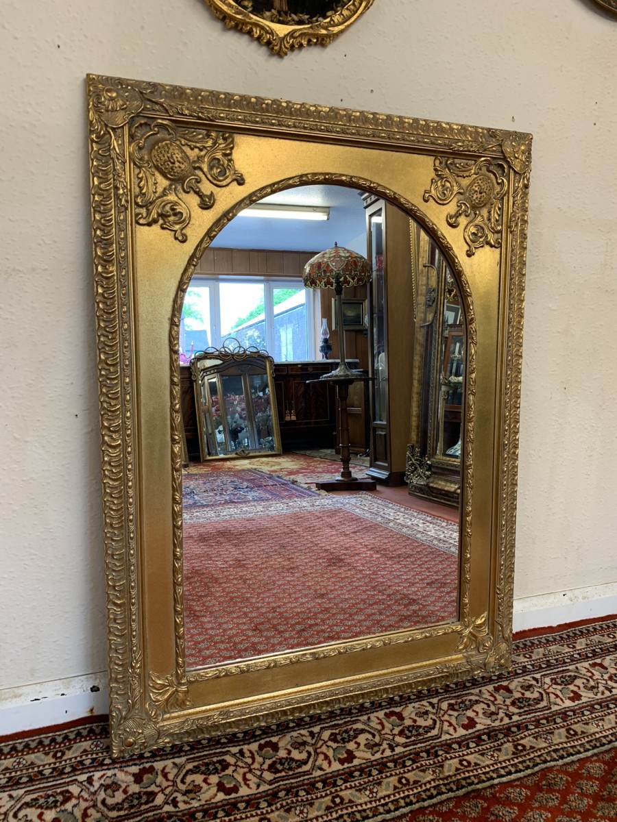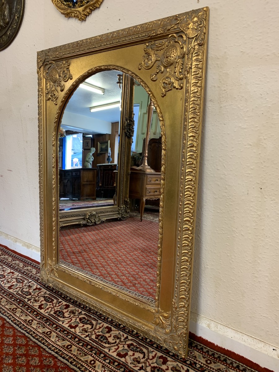 The mirror is in excellent condition. The arched shaped mirror has a carved edging. The mirror sits in a elaborately carved frame.