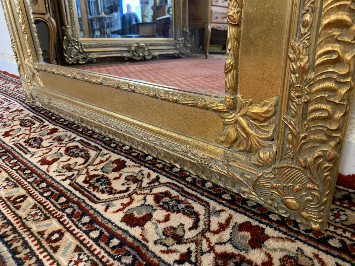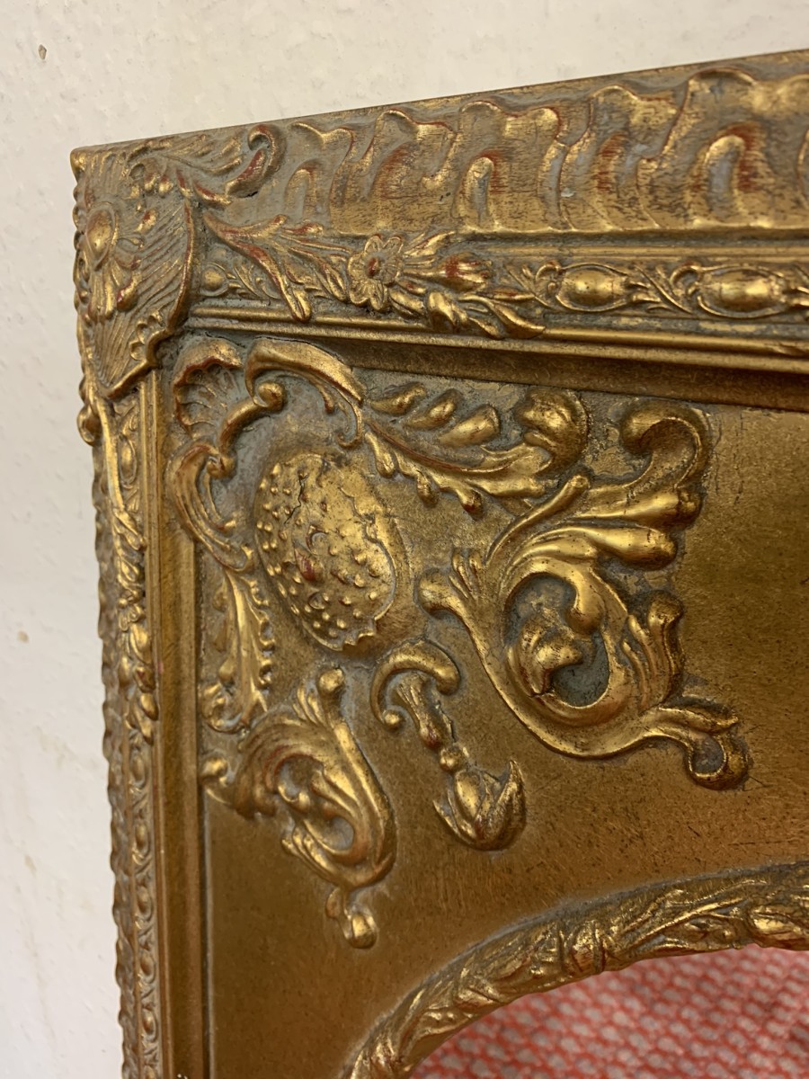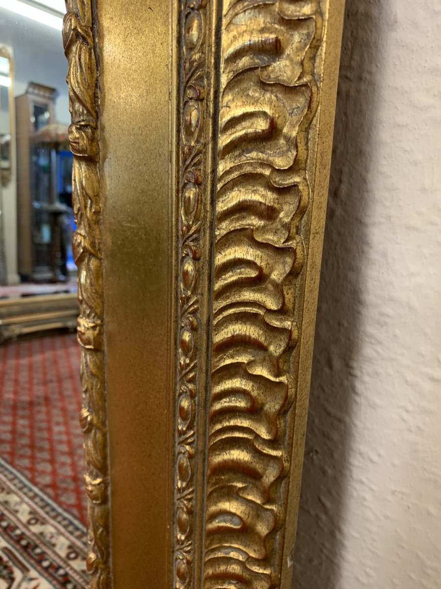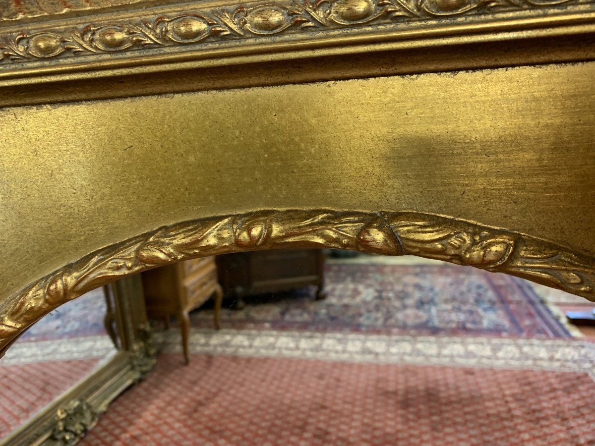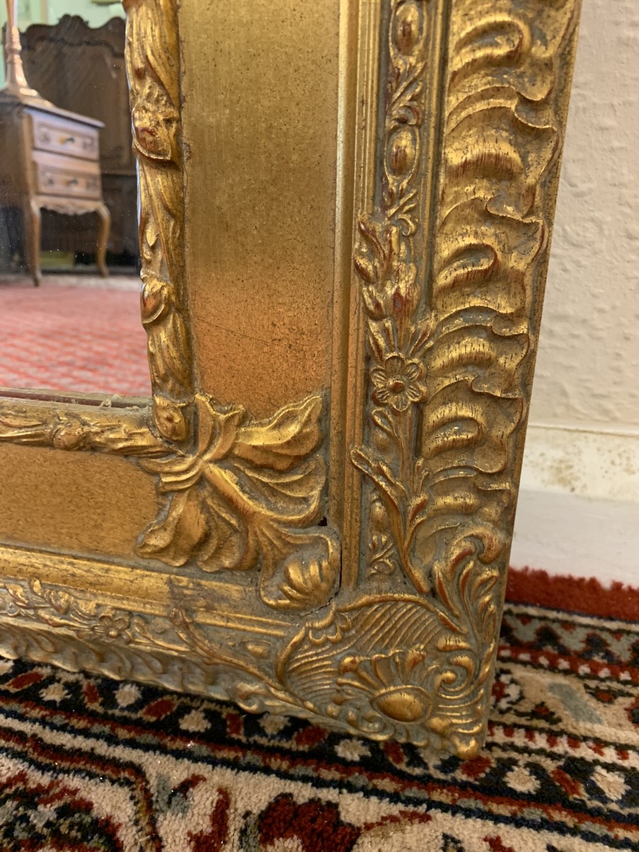 The mirror is in excellent condition. The arched shaped mirror has a carved edging. The mirror sits in a elaborately carved frame.