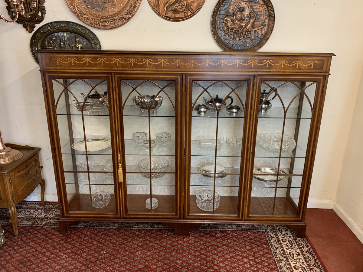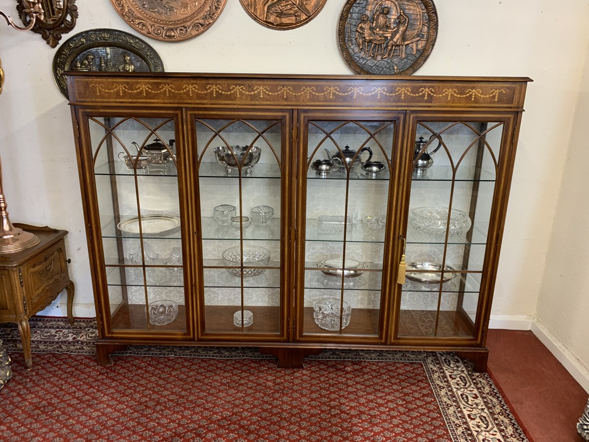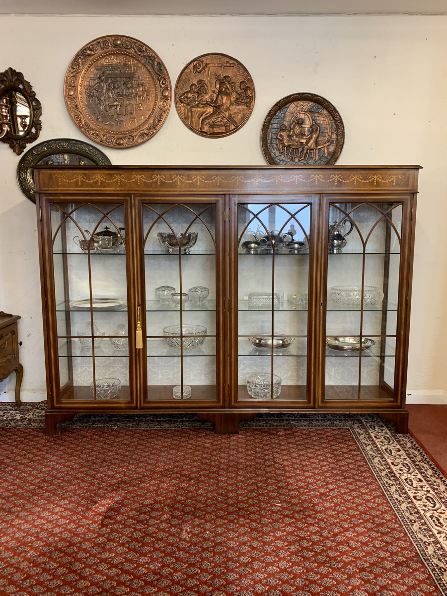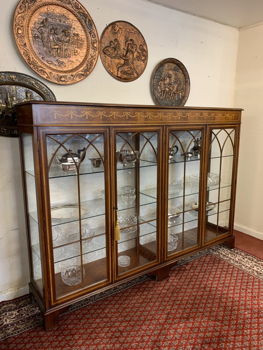 Fantastic Large Mahogany Inlaid Four Door Display Cabinet