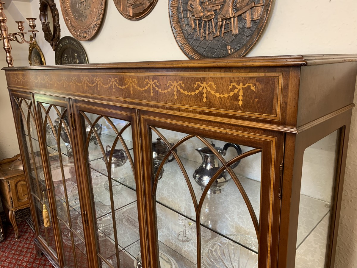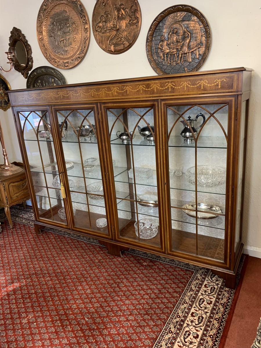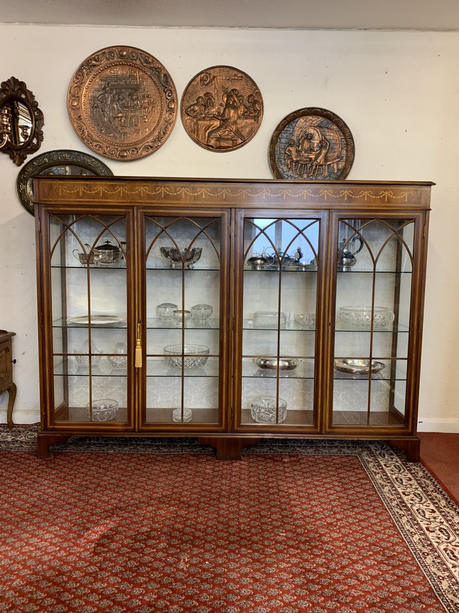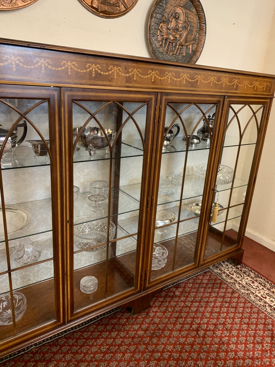 Fantastic Large Mahogany Inlaid Four Door Display Cabinet
