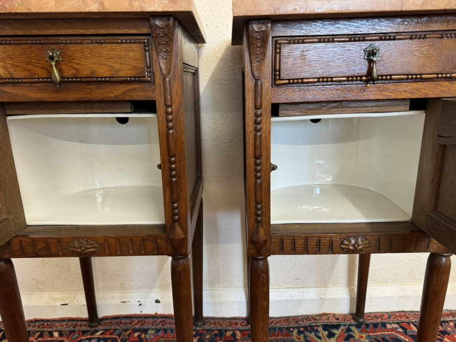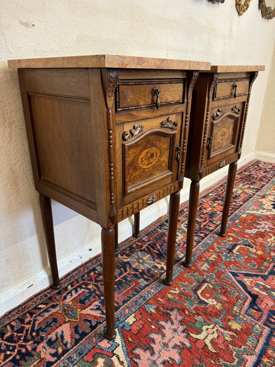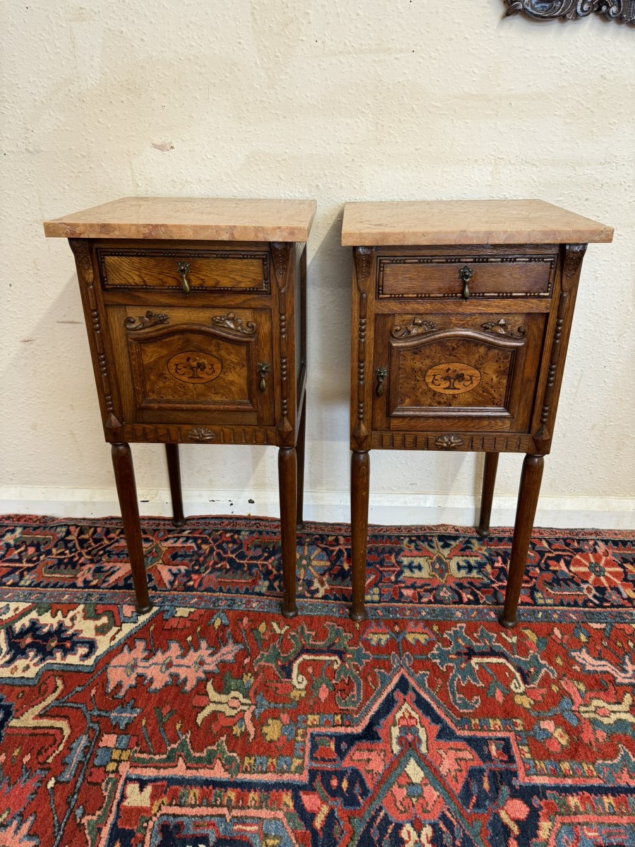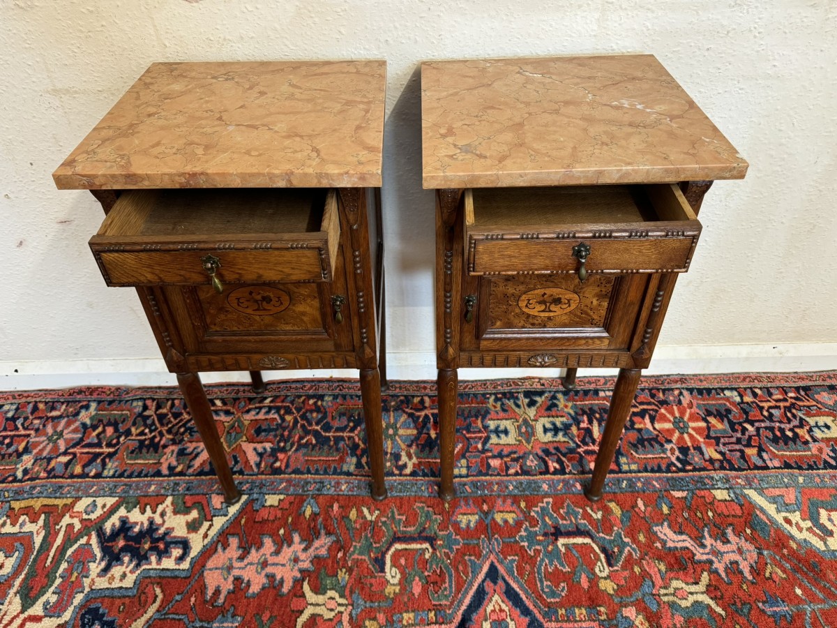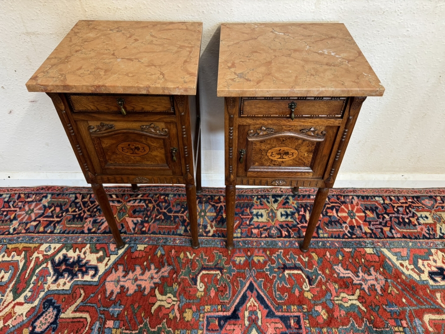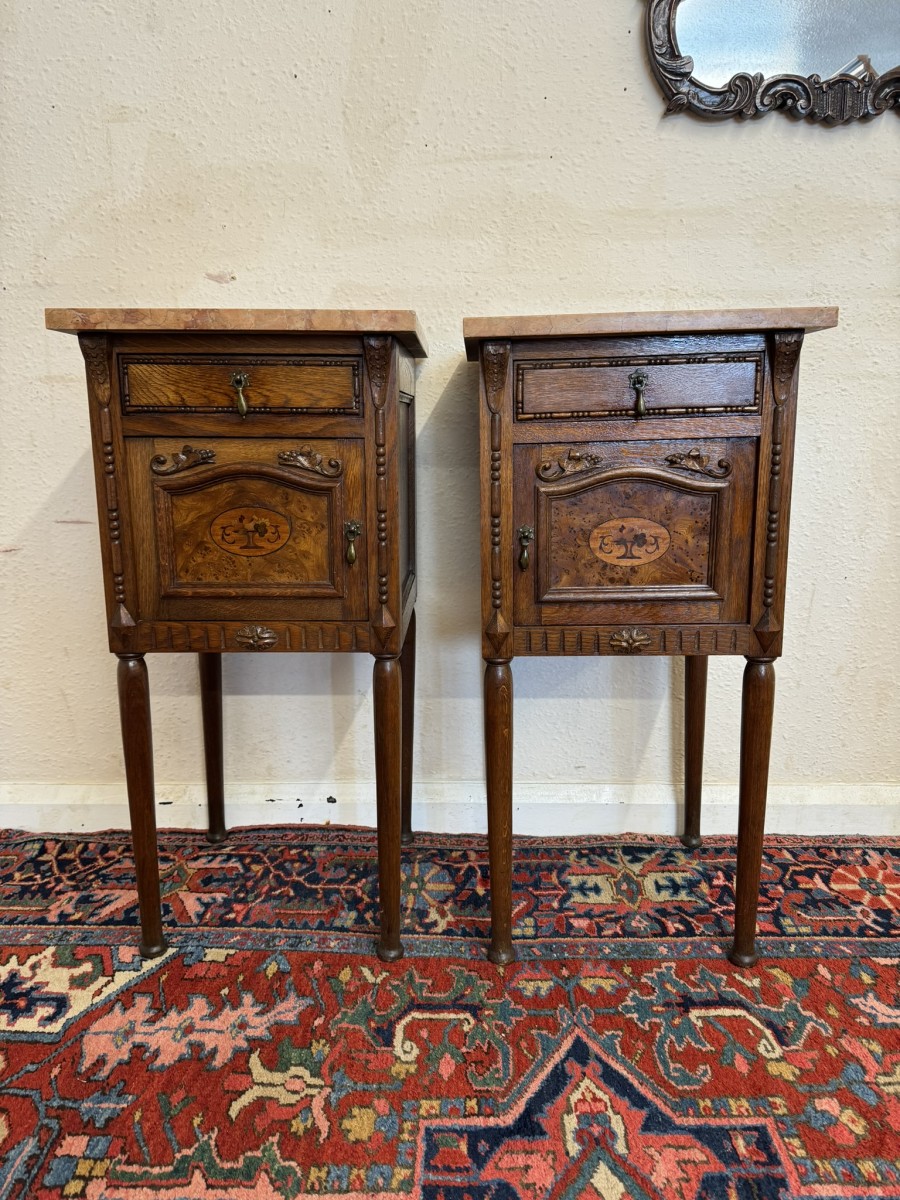 - Fantastic Pair Of Antique French Marble Top Bedside Cabinets Circa 1900
