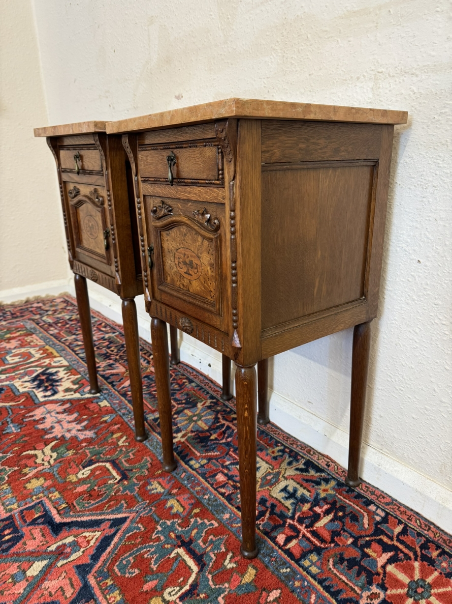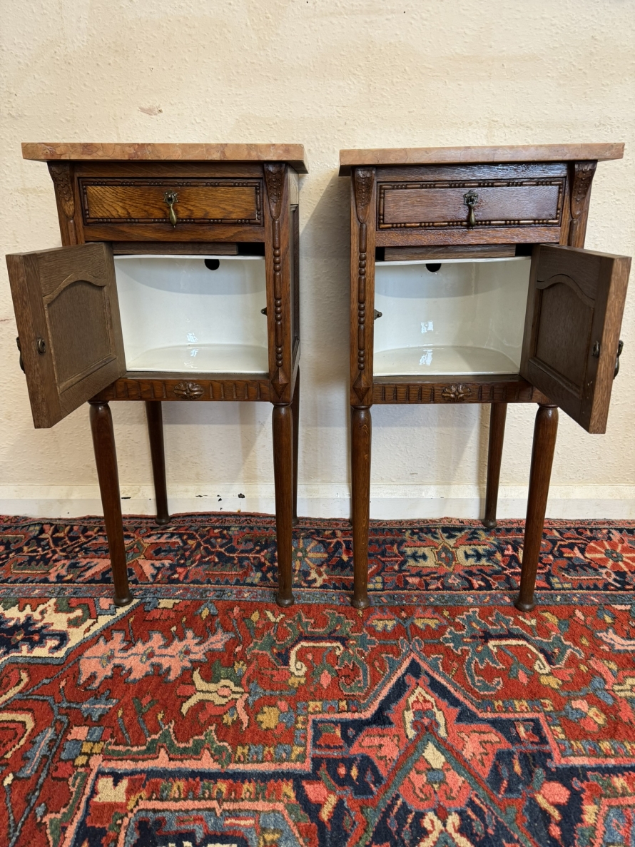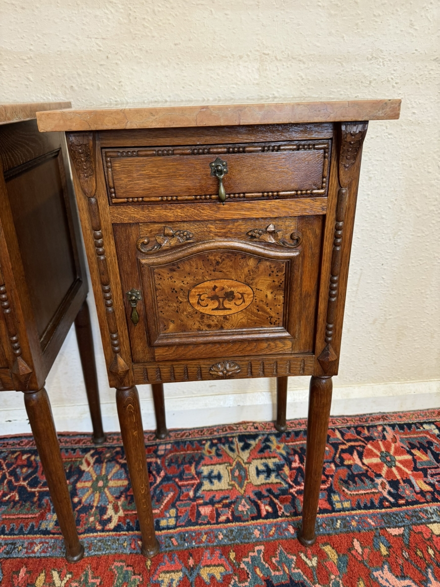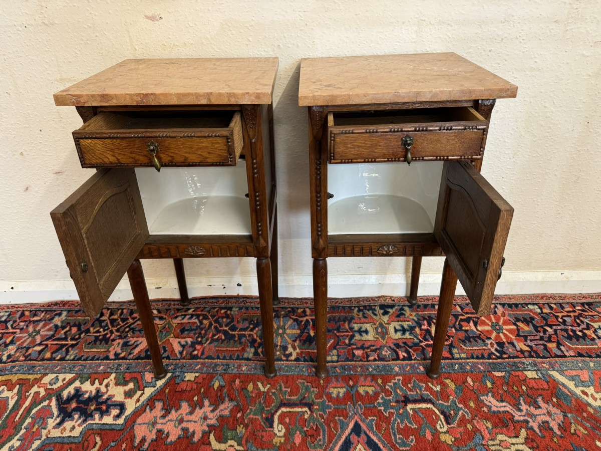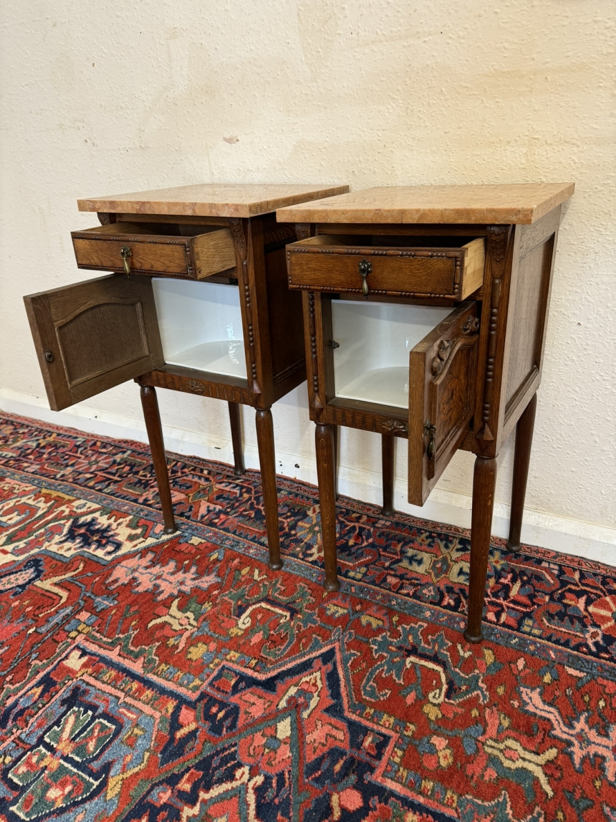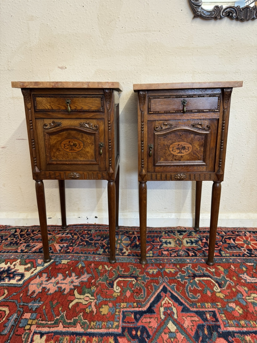 - Fantastic Pair Of Antique French Marble Top Bedside Cabinets Circa 1900