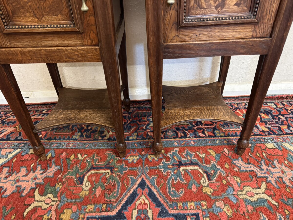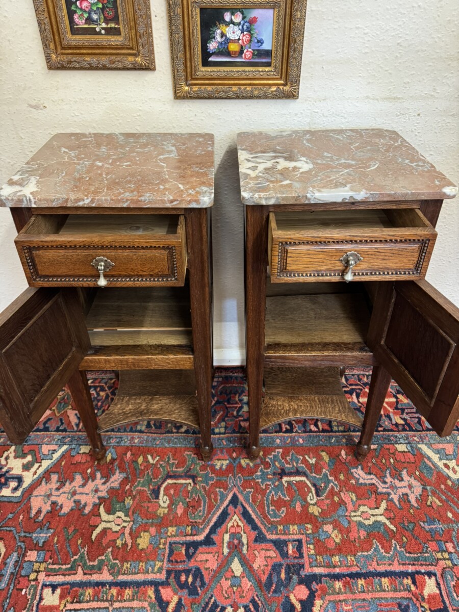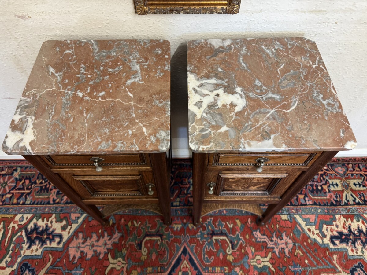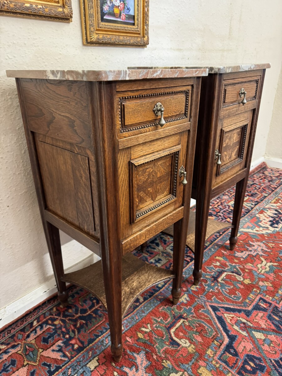 - FANTASTIC PAIR OF ANTIQUE FRENCH OAK MARBLE TOP BEDSIDE CABINETS CIRCA 1900