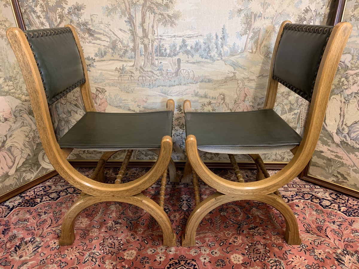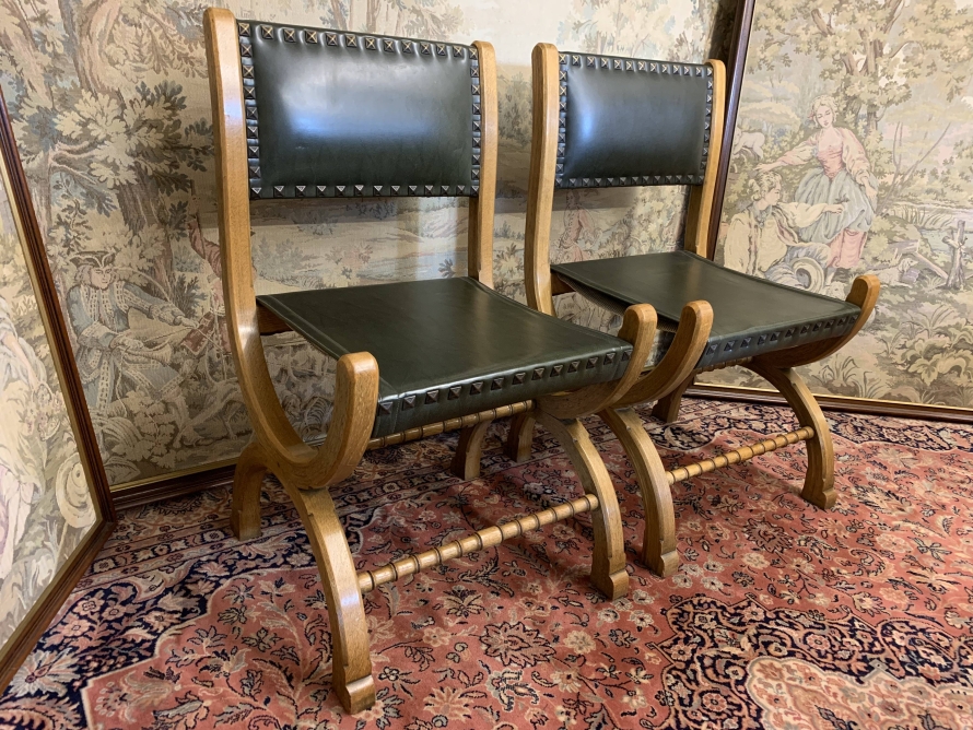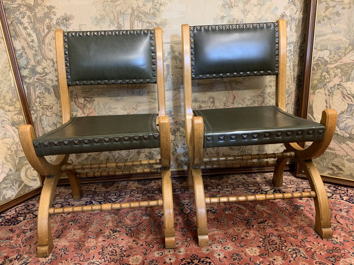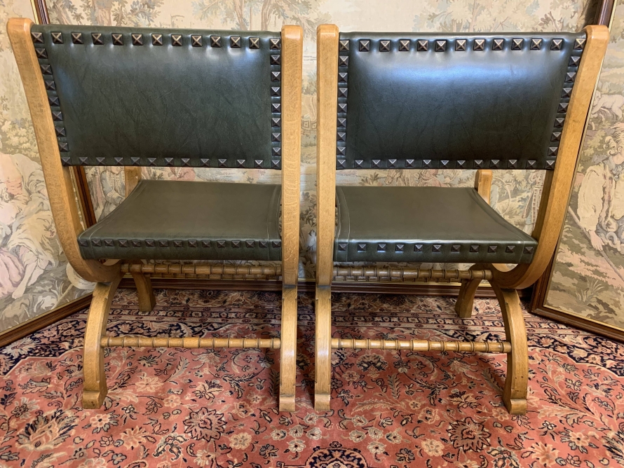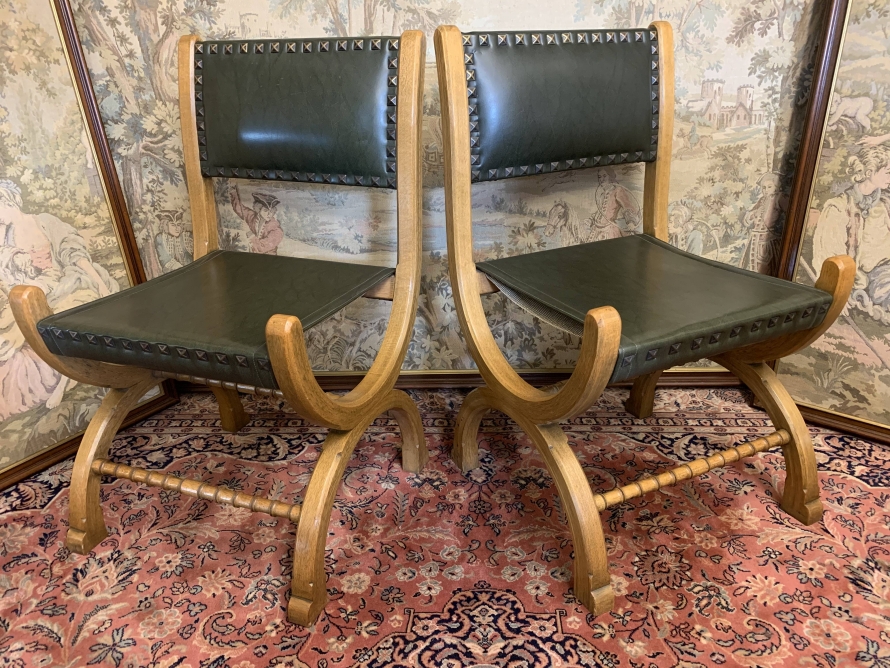 Fantastic Pair Of Antique Oak X Framed Chairs In The Manor Of Pugin Circa 1920 – Now Sold