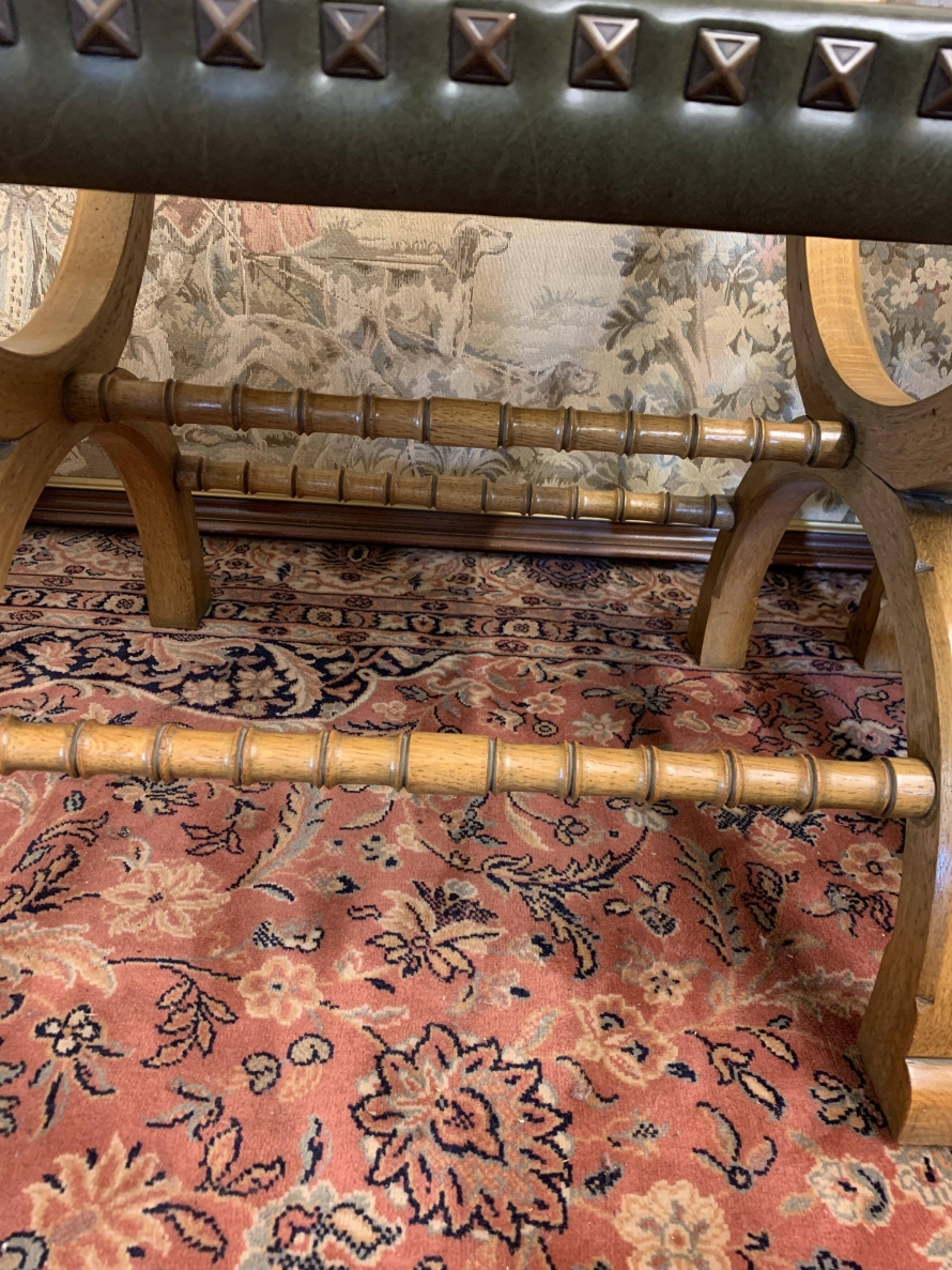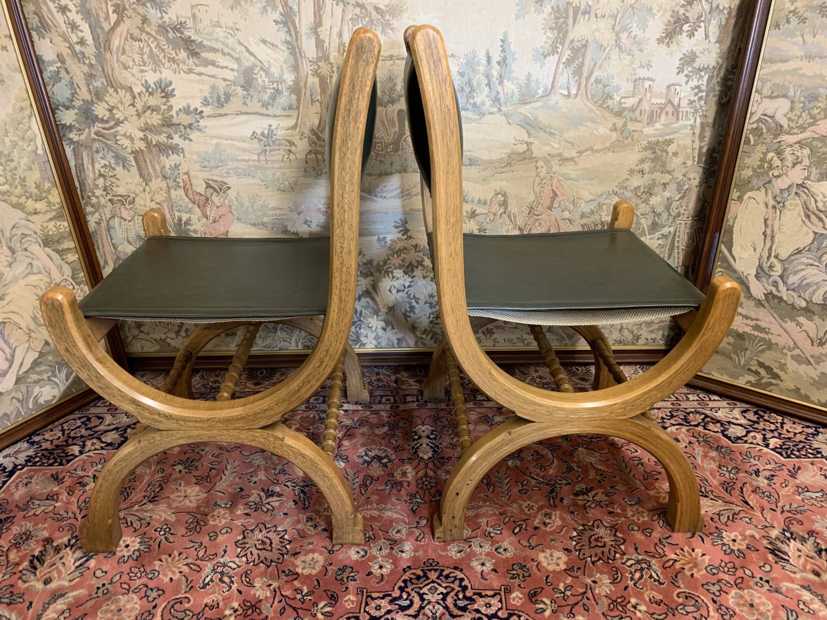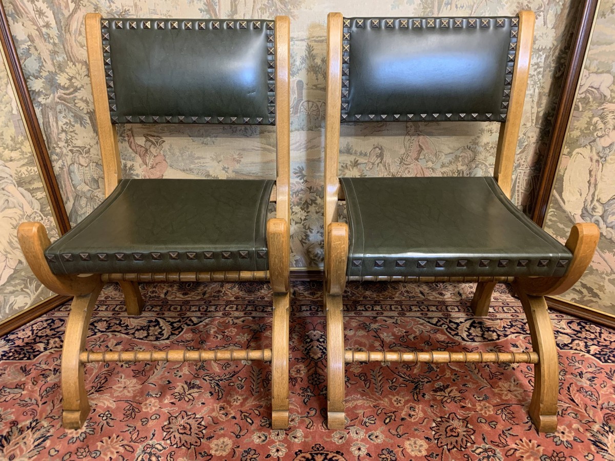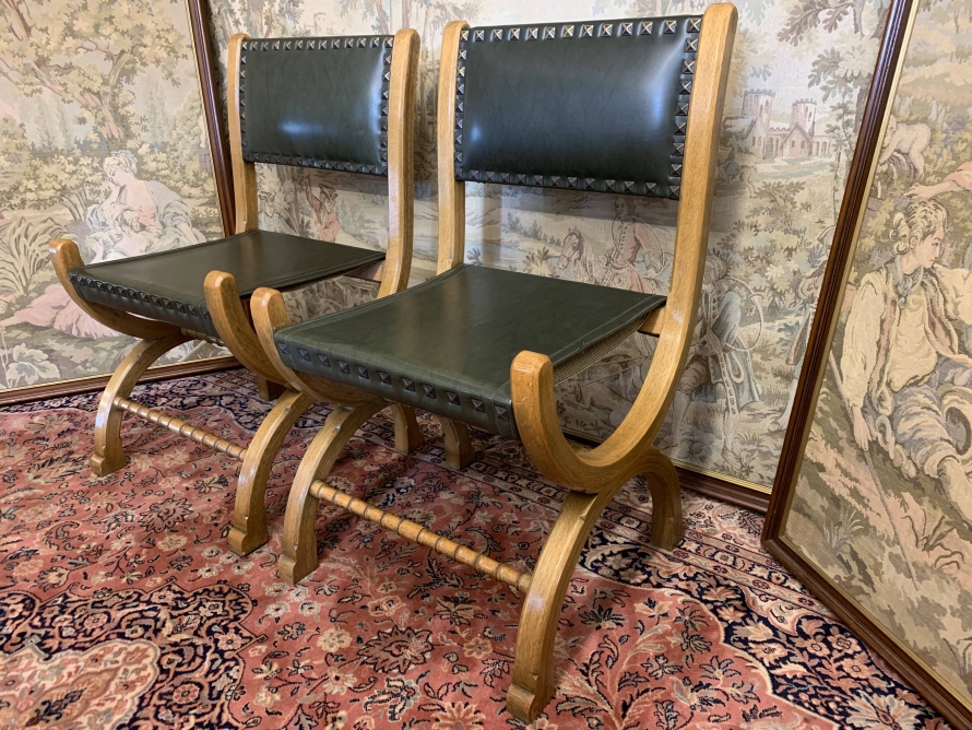 Fantastic Pair Of Antique Oak X Framed Chairs In The Manor Of Pugin Circa 1920 – Now Sold