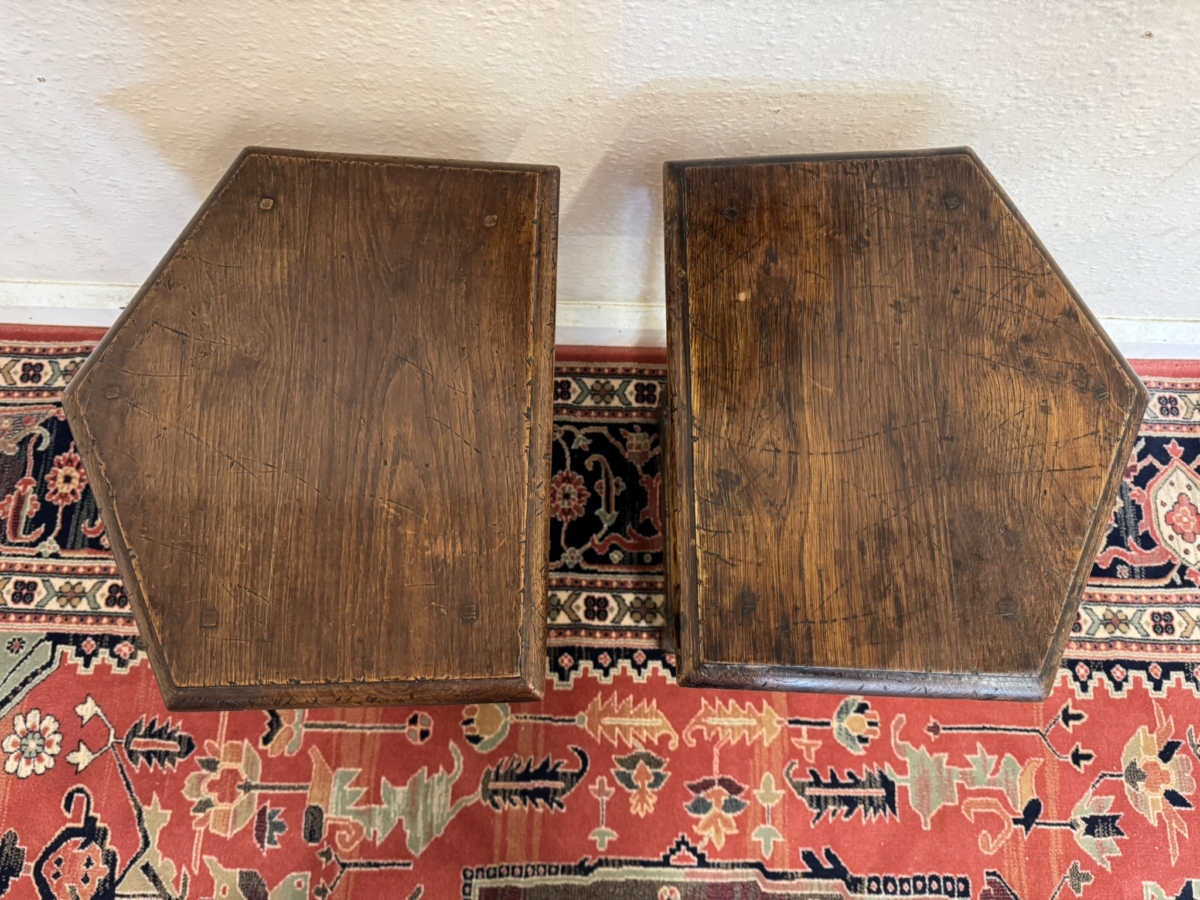 - FANTASTIC PAIR OF SHAPED SOLID OAK ACCENT TABLES CIRCA 1930