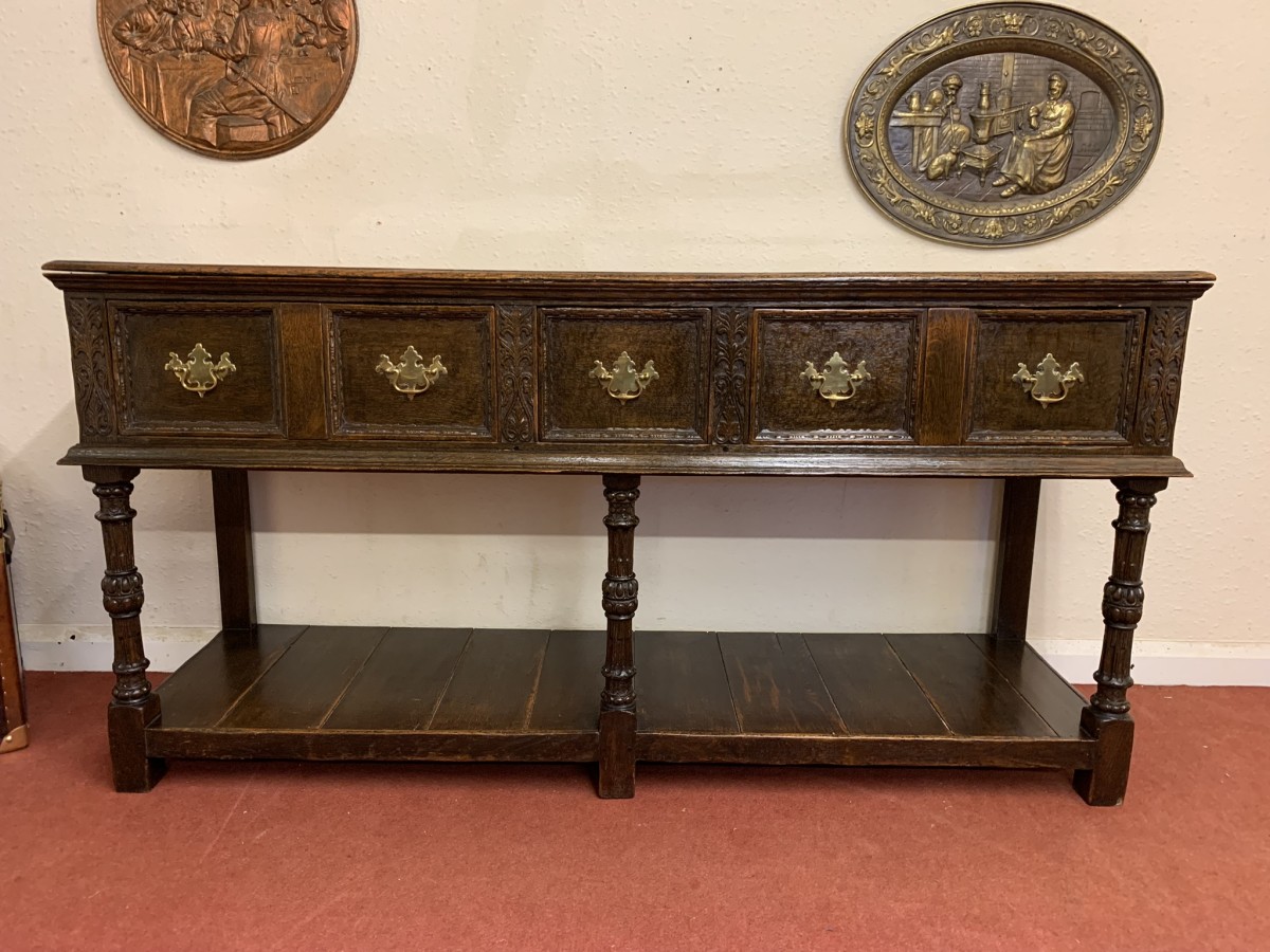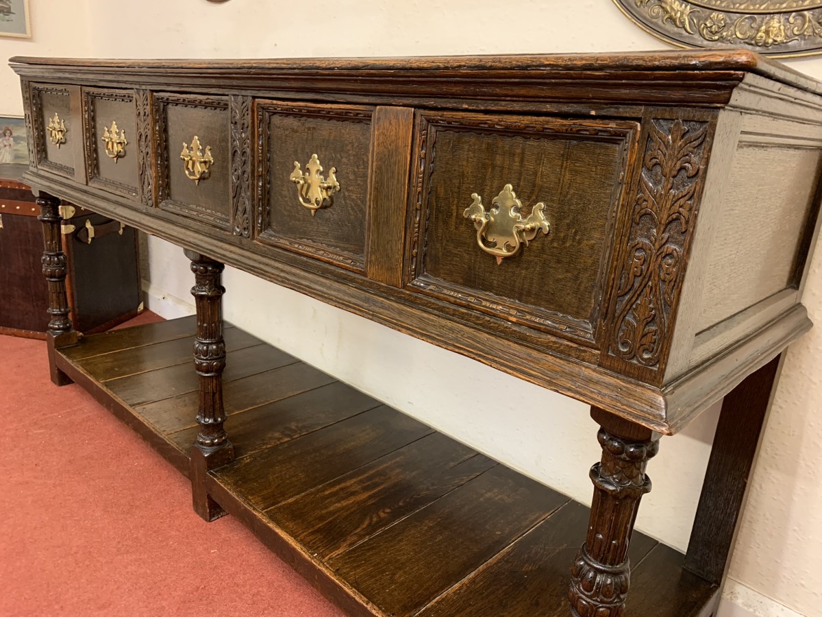 - Fantastic Quality Antique Carved Country Oak Dresser Base/sideboard Circa 1900