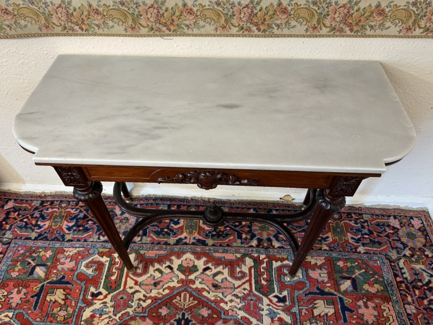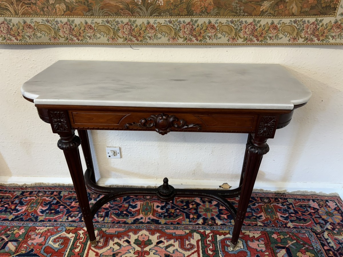 - Fantastic Quality Antique Carved Mahogany Marble Top Console Circa 1910