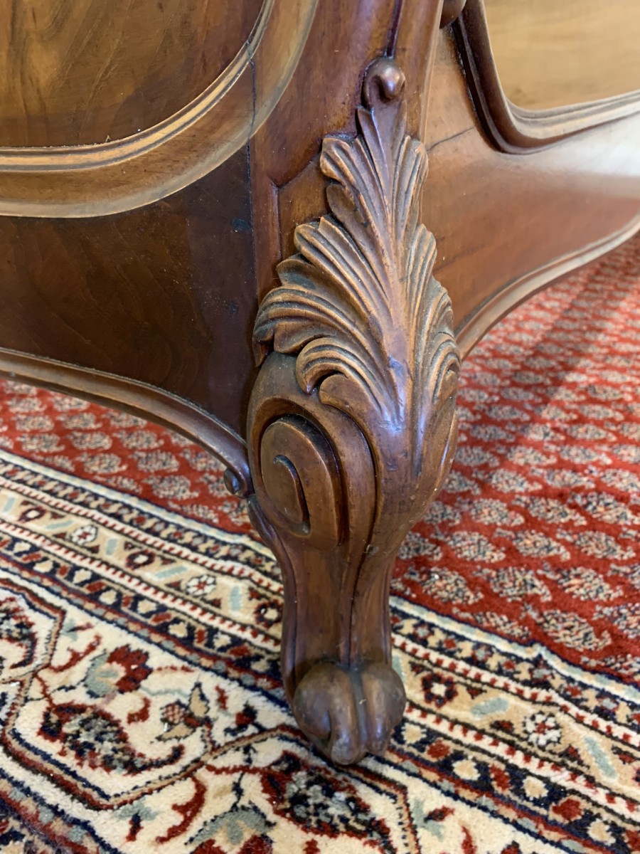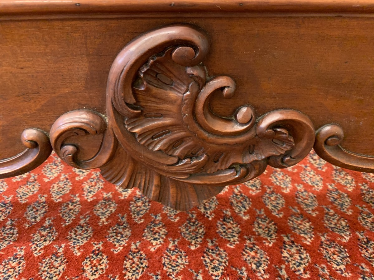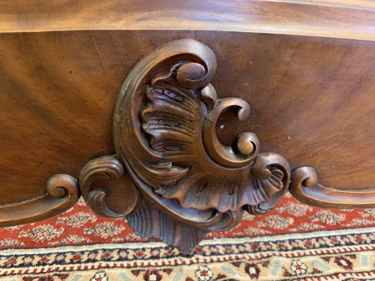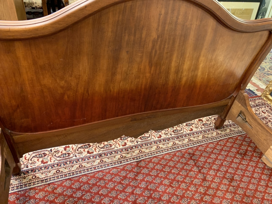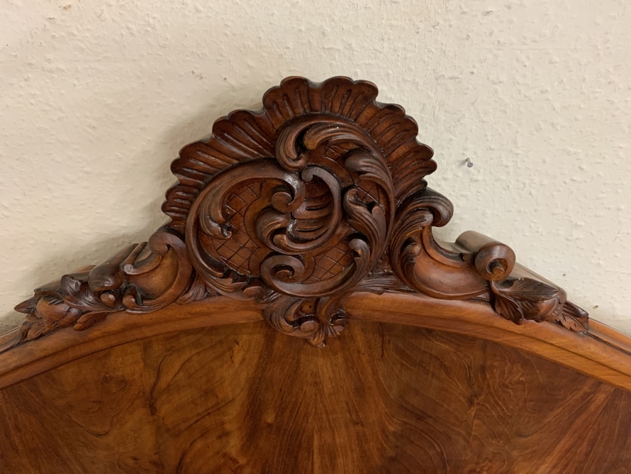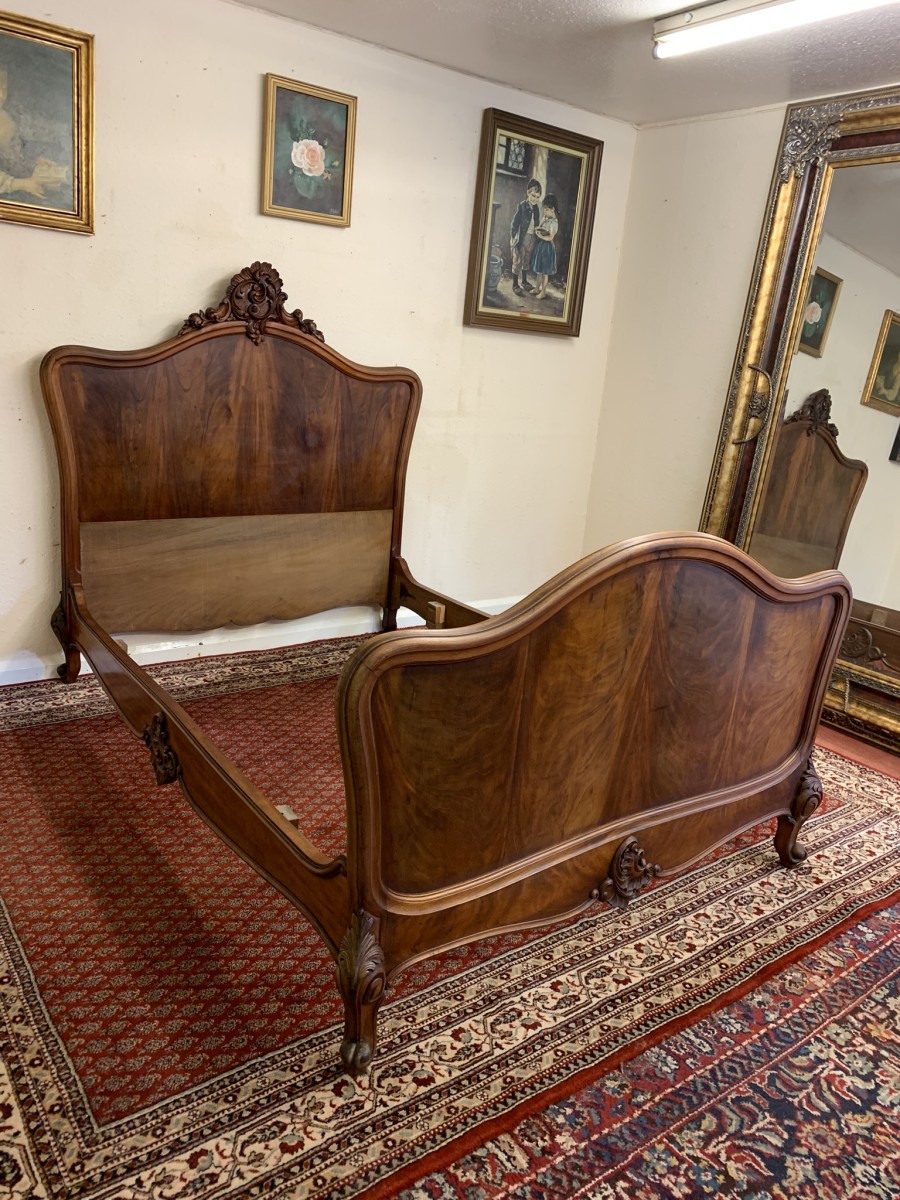 This fabulous quality French antique bed dates circa 1880. The headboard rises to a stunning central carving. Having shaped footboard with carving to the base, shaped side rails, this fantastic bed stands on four impressive carved cabriole legs.