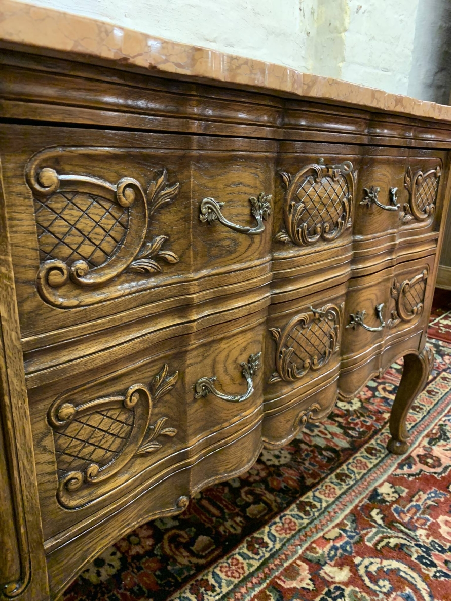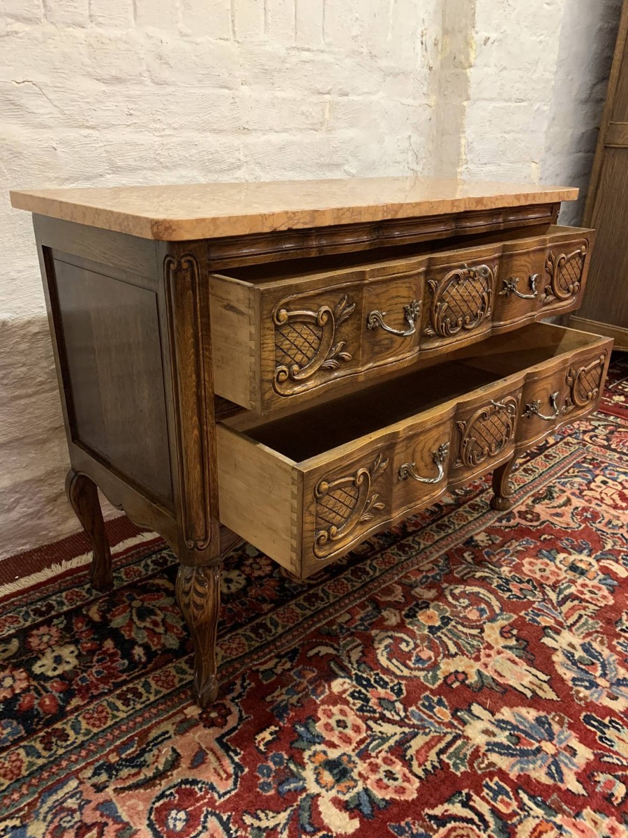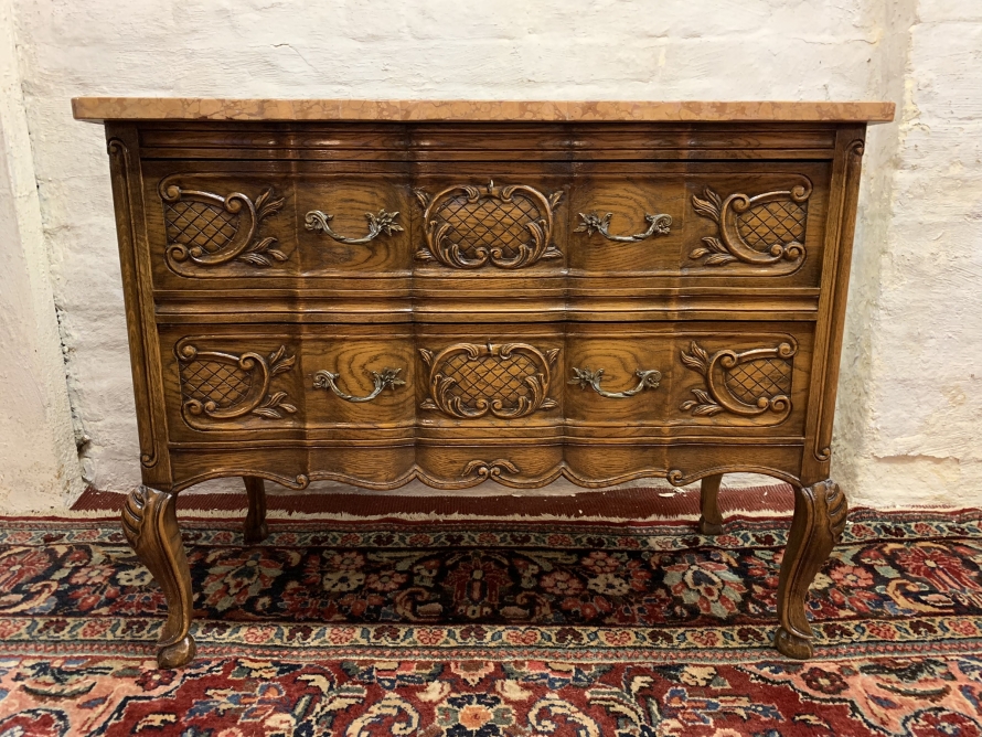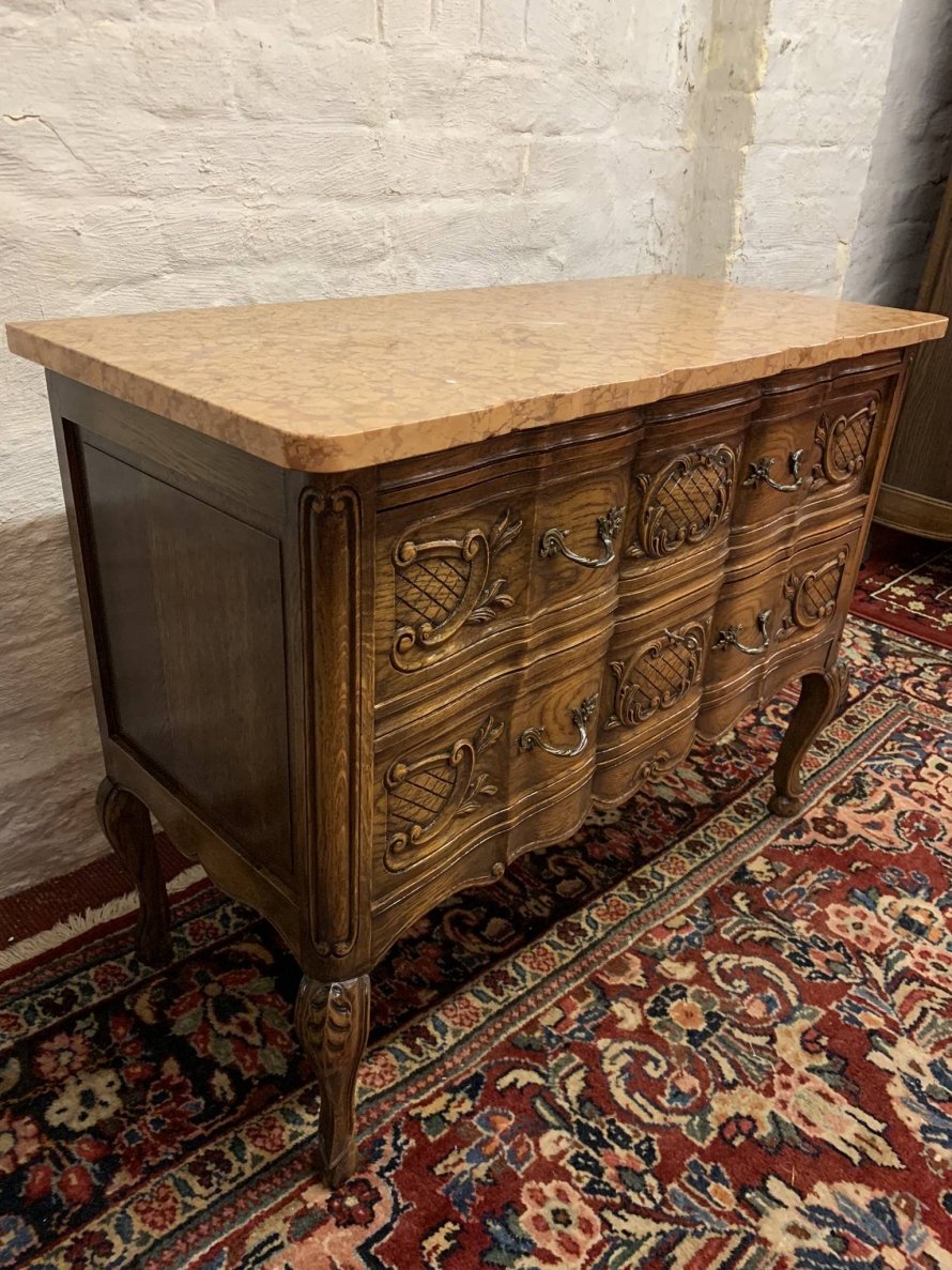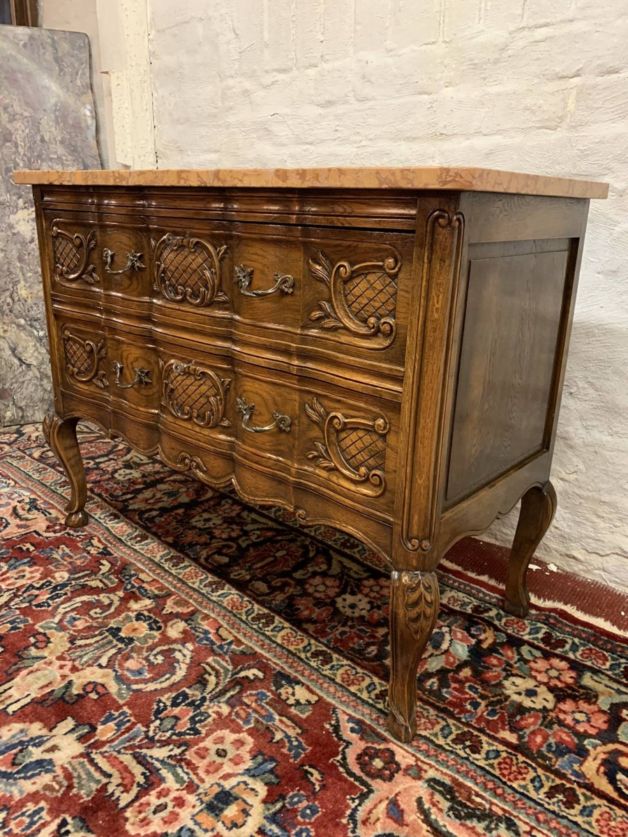 - Fantastic Quality Antique French Carved Oak Marble Top Commode/chest Circa 1900