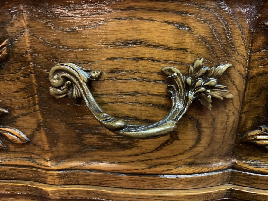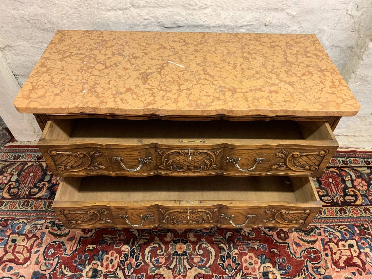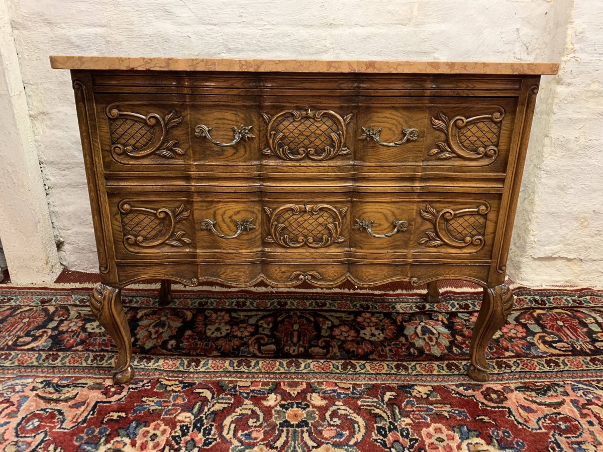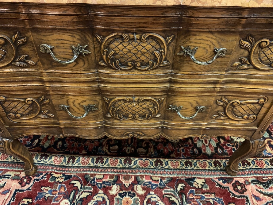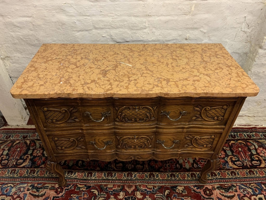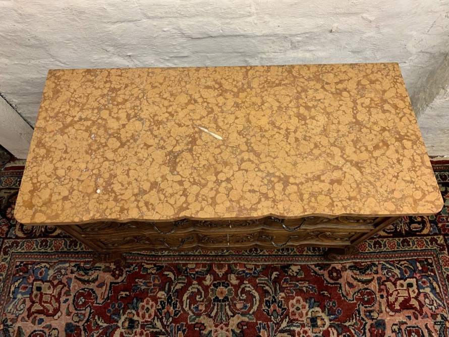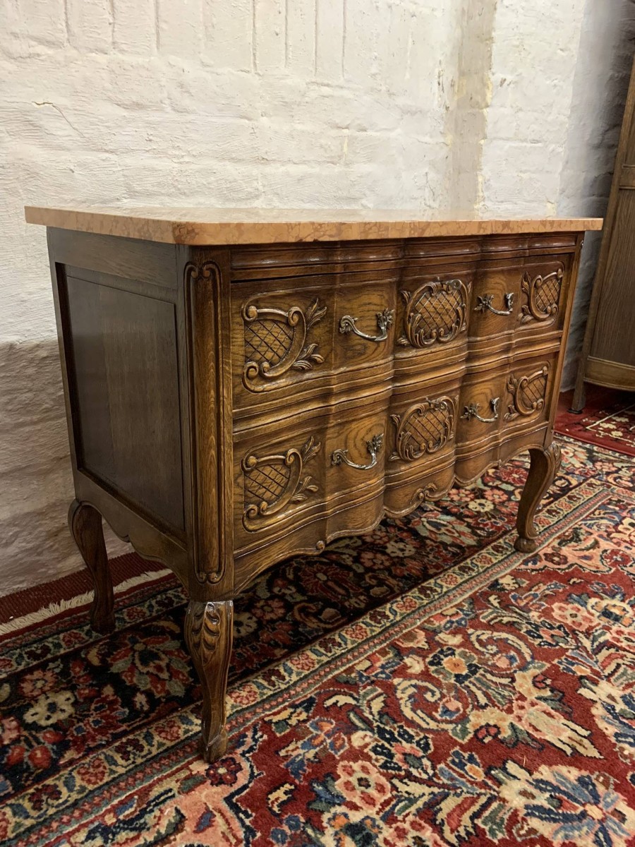 - Fantastic Quality Antique French Carved Oak Marble Top Commode/chest Circa 1900