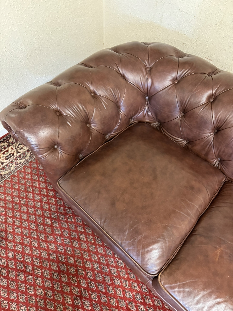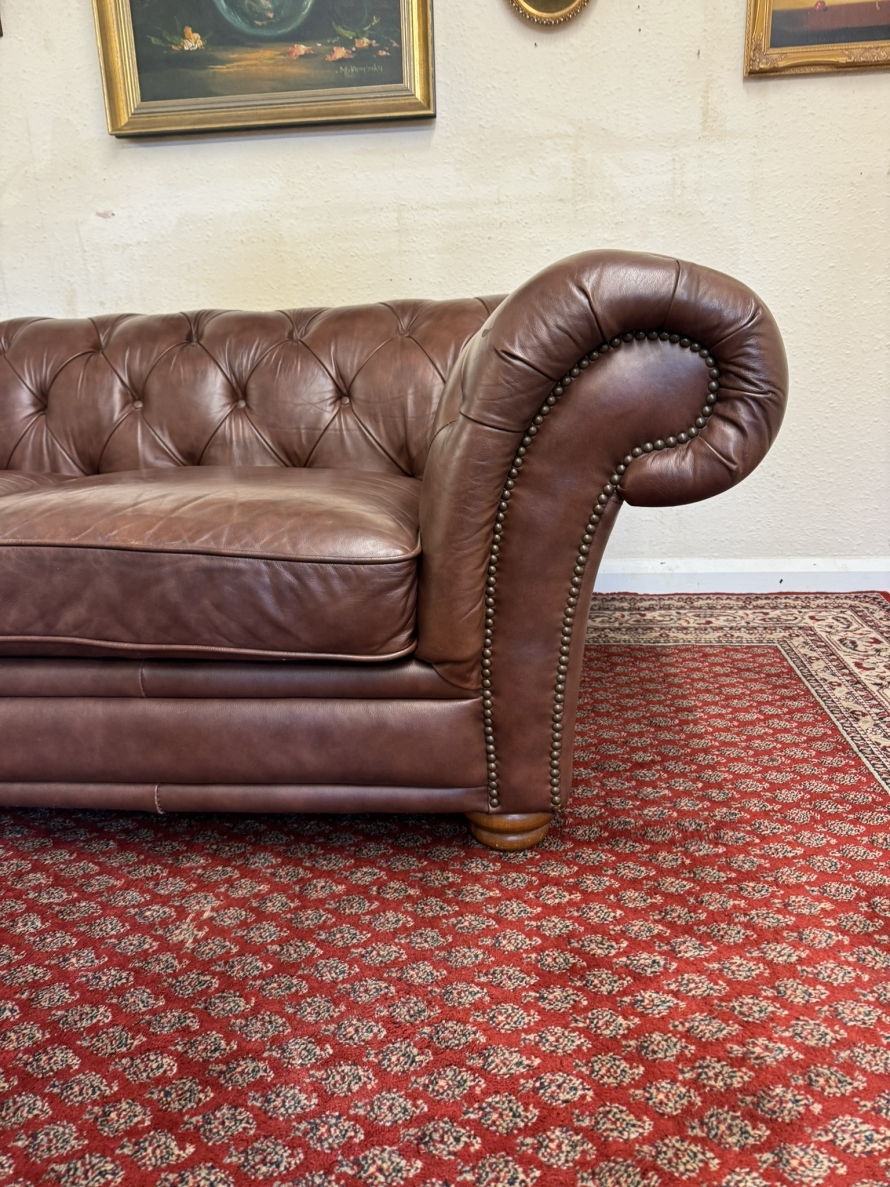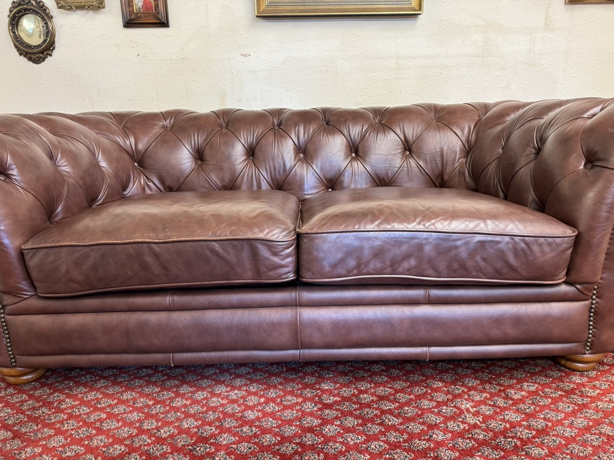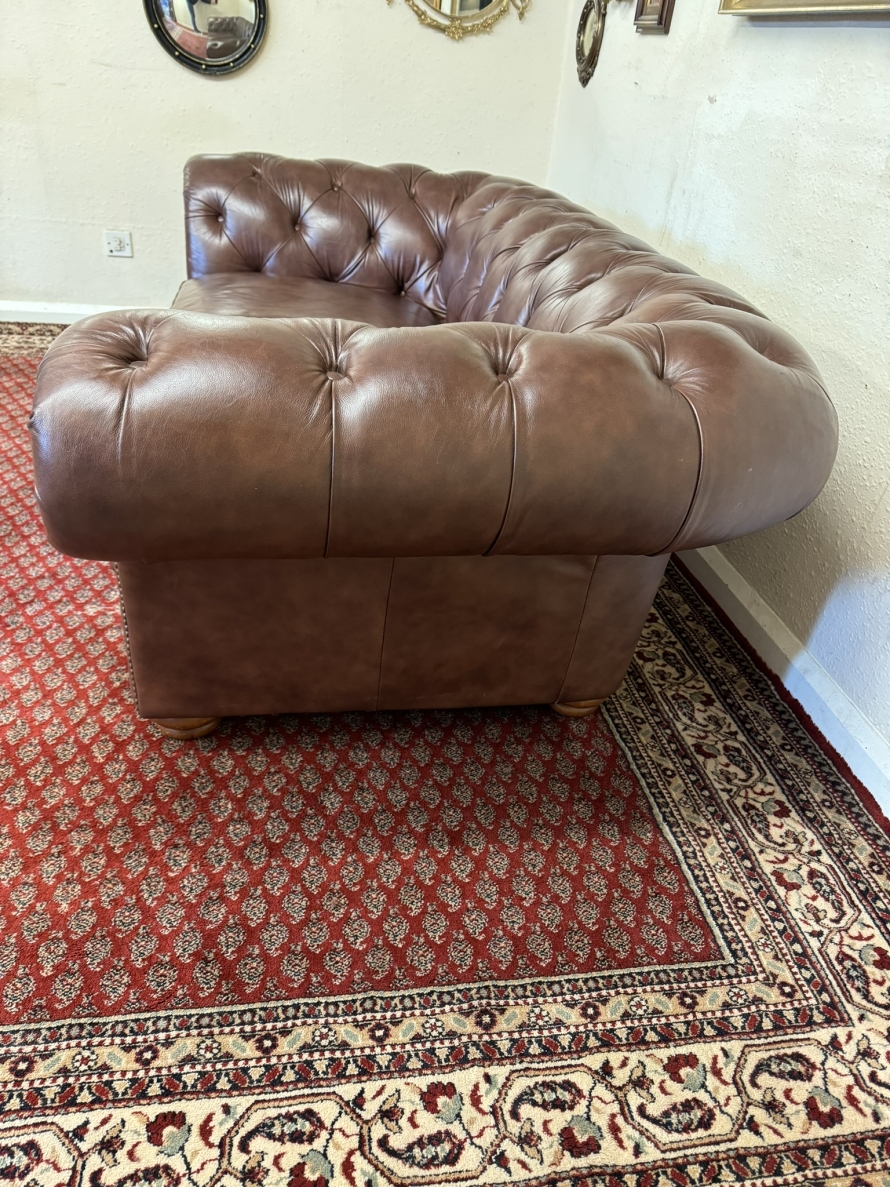 Fantastic Quality Deep Buttoned Brown Leather Chesterfield Settee