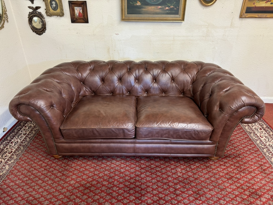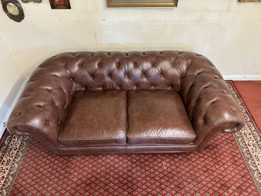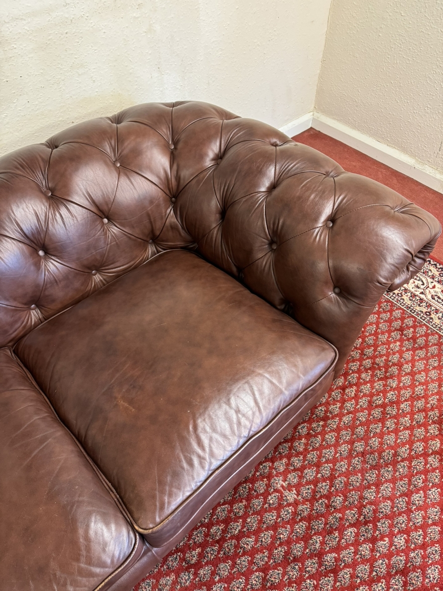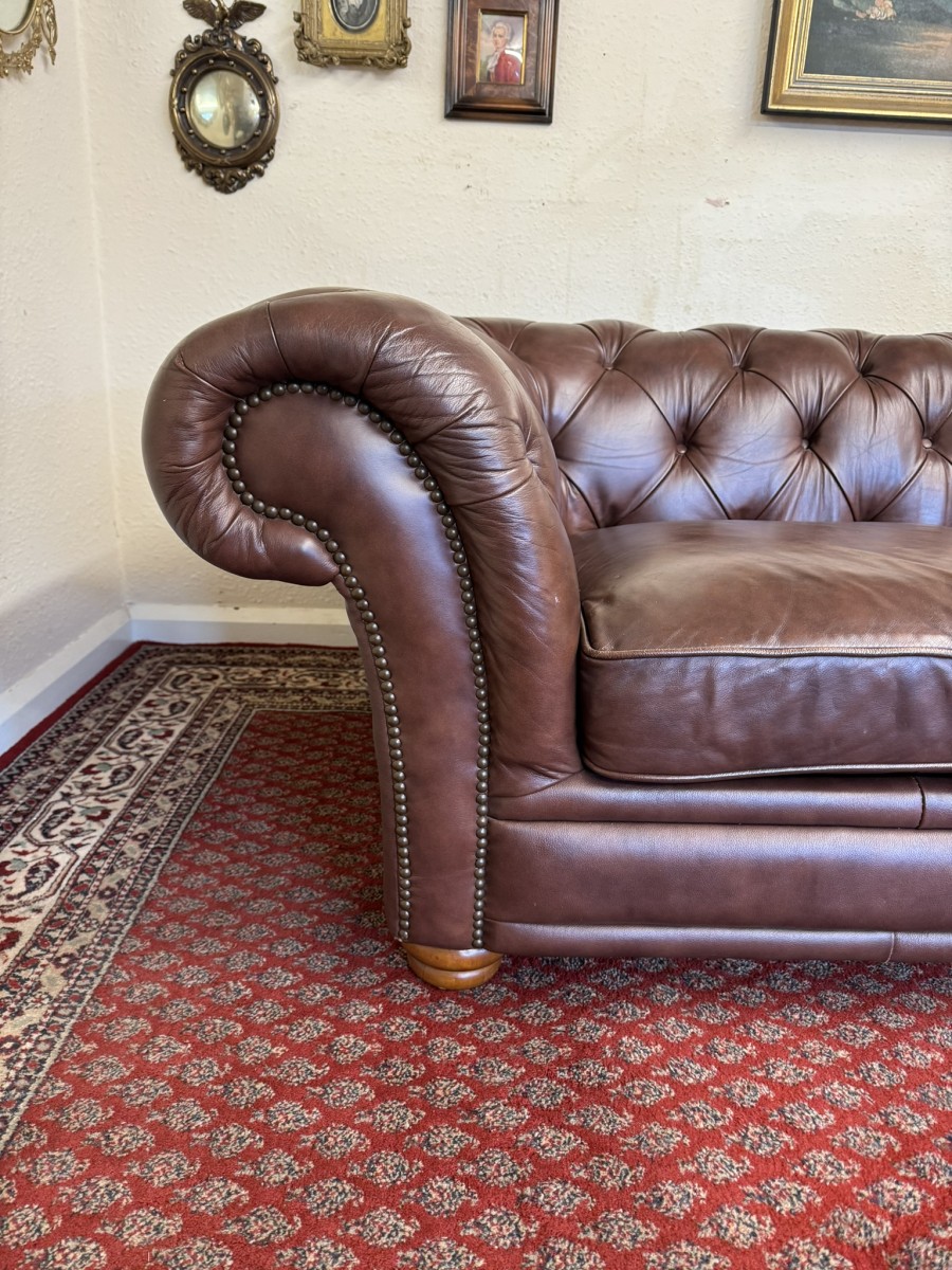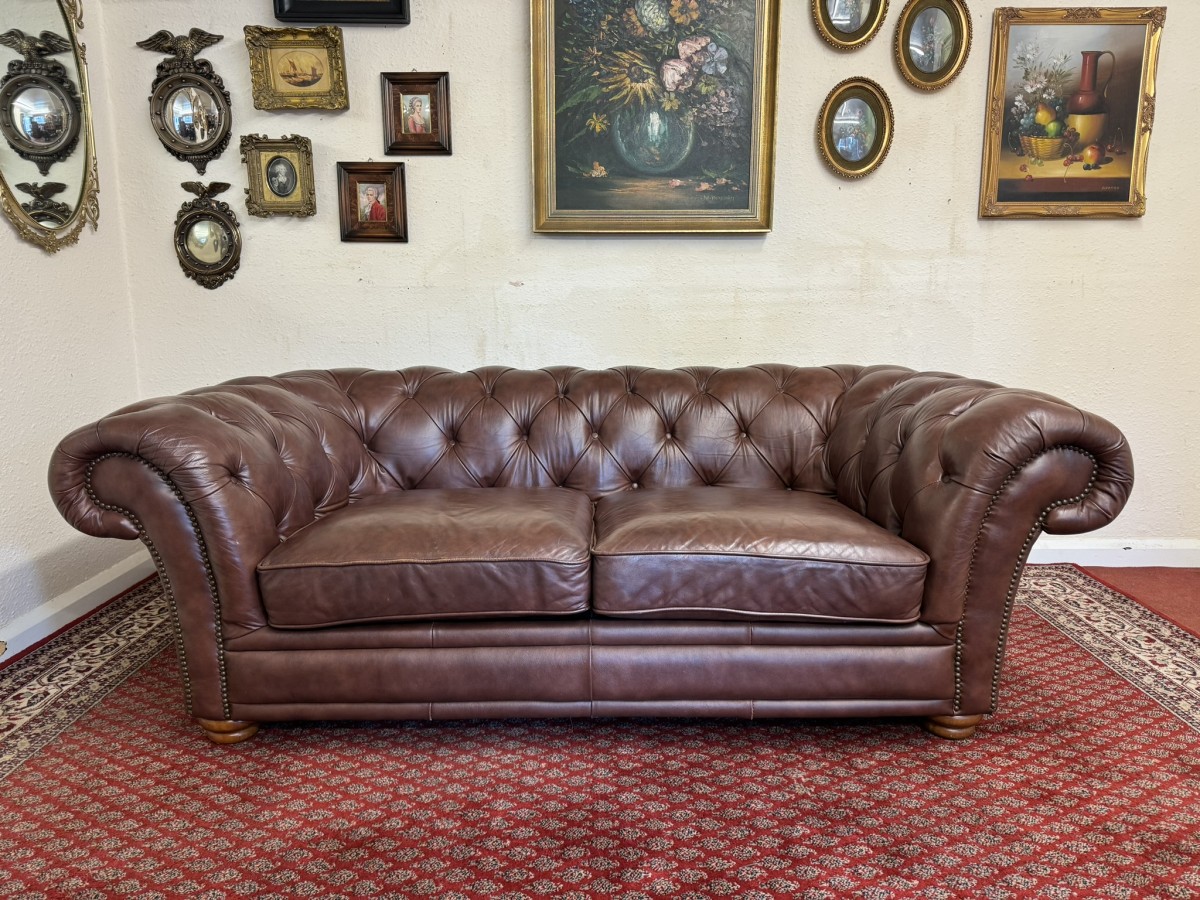 Fantastic Quality Deep Buttoned Brown Leather Chesterfield Settee