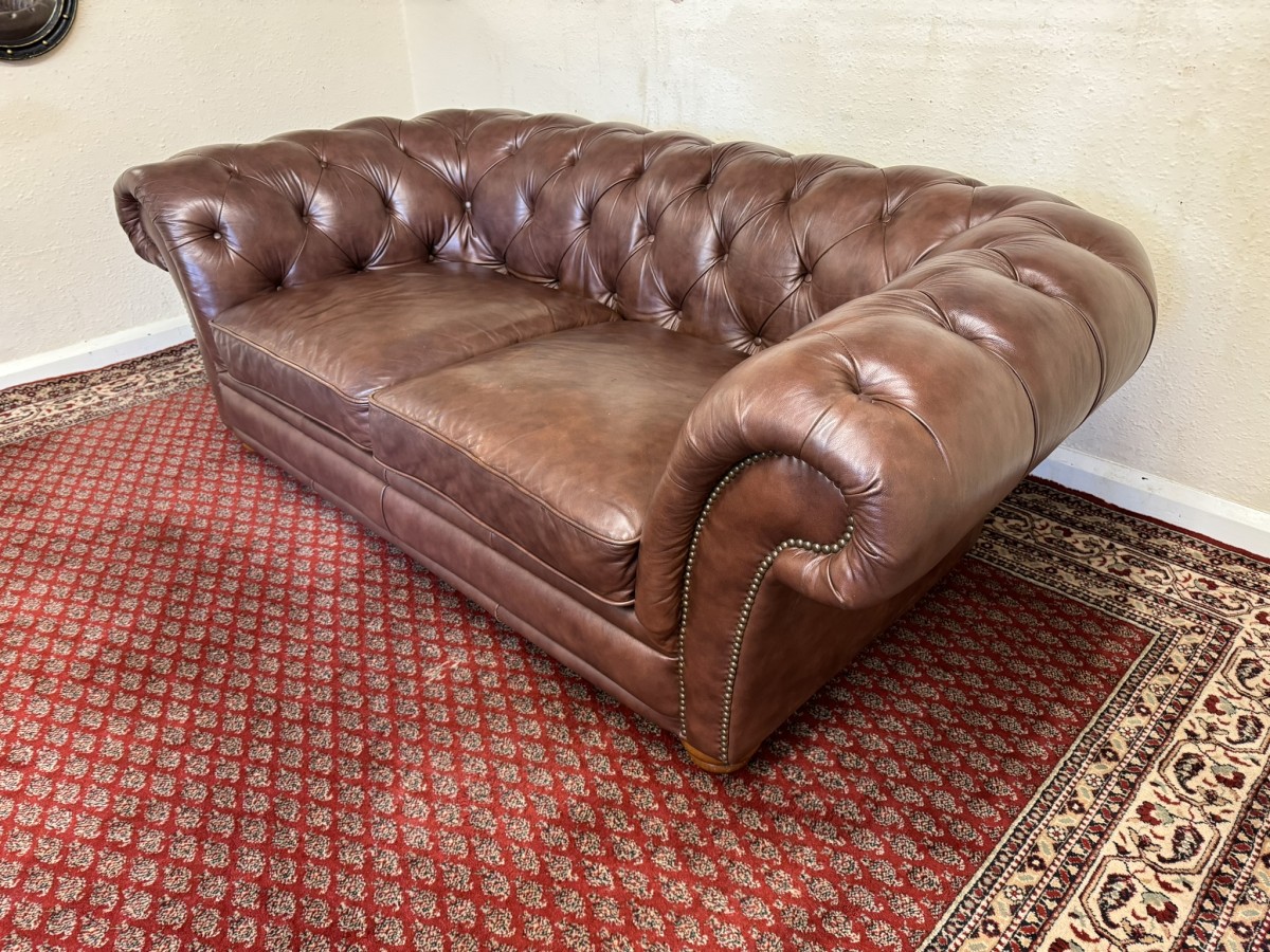 - Fantastic Quality Deep Buttoned Brown Leather Chesterfield Settee