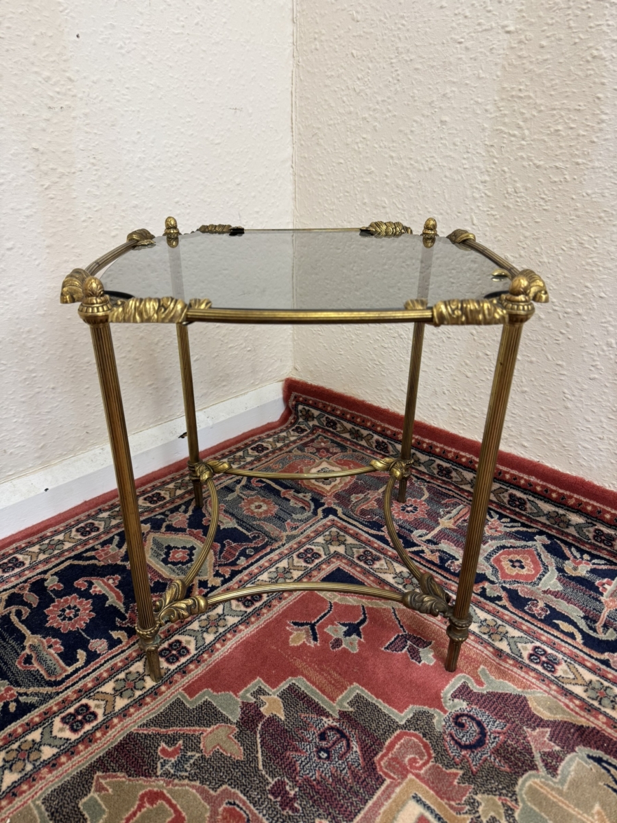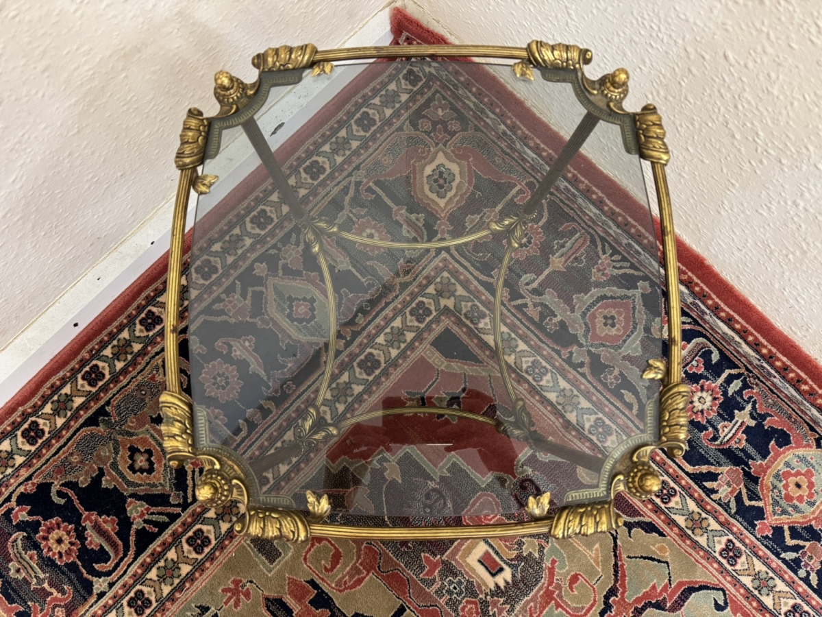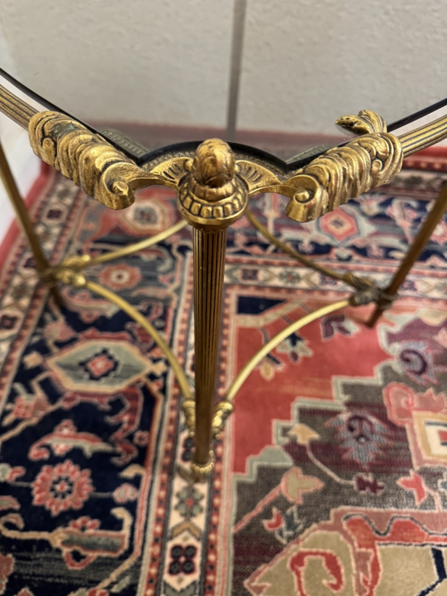 - FANTASTIC QUALITY FRENCH BRASS GLASS TOPPED ACCENT TABLE CIRCA 1930