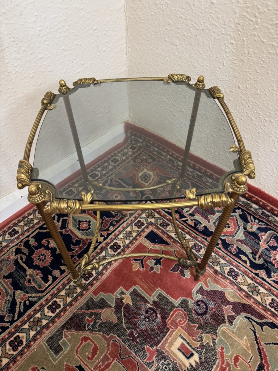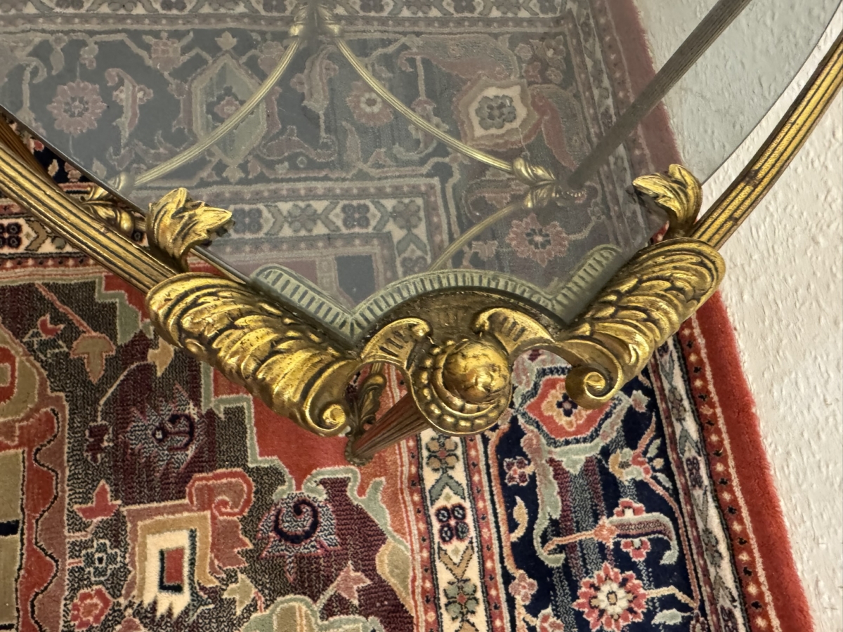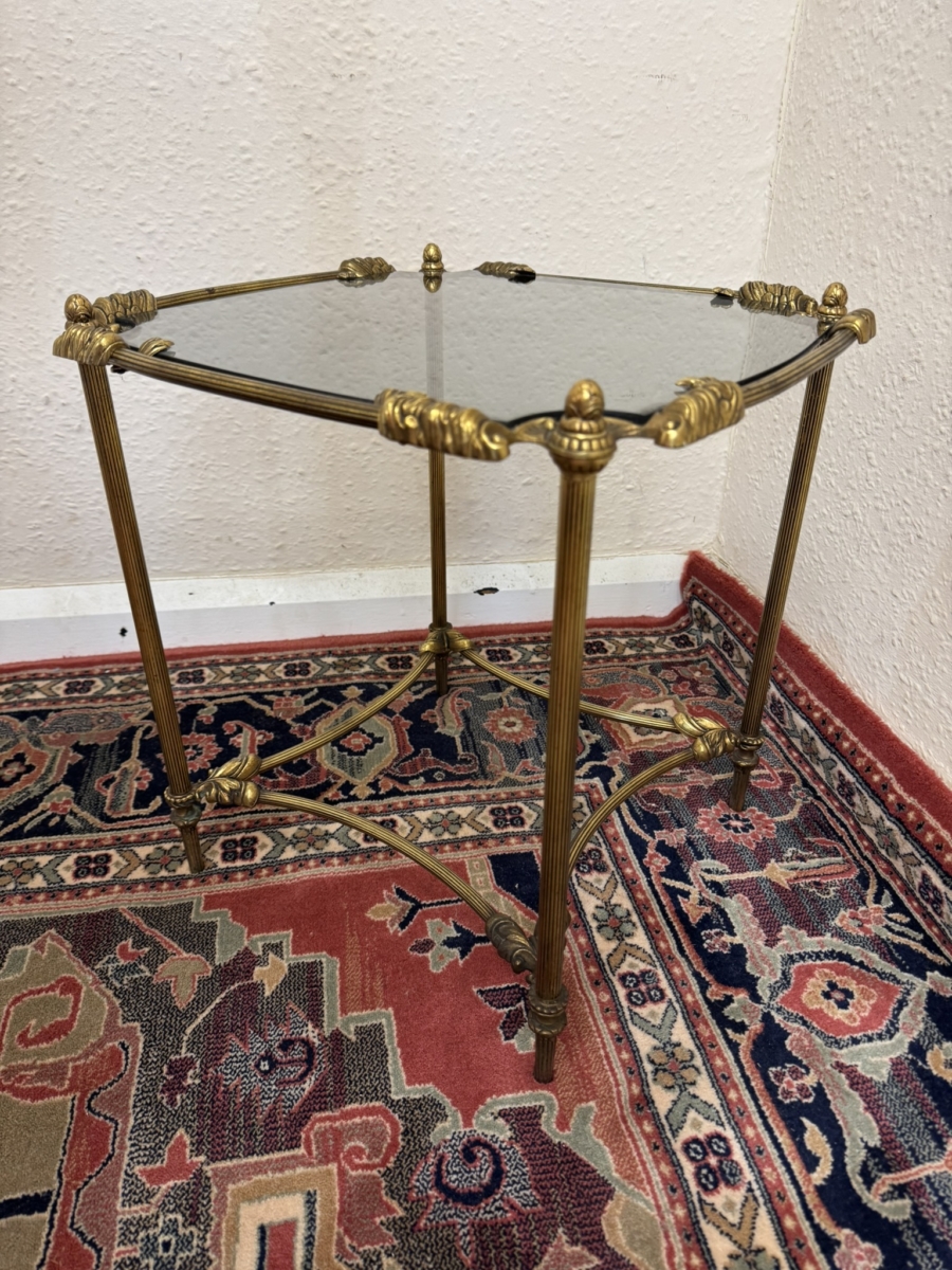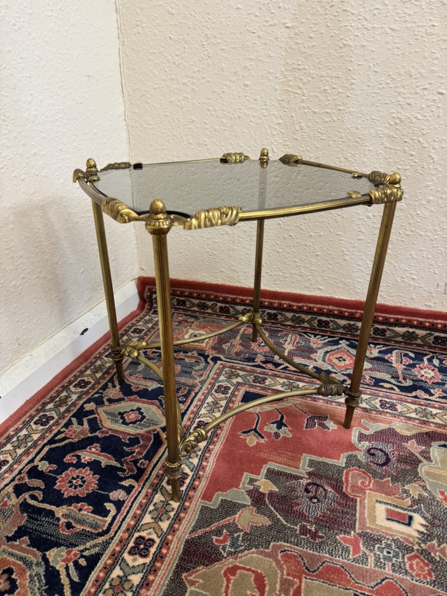 - FANTASTIC QUALITY FRENCH BRASS GLASS TOPPED ACCENT TABLE CIRCA 1930