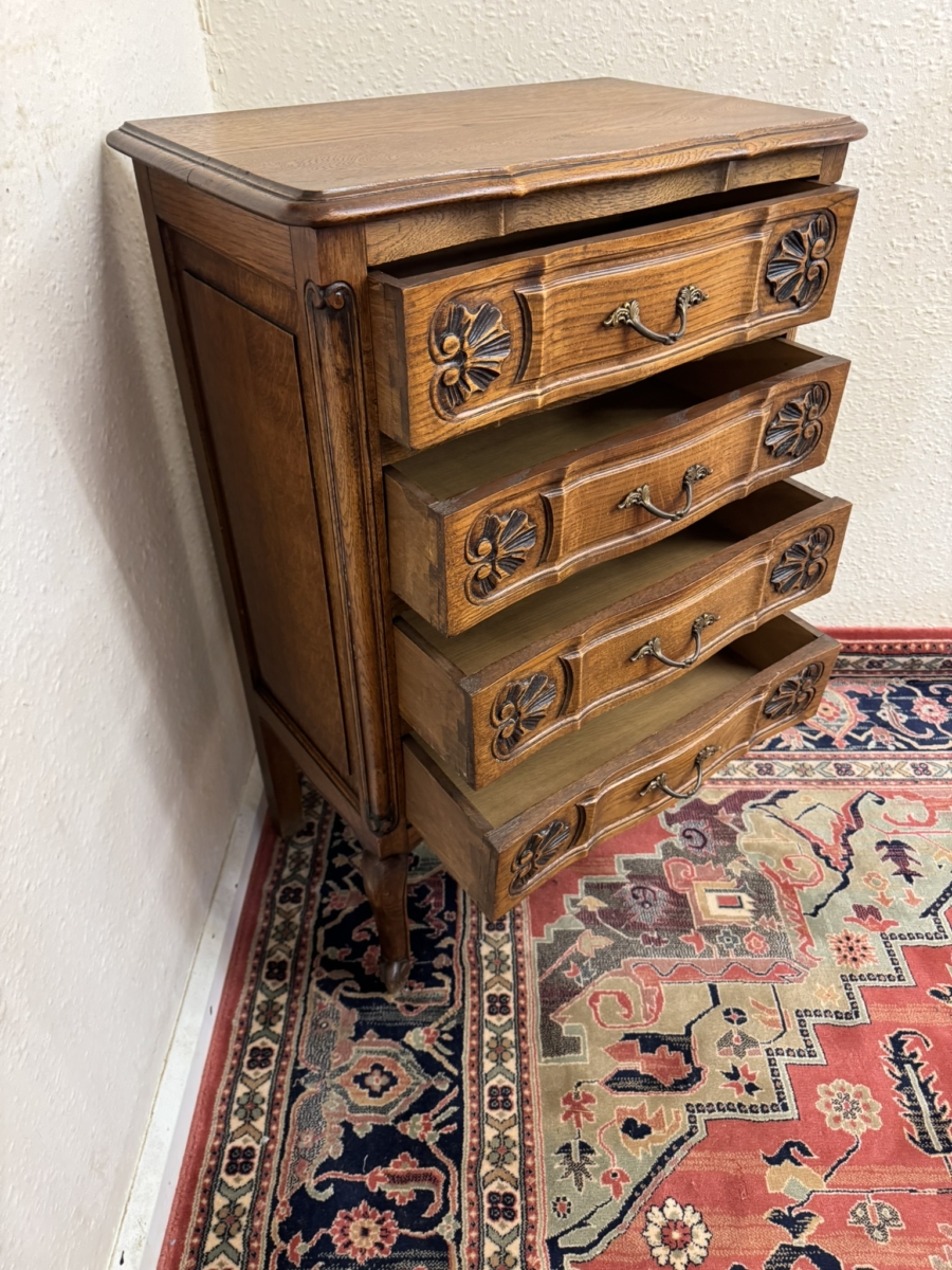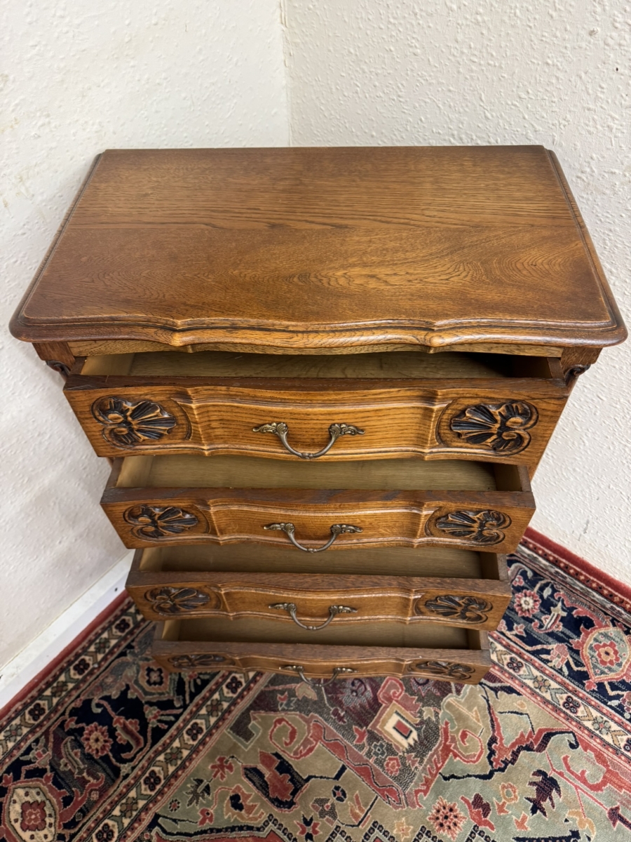 FANTASTIC QUALITY FRENCH CARVED OAK CHEST OF FOUR DRAWERS CIRCA 1930