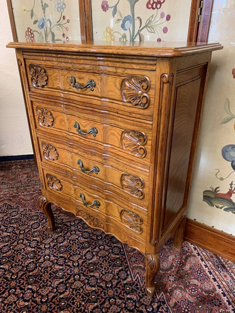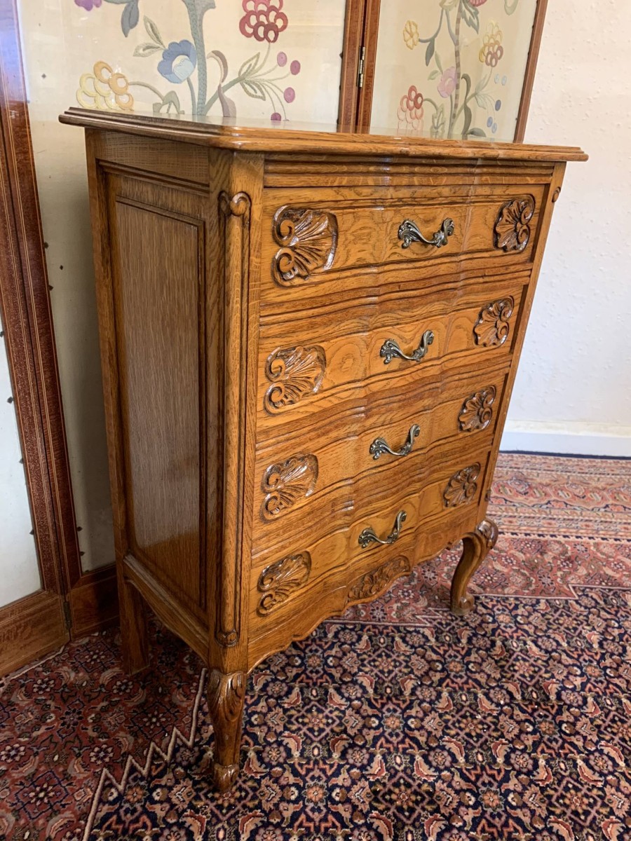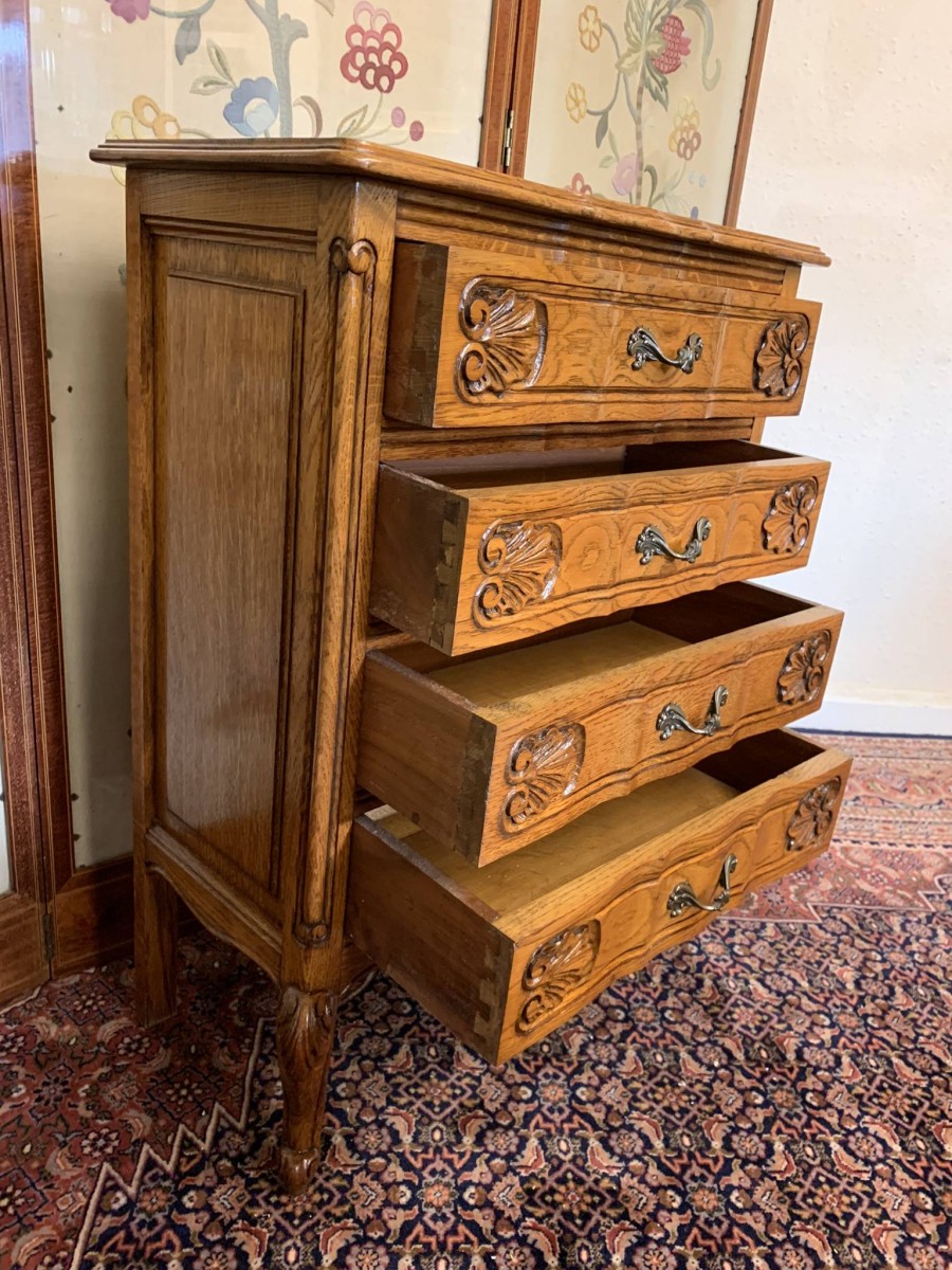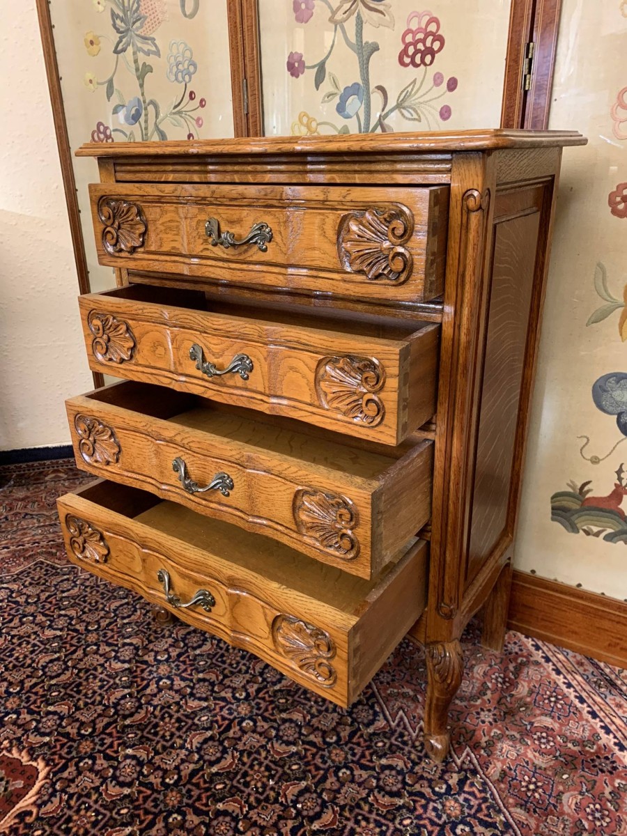 - Fantastic Quality French Carved Oak Neat Sized Chest Of Drawers – Now Sold