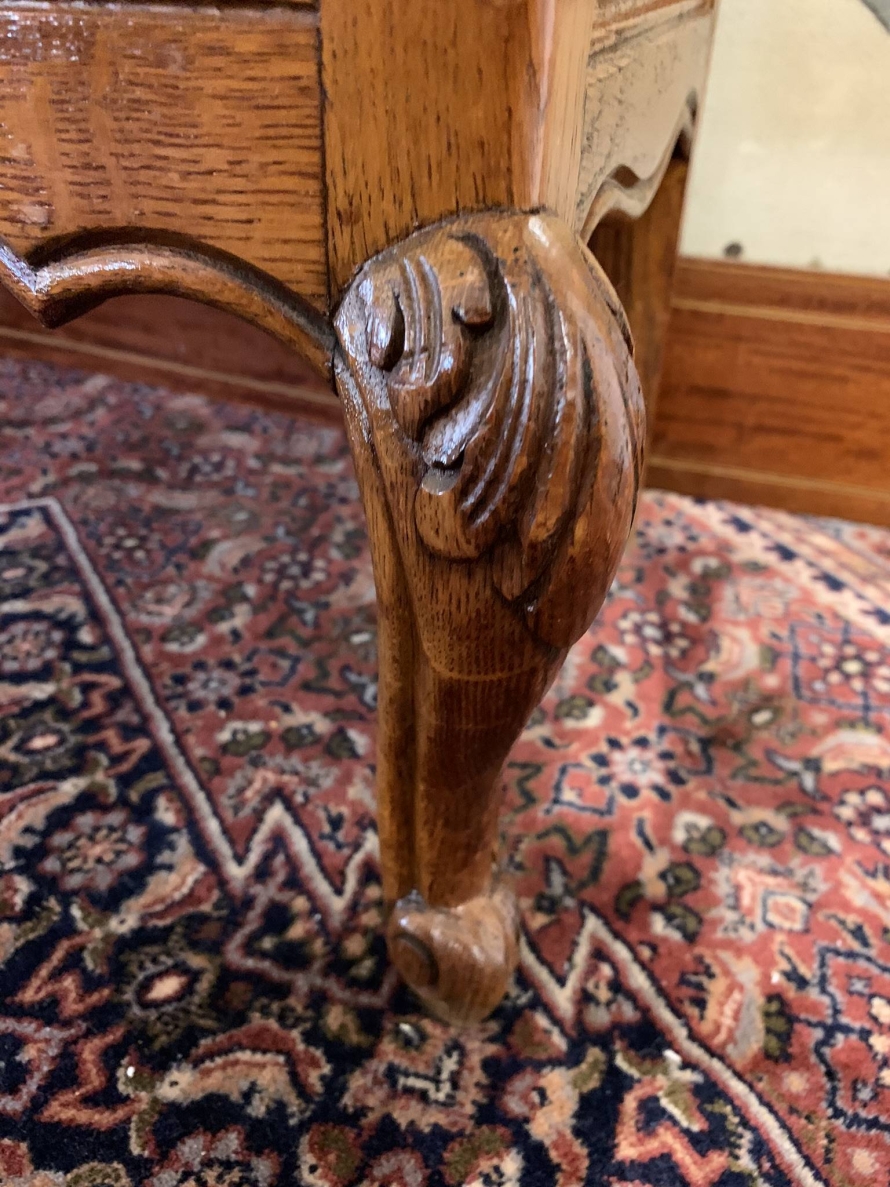 This fabulous chest is in excellent condition. The shaped oversailing top sits above four shaped drawers, each drawer having decorative carvings and ornate brass handle. Recessed panelled sides shaped skirt with decorative central carving this fabulous chest stands on two carved cabriole shaped legs to the front.
