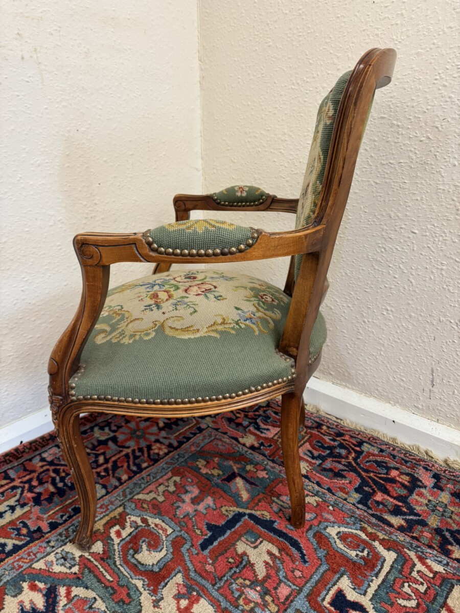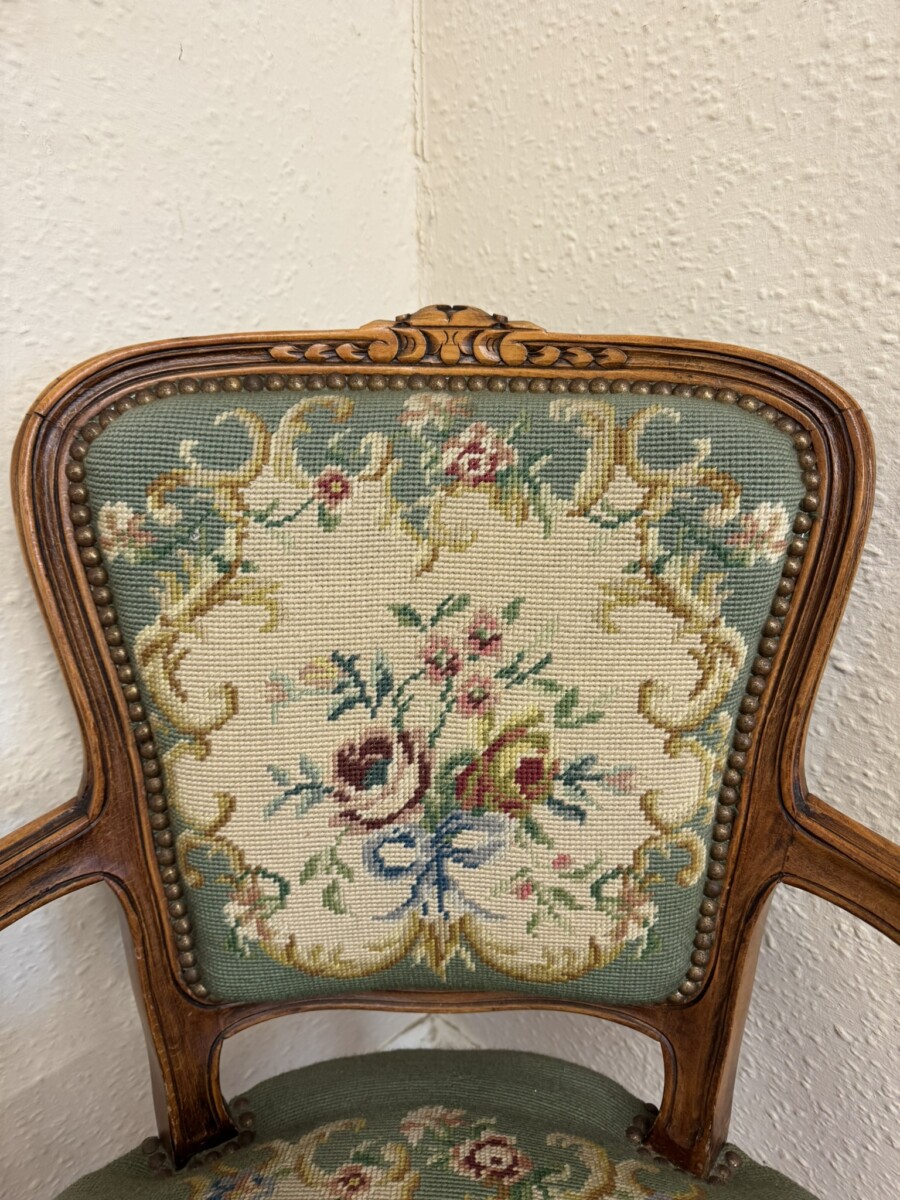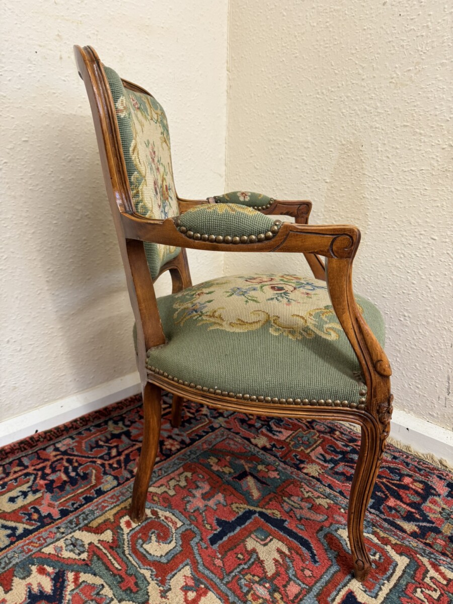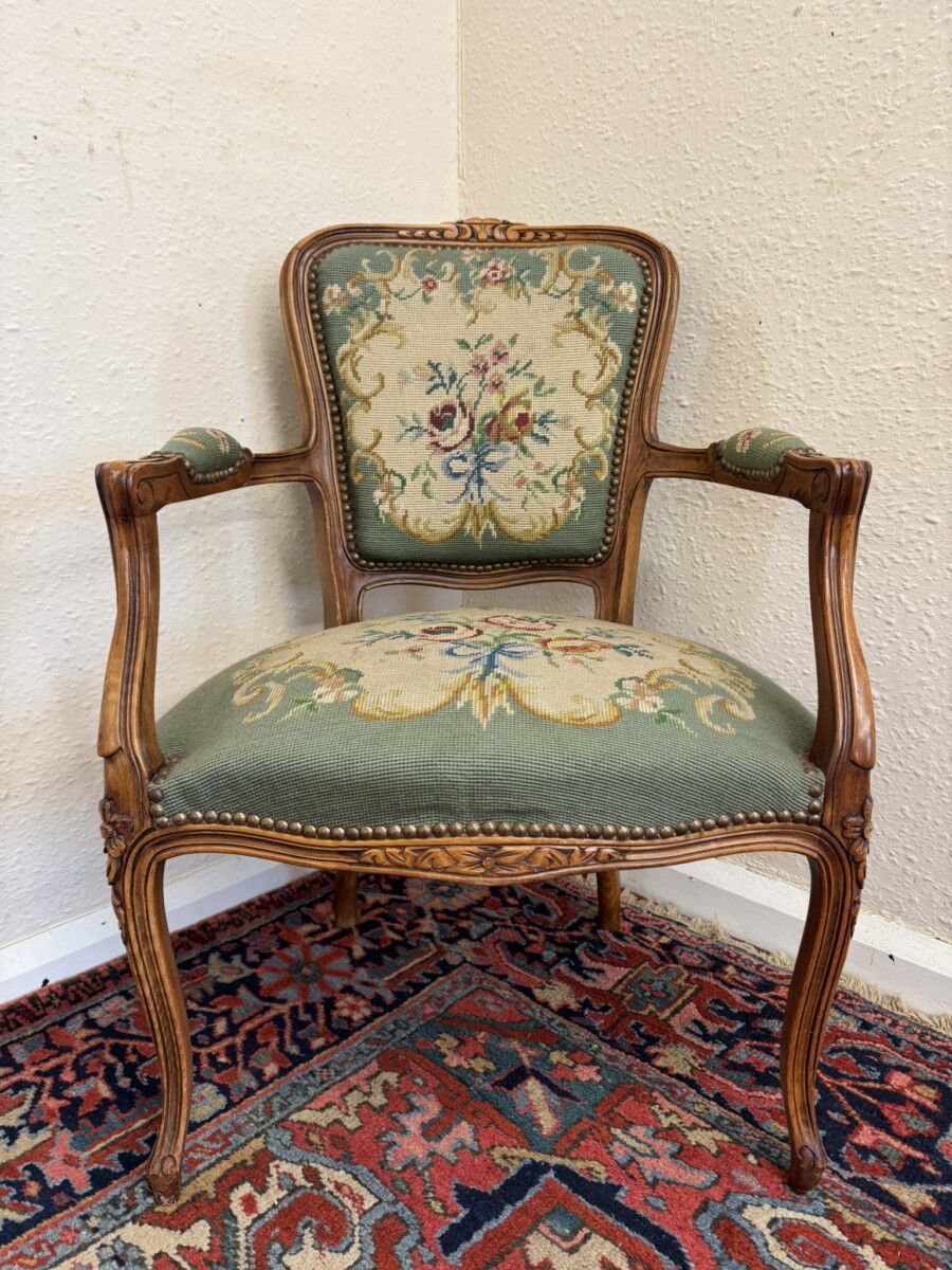 - FANTASTIC QUALITY FRENCH CARVED OAK NEEDLEPOINT ACCENT CHAIR