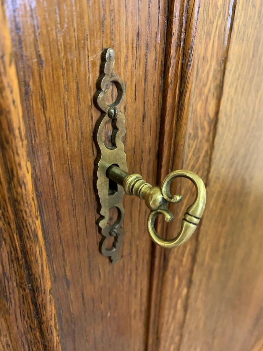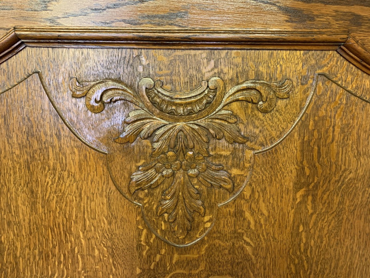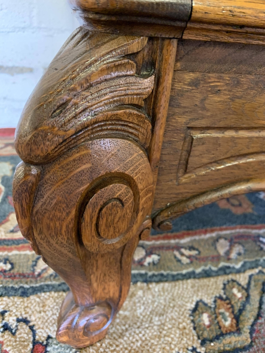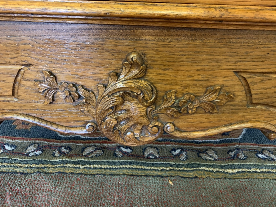 A fine armoire which is in excellent condition. The shaped top sits above a carved recessed panelled lockable door. The door opens to reveal a hanging rail, three removable shelves and long drawer, the drawer having to pull handles. Recessed panelled sides, shaped skirt with fine decorative central carving, this beautiful armoire stands on two shaped carved cabriole legs to the front. Please note this wardrobe splits down for easy transportation and delivery into any home.