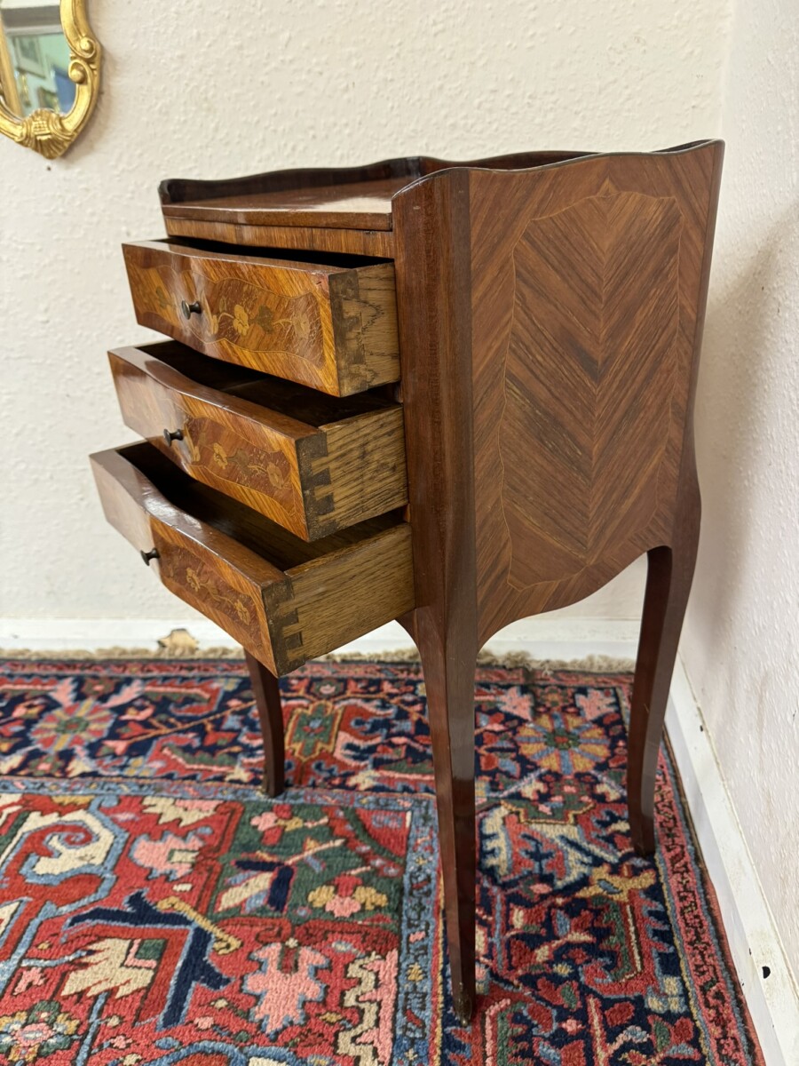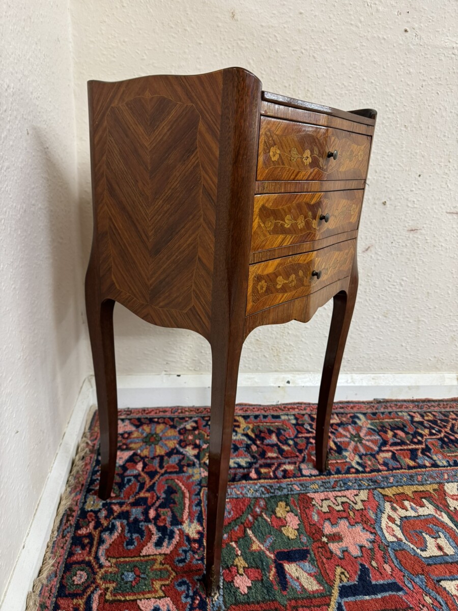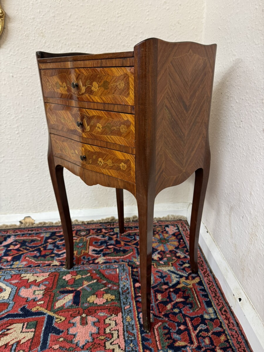 - FANTASTIC QUALITY FRENCH KINGWOOD INLAID THREE DRAWERS CHEST/BEDSIDE