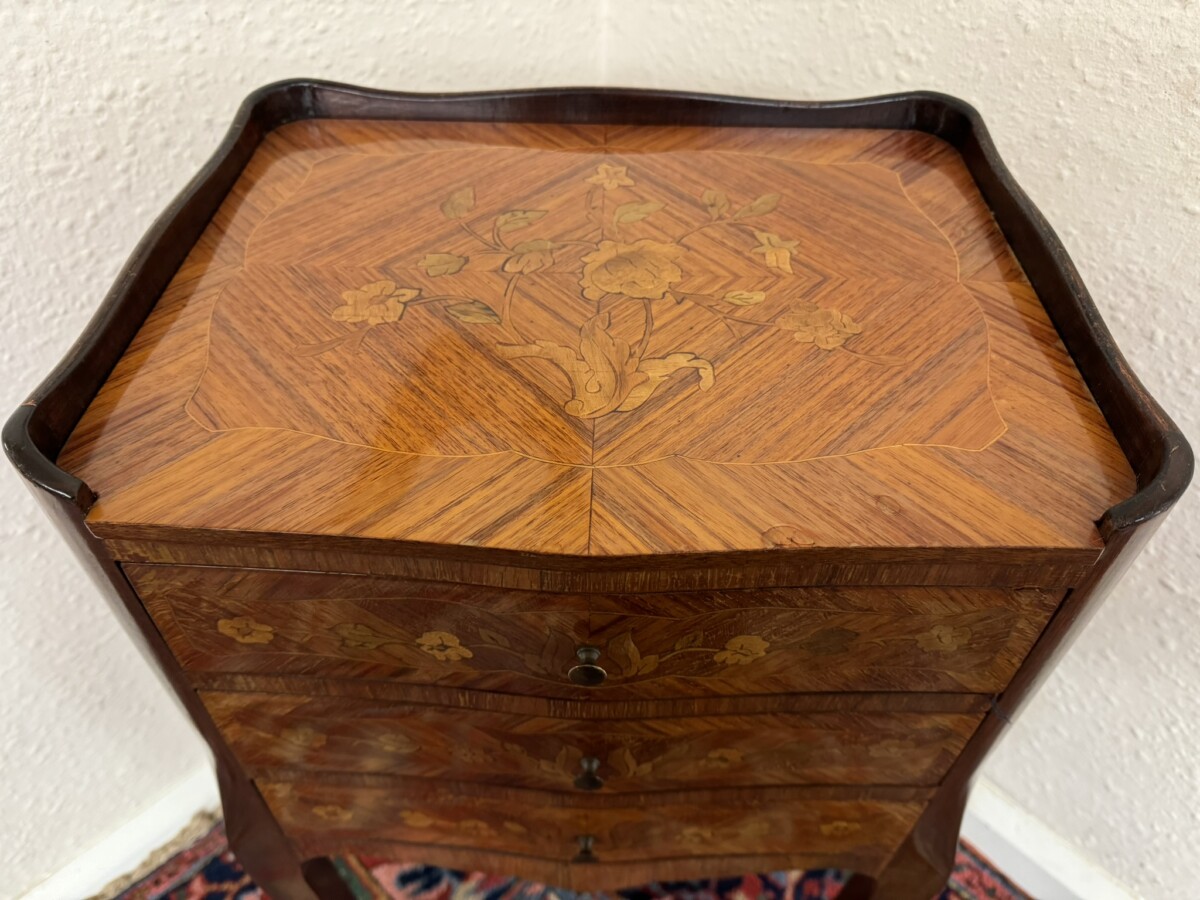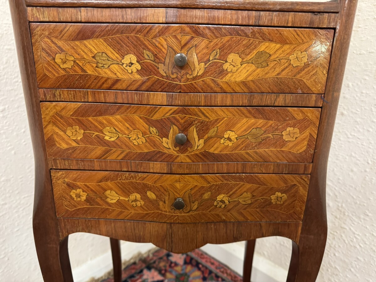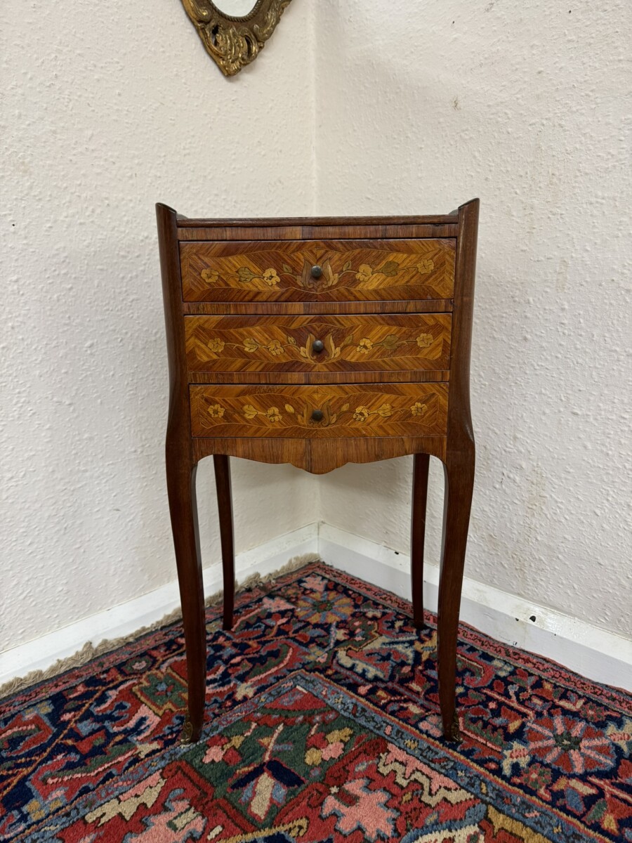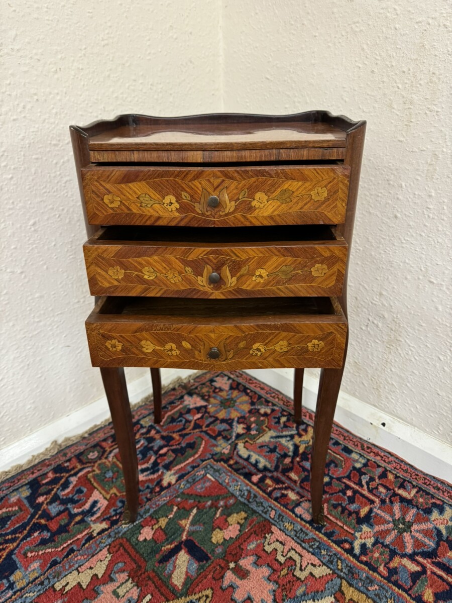 - FANTASTIC QUALITY FRENCH KINGWOOD INLAID THREE DRAWERS CHEST/BEDSIDE