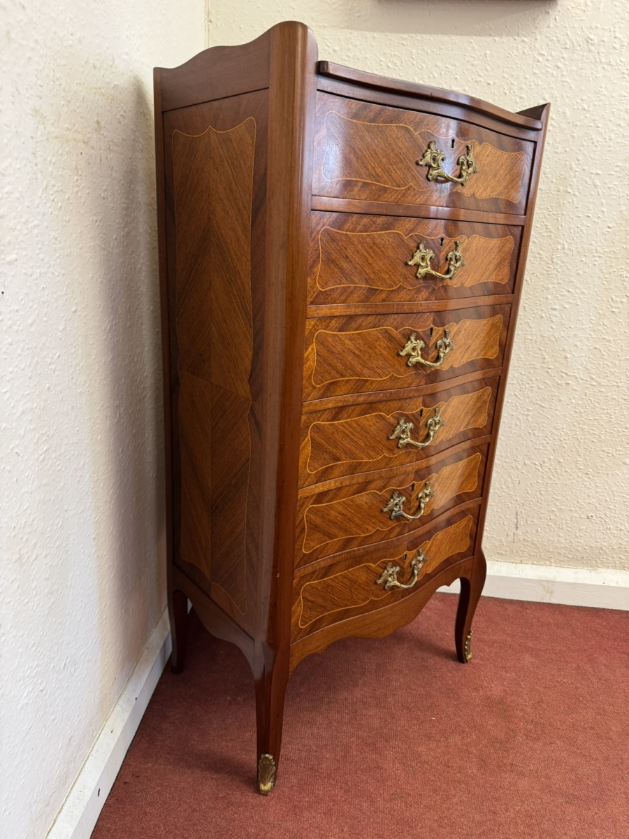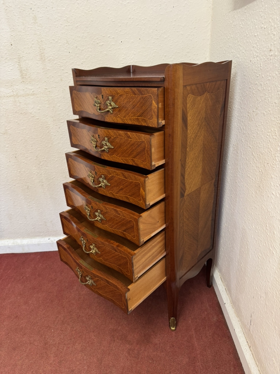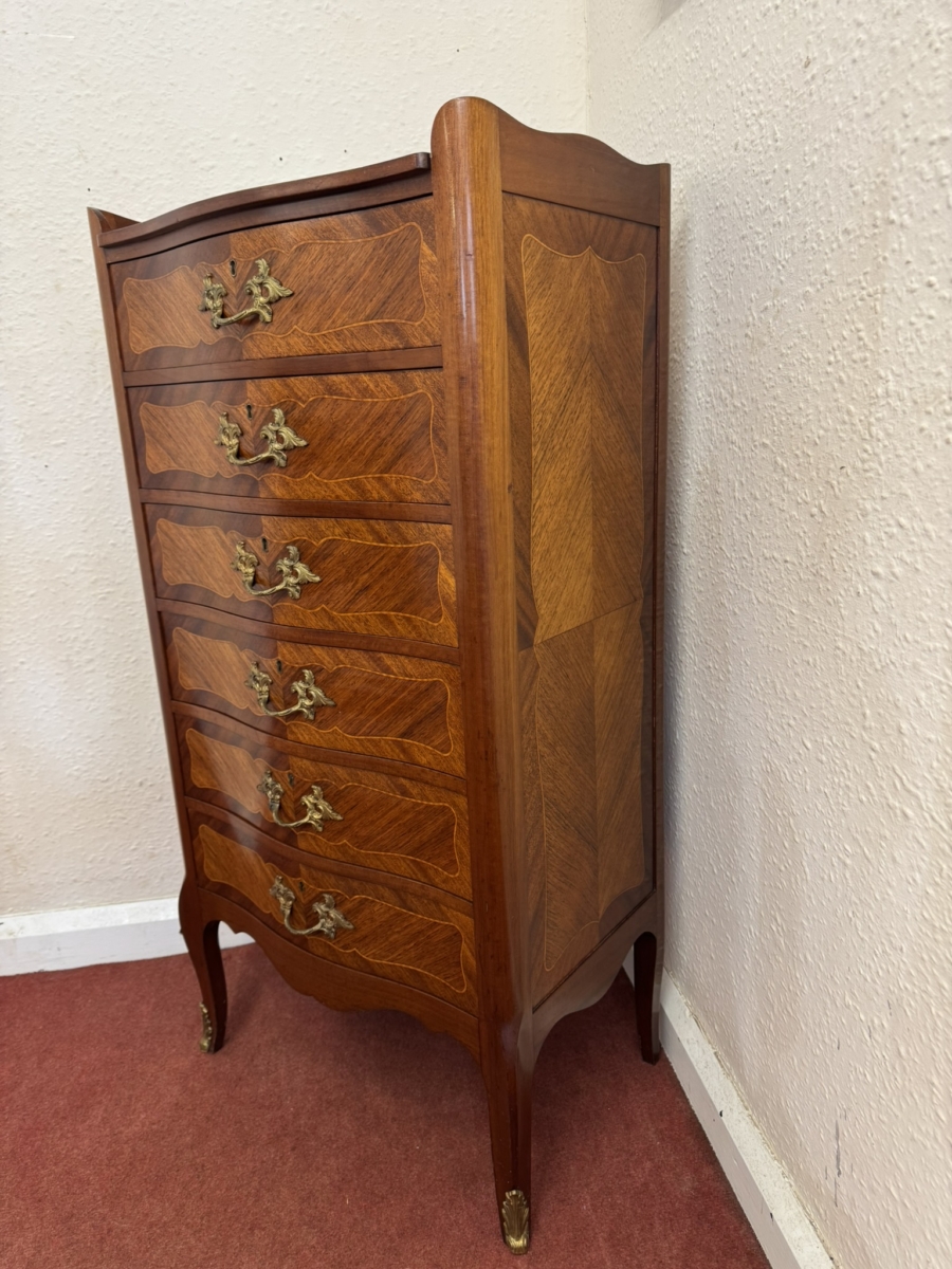 - FANTASTIC QUALITY FRENCH KINGWOOD SHAPED CHEST OF SIX DRAWERS
