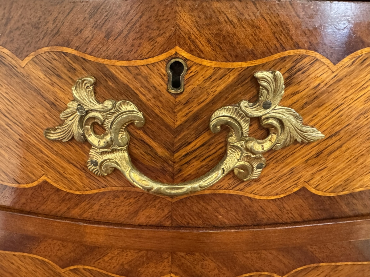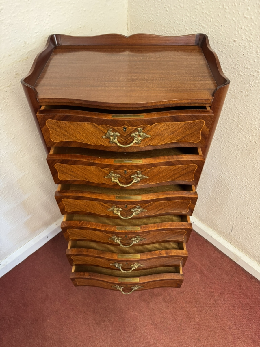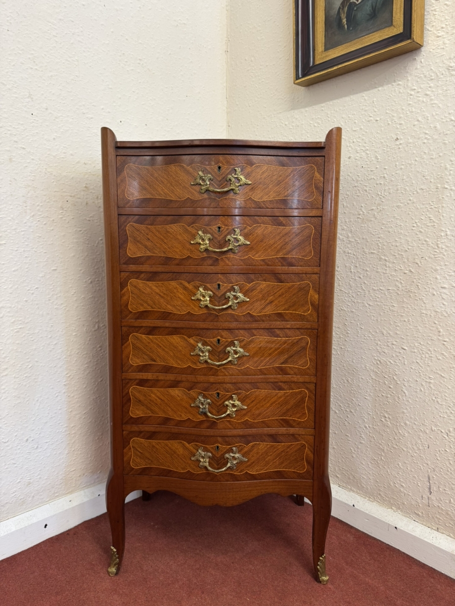 - FANTASTIC QUALITY FRENCH KINGWOOD SHAPED CHEST OF SIX DRAWERS