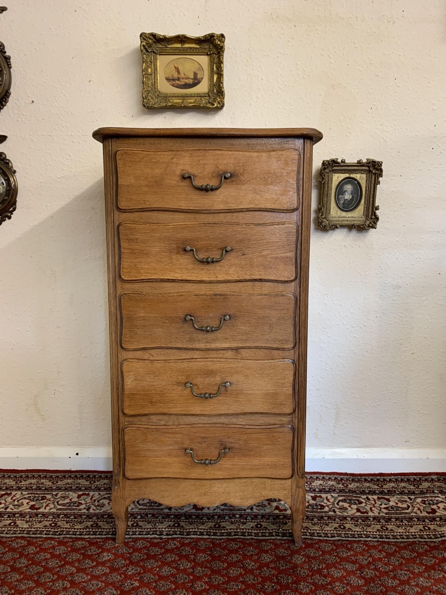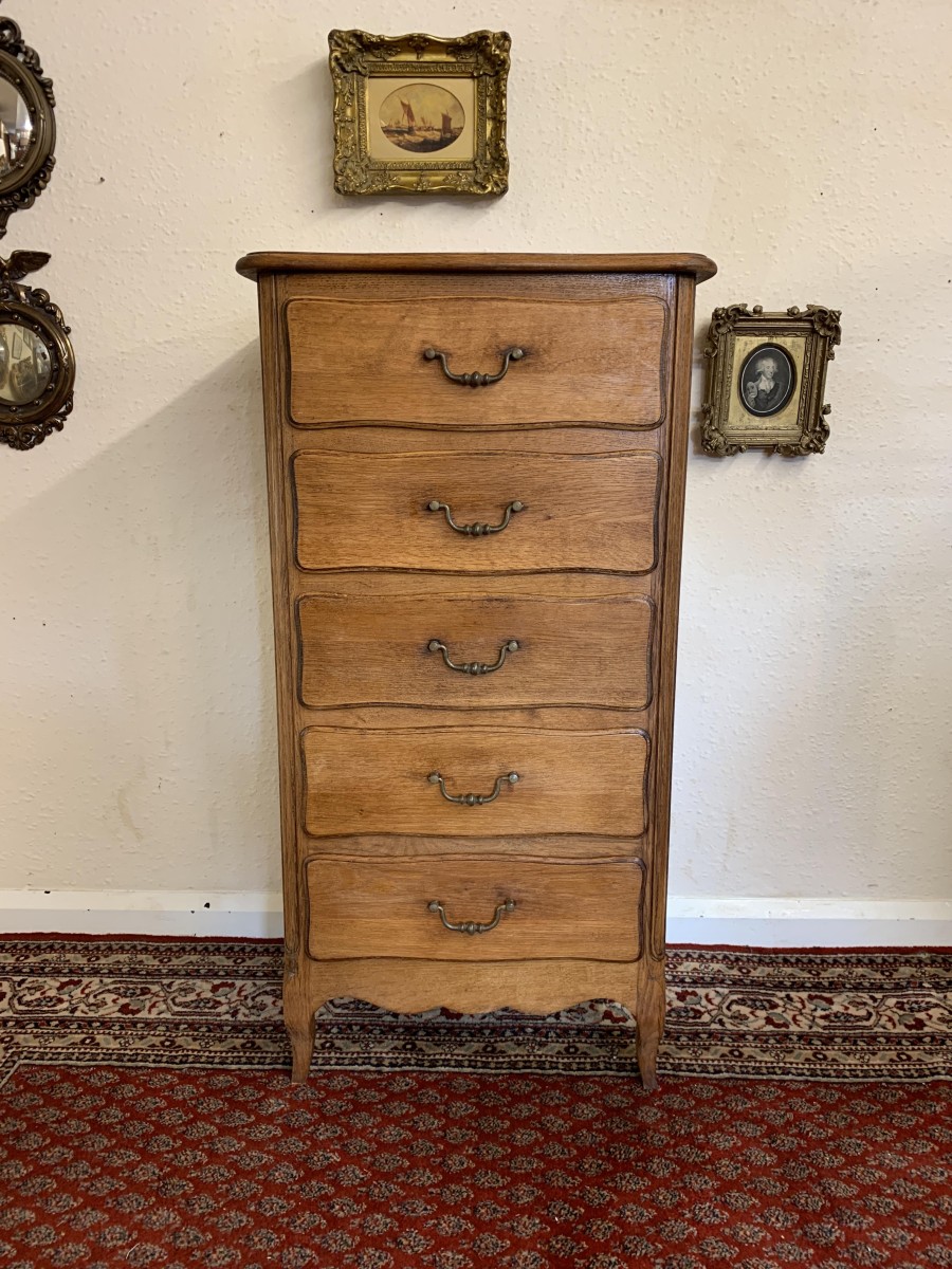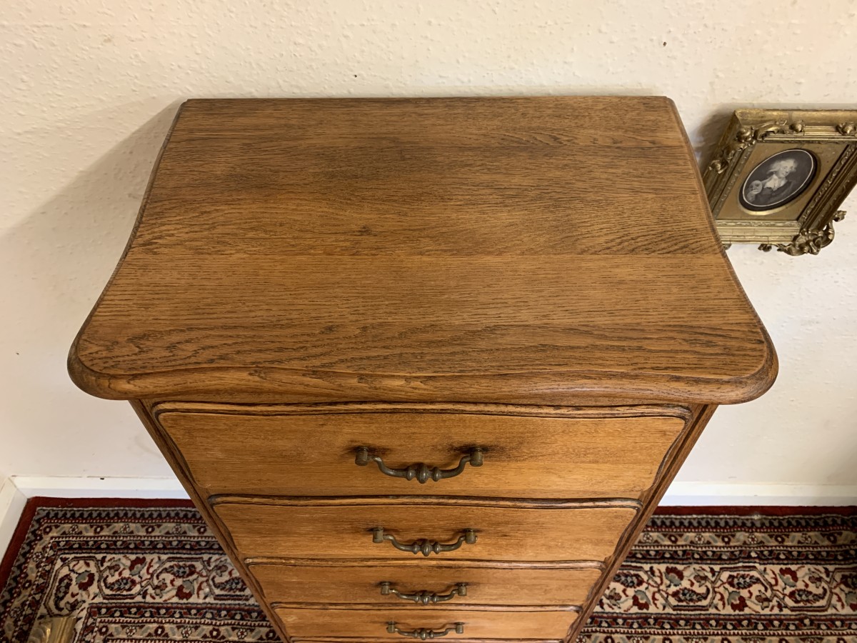 - Fantastic Quality French Oak Tall Chest Of Five Drawers