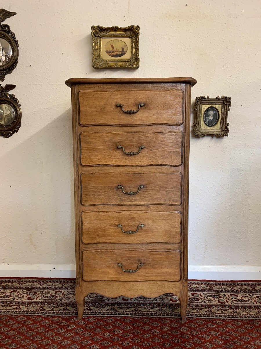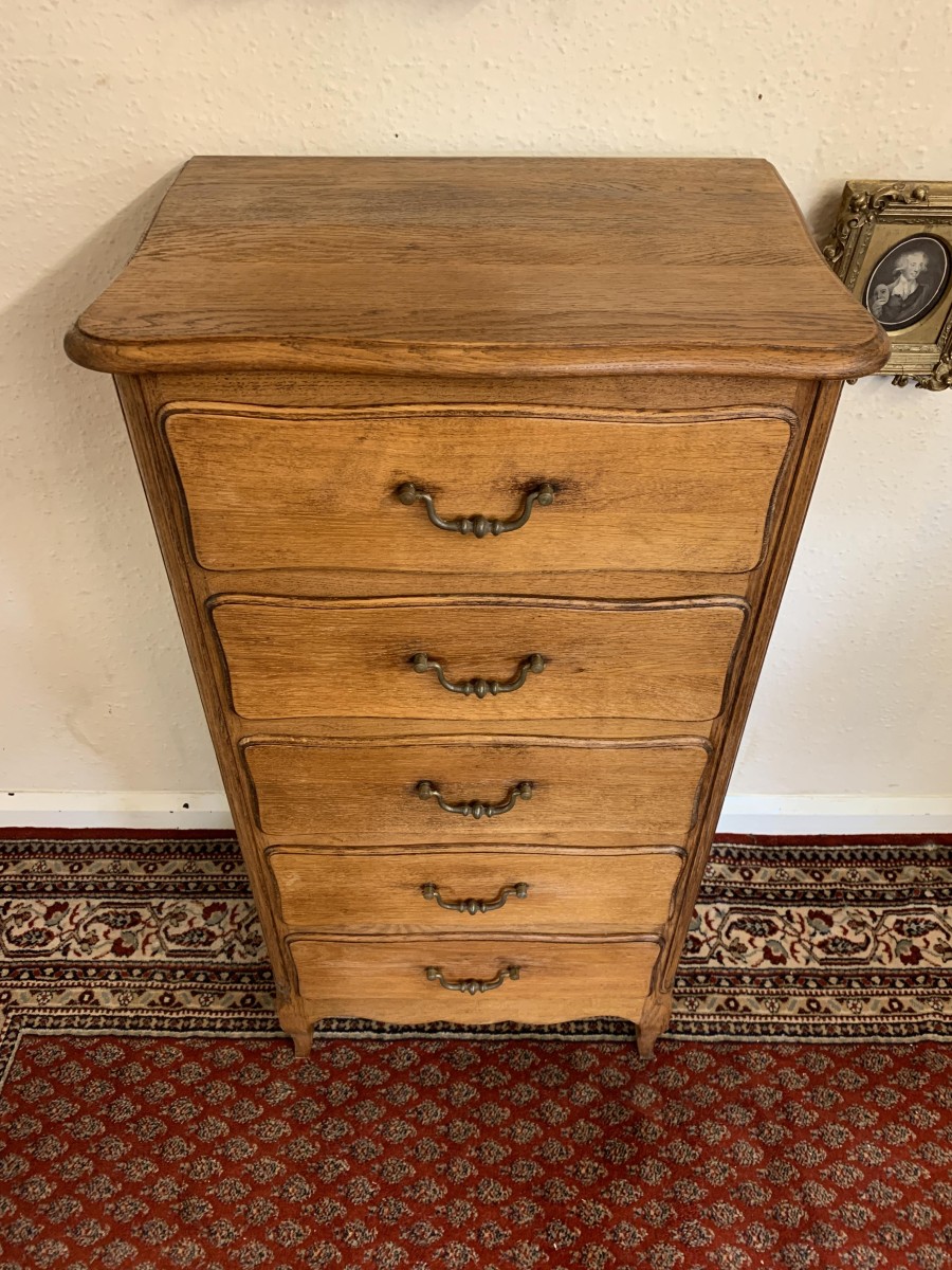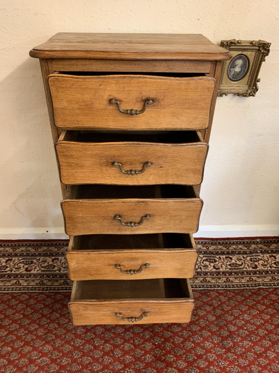 - Fantastic Quality French Oak Tall Chest Of Five Drawers