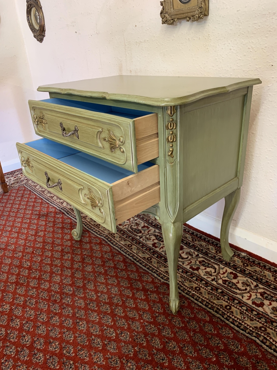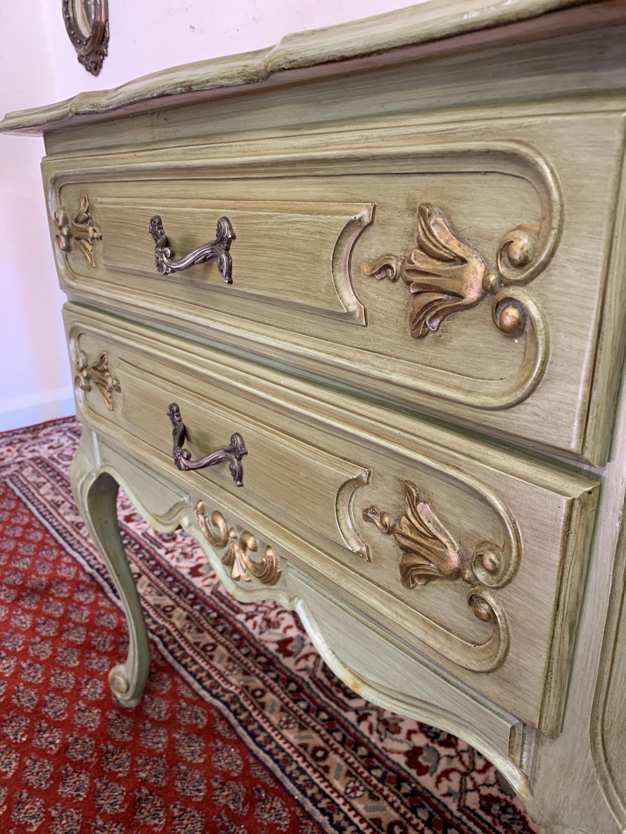 Fantastic Quality French Olive Green Painted Shaped Chest Of Two Drawers