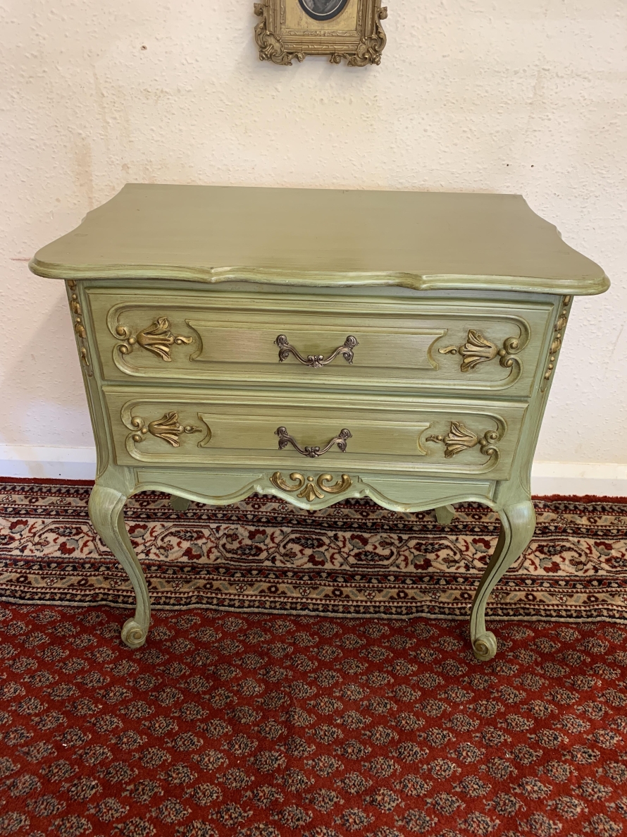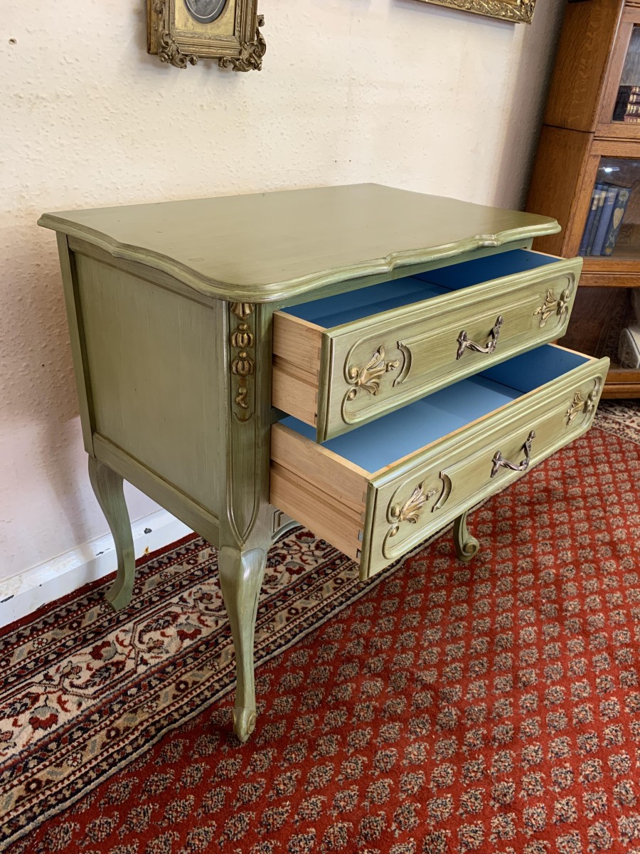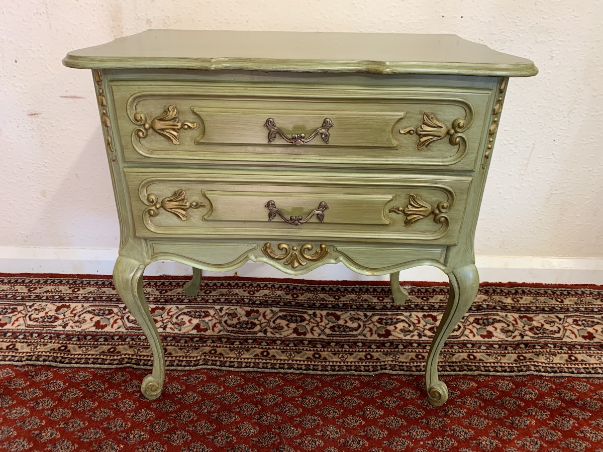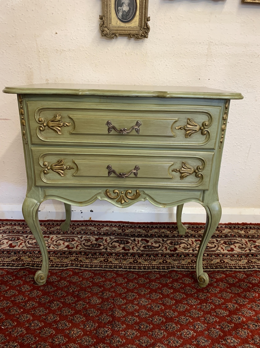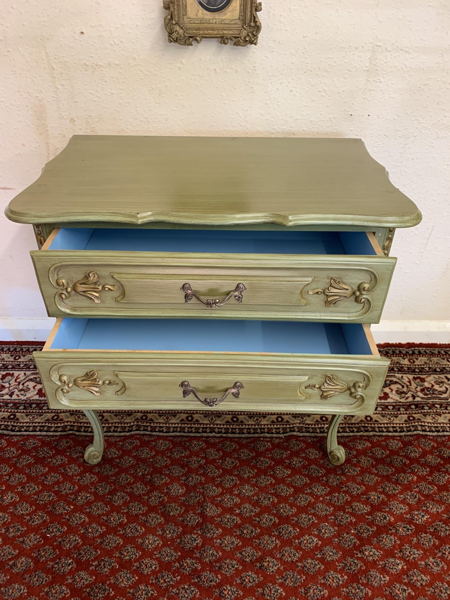- Fantastic Quality French Olive Green Painted Shaped Chest Of Two Drawers