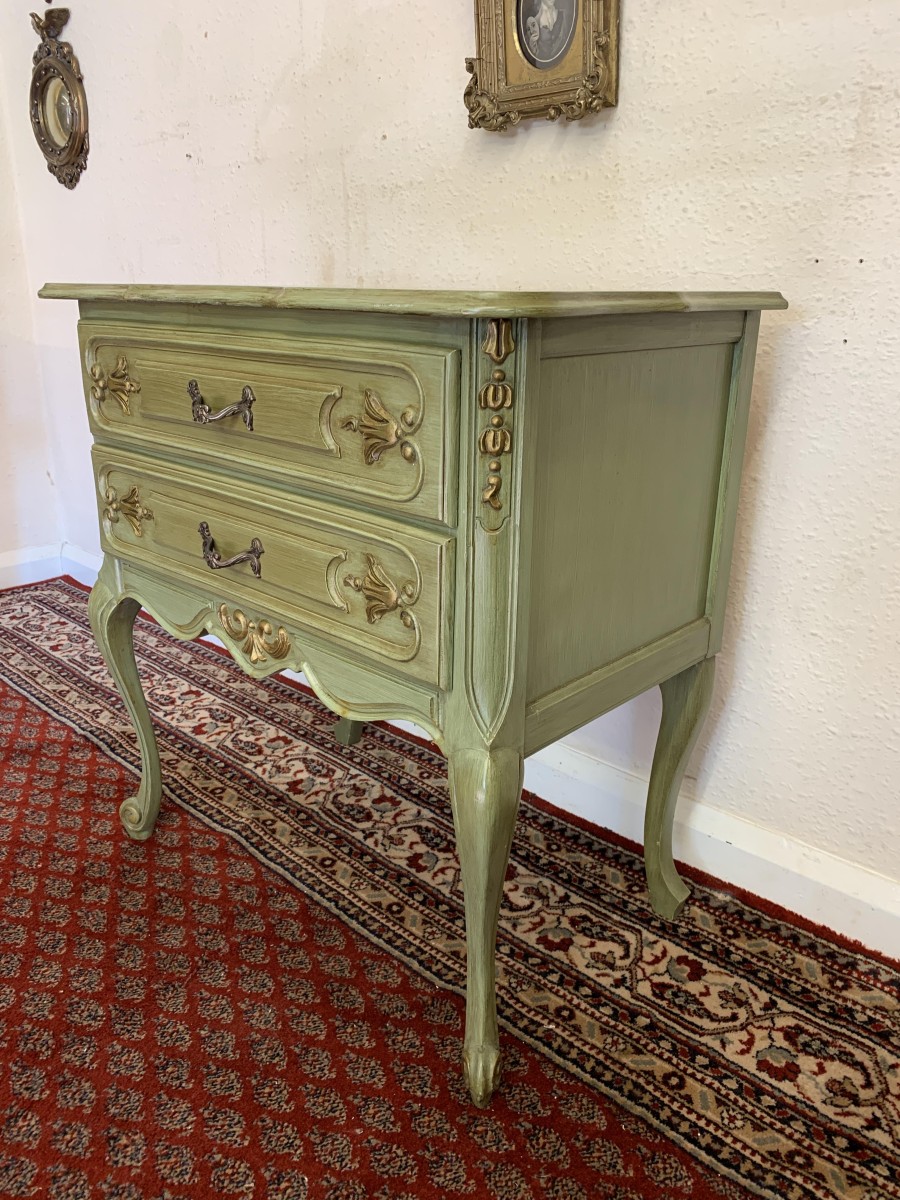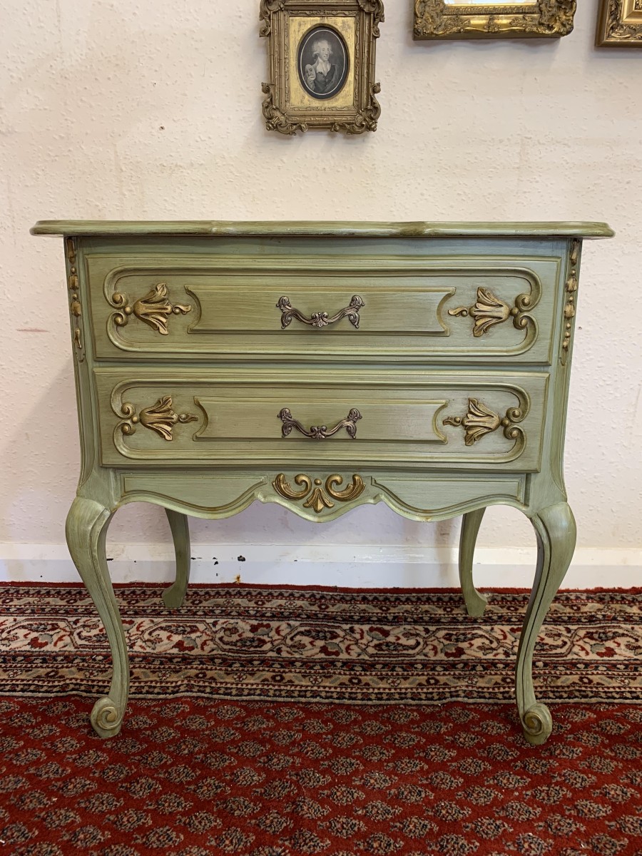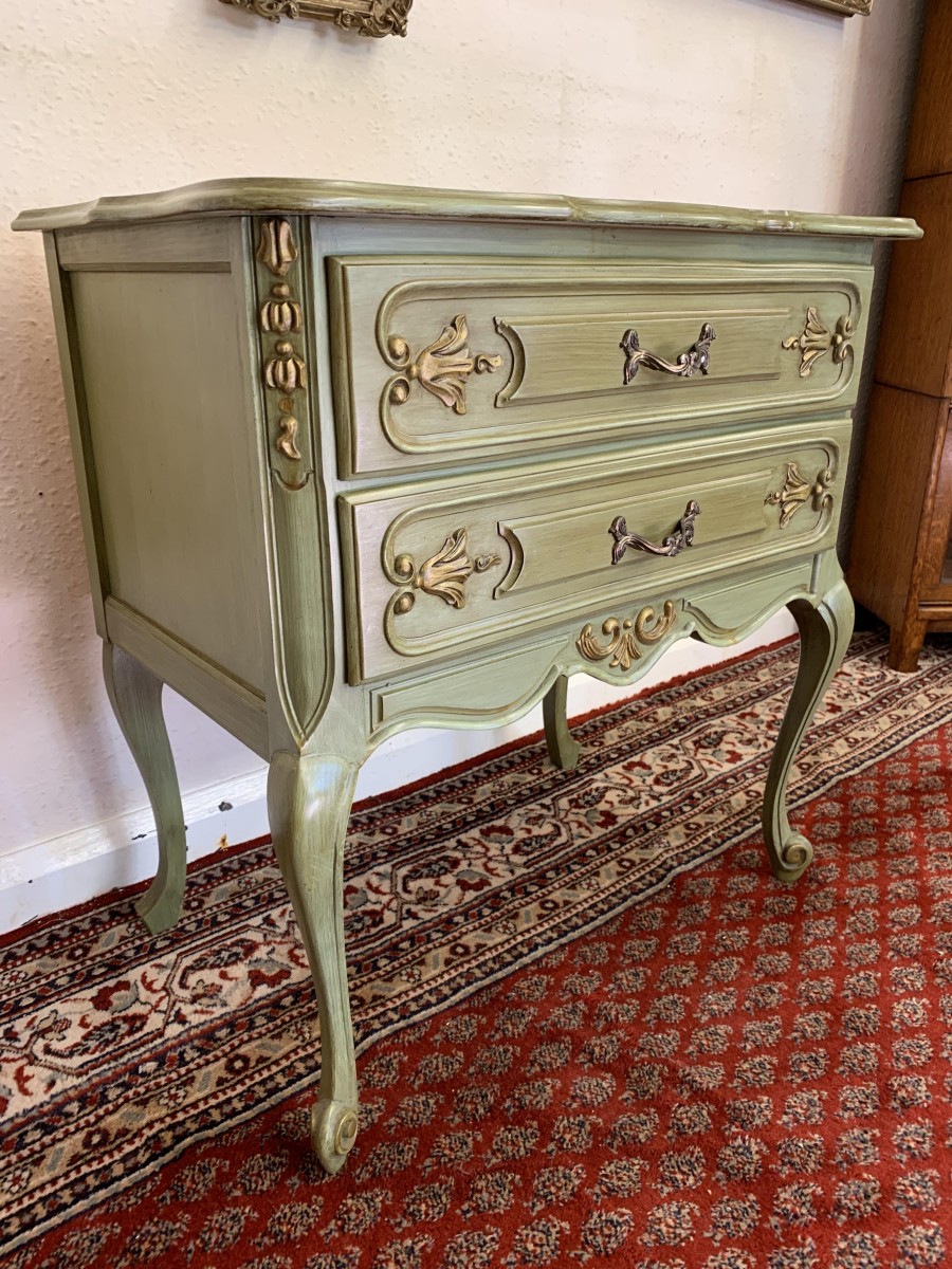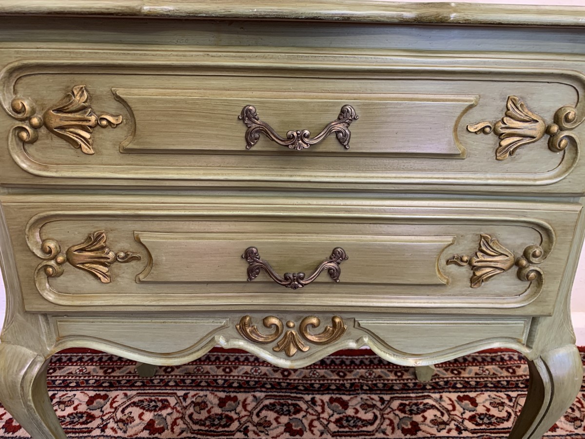 - Fantastic Quality French Olive Green Painted Shaped Chest Of Two Drawers