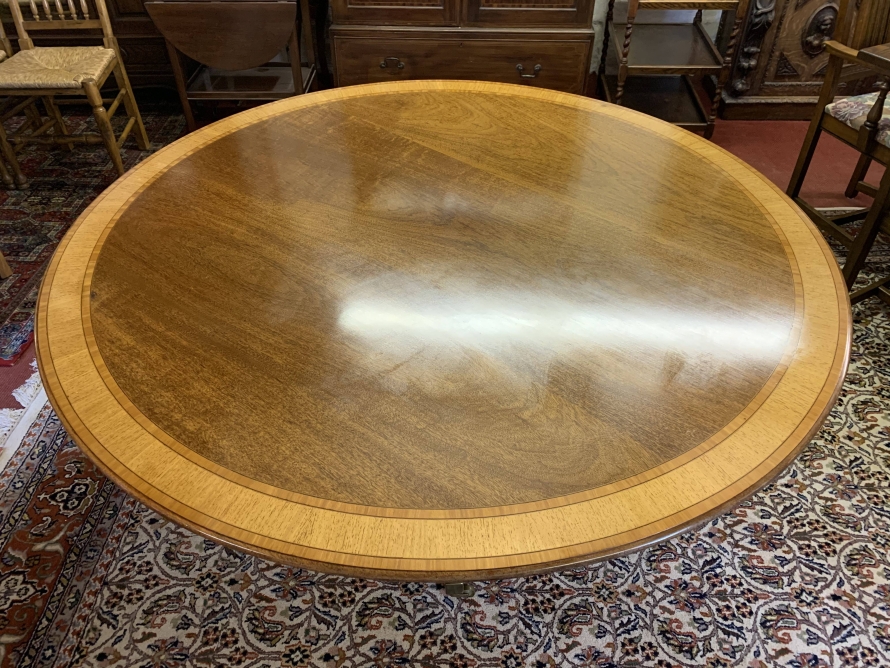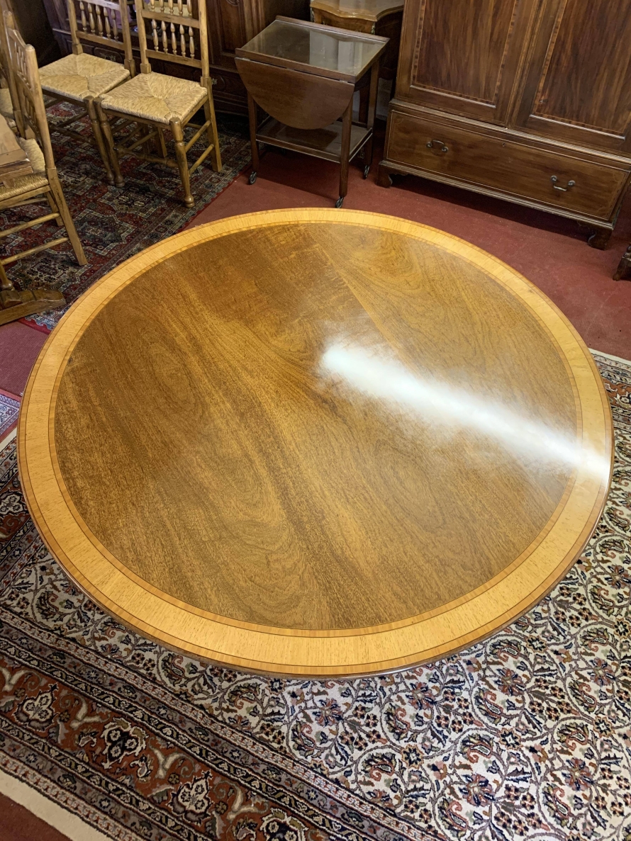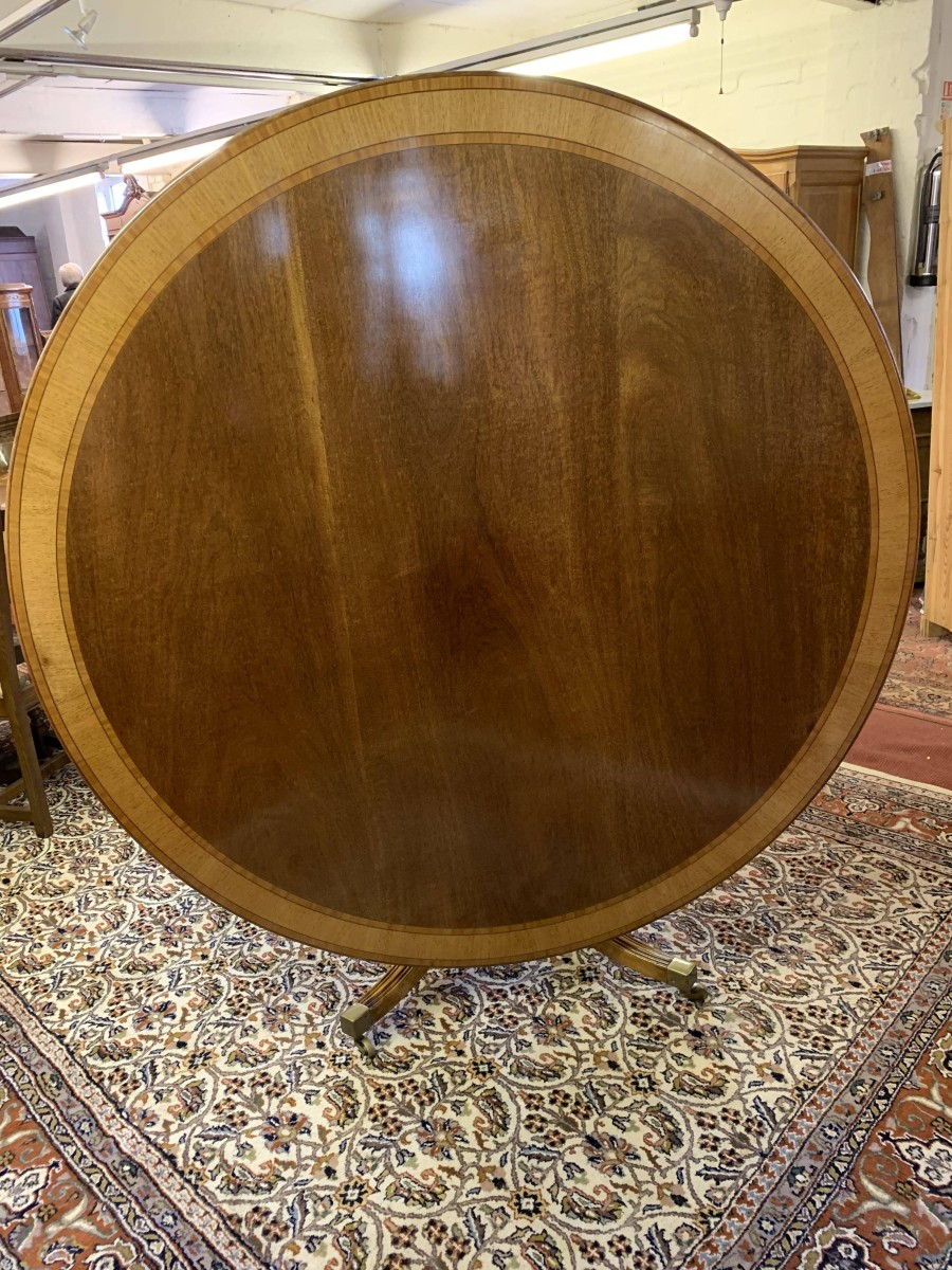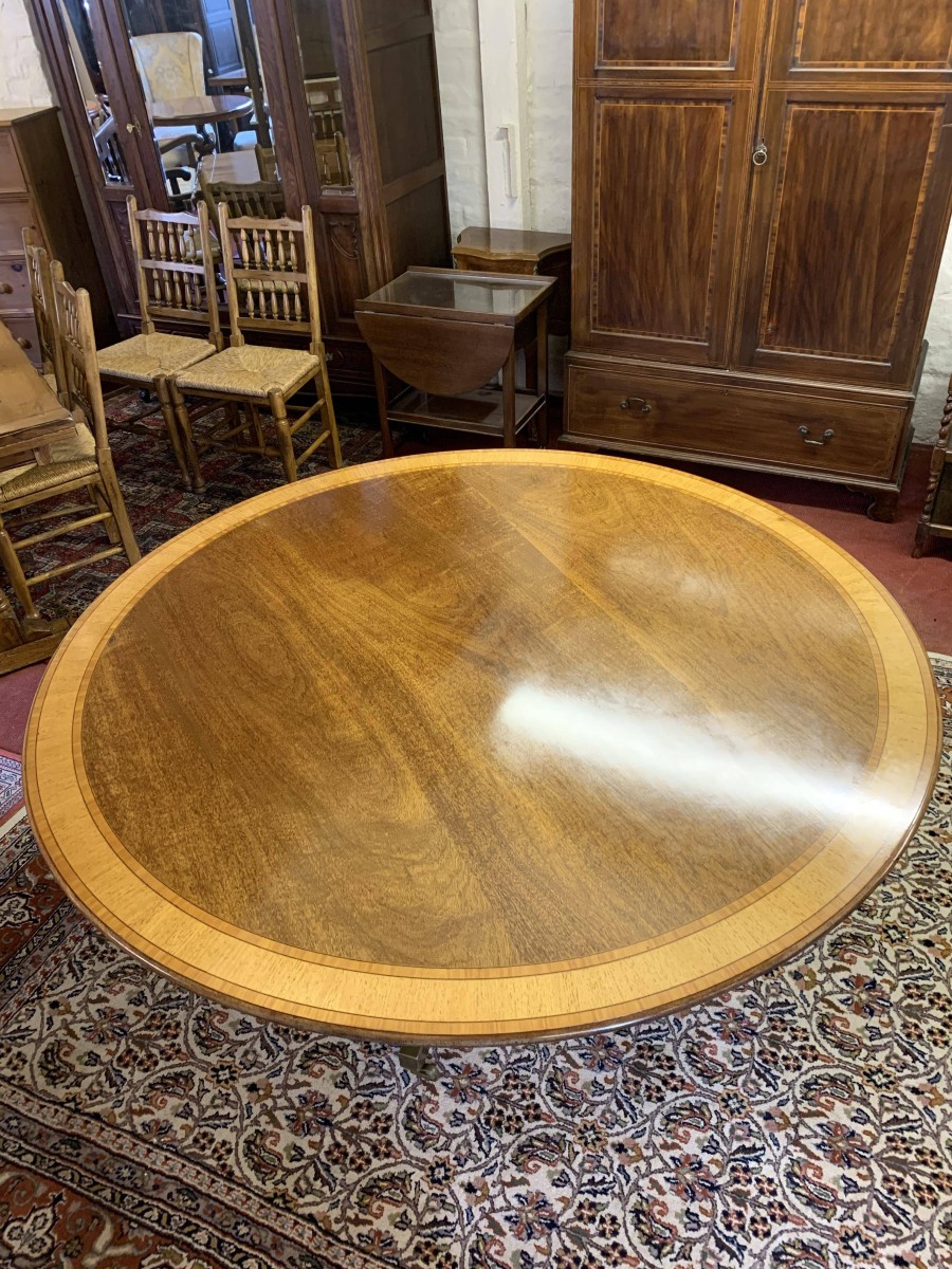 Fantastic Quality Large Round Mahogany Cross Banded Tilt Top Dining Table – Now Sold
