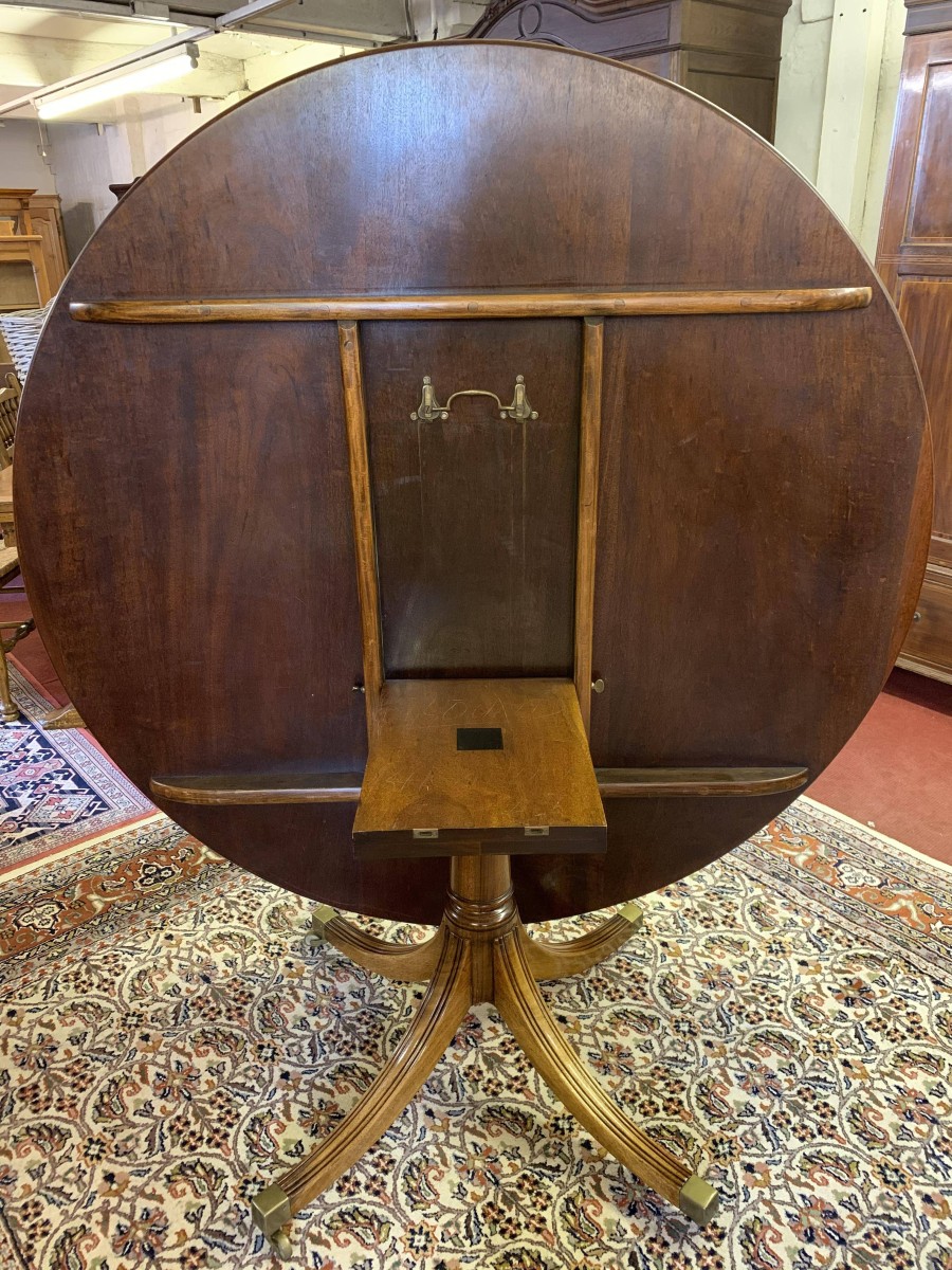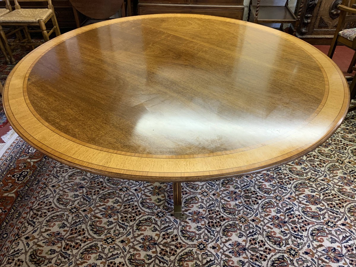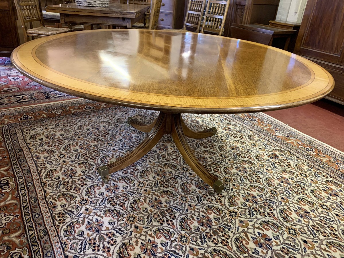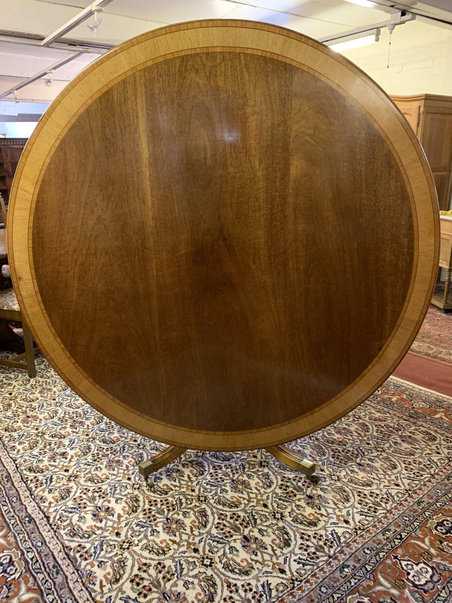 Fantastic Quality Large Round Mahogany Cross Banded Tilt Top Dining Table – Now Sold