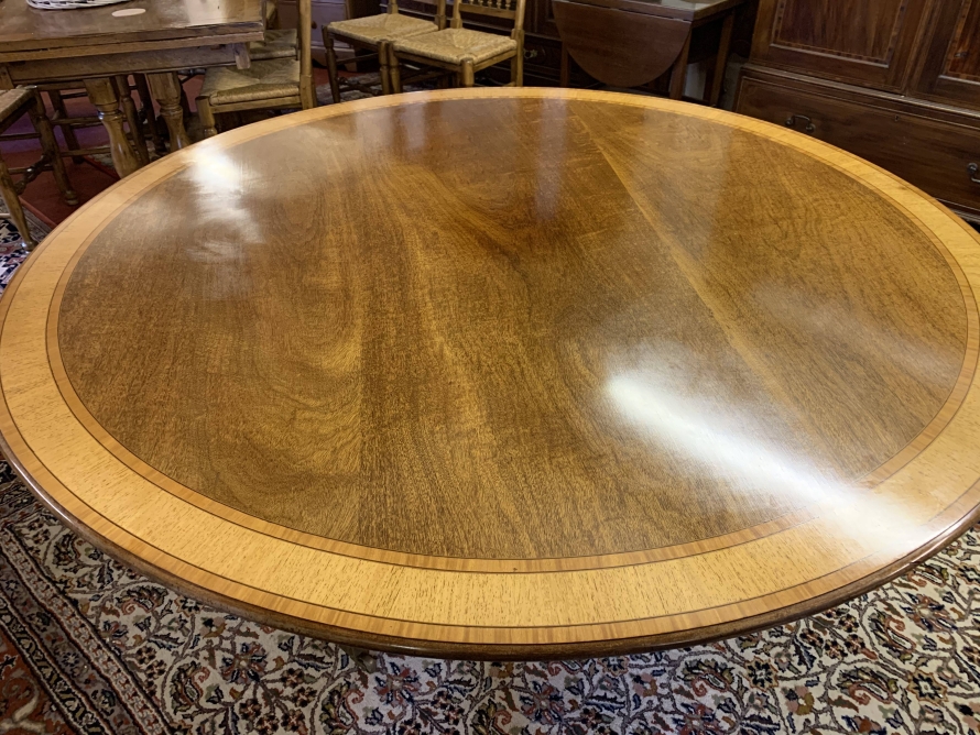 - Fantastic Quality Large Round Mahogany Cross Banded Tilt Top Dining Table – Now Sold