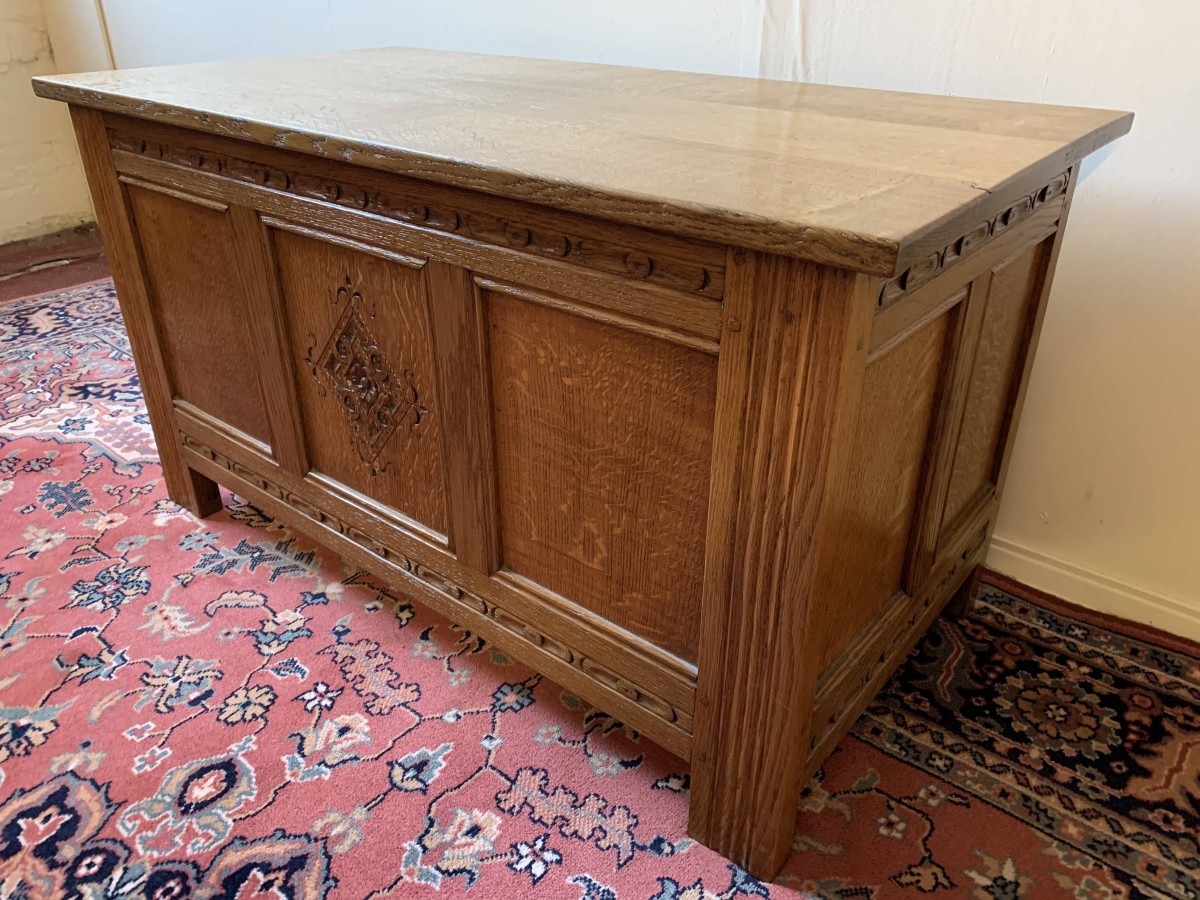 - Fantastic Quality Light Oak Carved Blanket Box/storage Chest – Now Sold